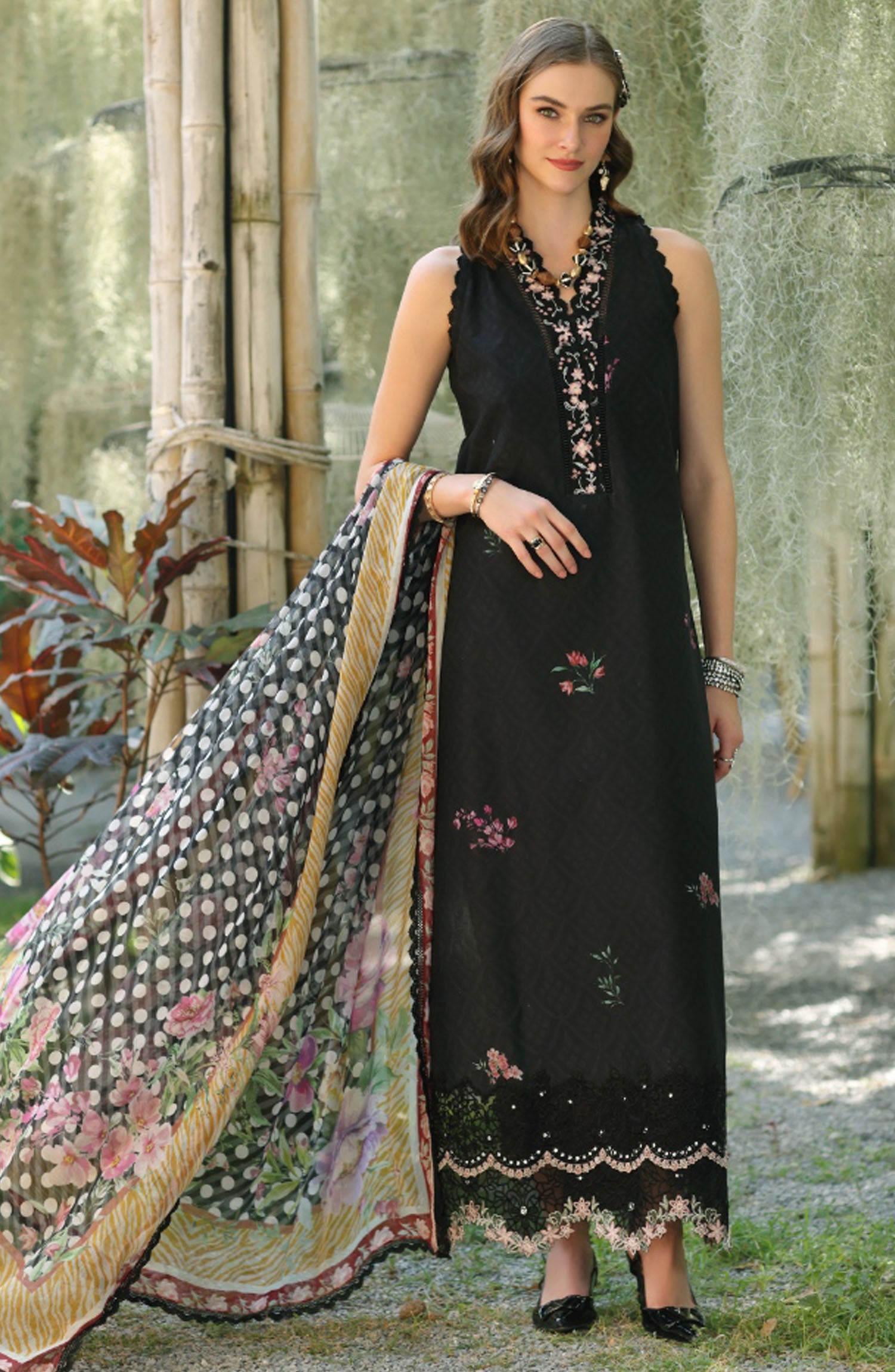 Noor by Saadia Asad Embroidered Lawn Unstitched 3 Piece Suit - D-10 B - SA25NELP - Black - Summer Collection