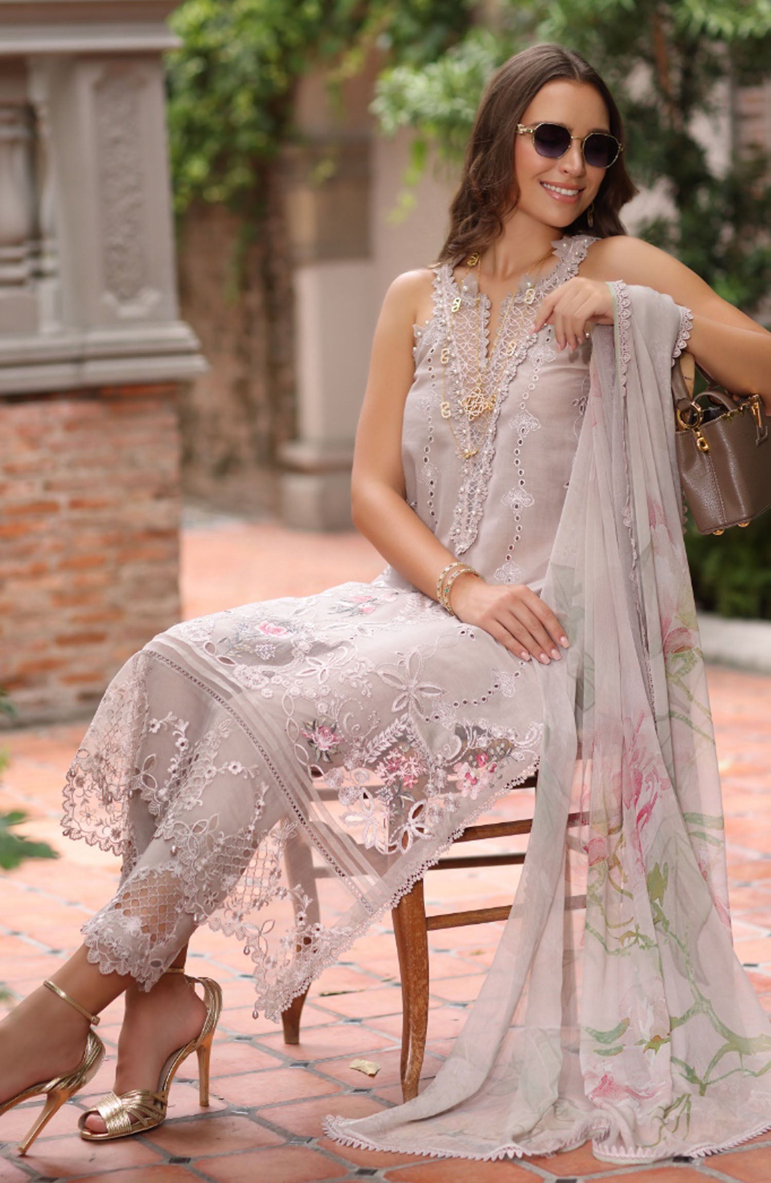Noor by Saadia Asad Embroidered Lawn Unstitched 3 Piece Suit - D-11 - SA25ELSL - Grey - Eid Collection