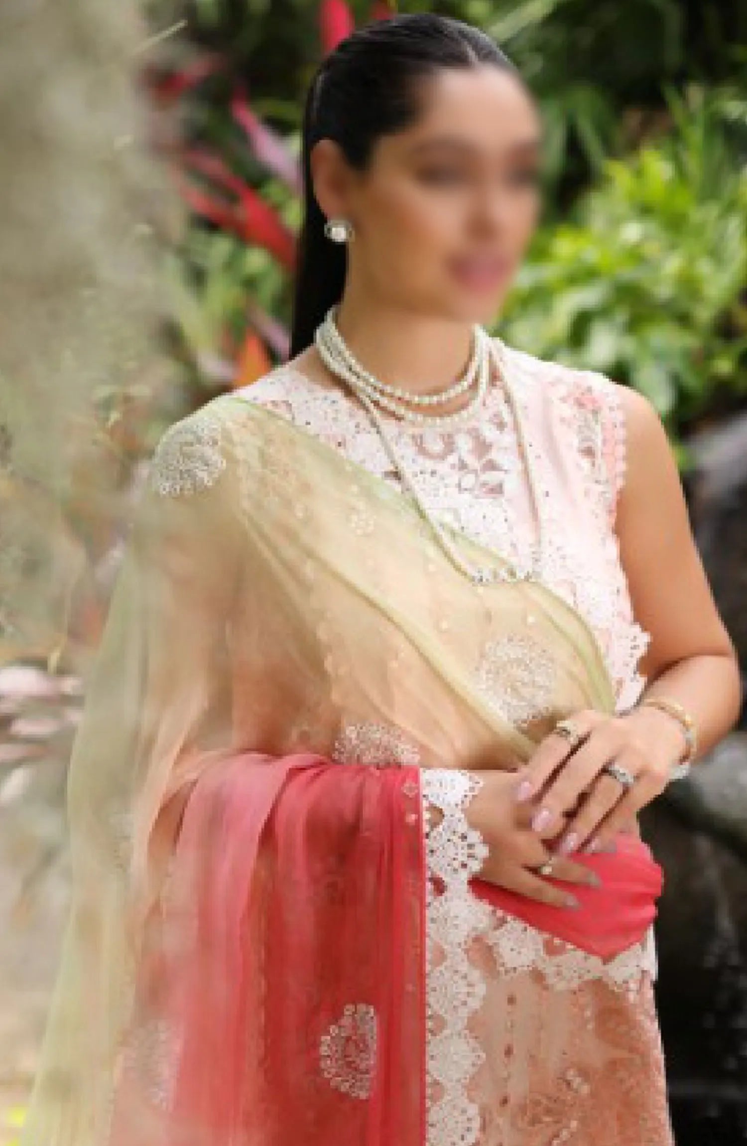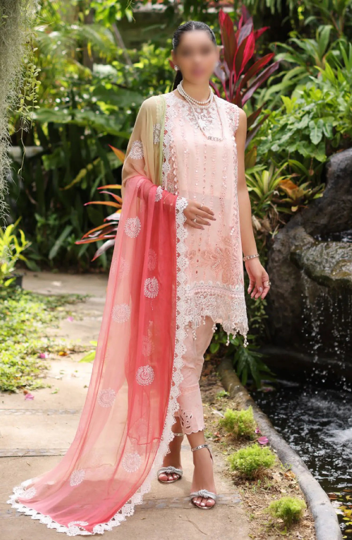Noor By Saadia Asad Luxury Chikankari Lawn Collection 2024 has been styled in the image for photography and illustrative purposes.