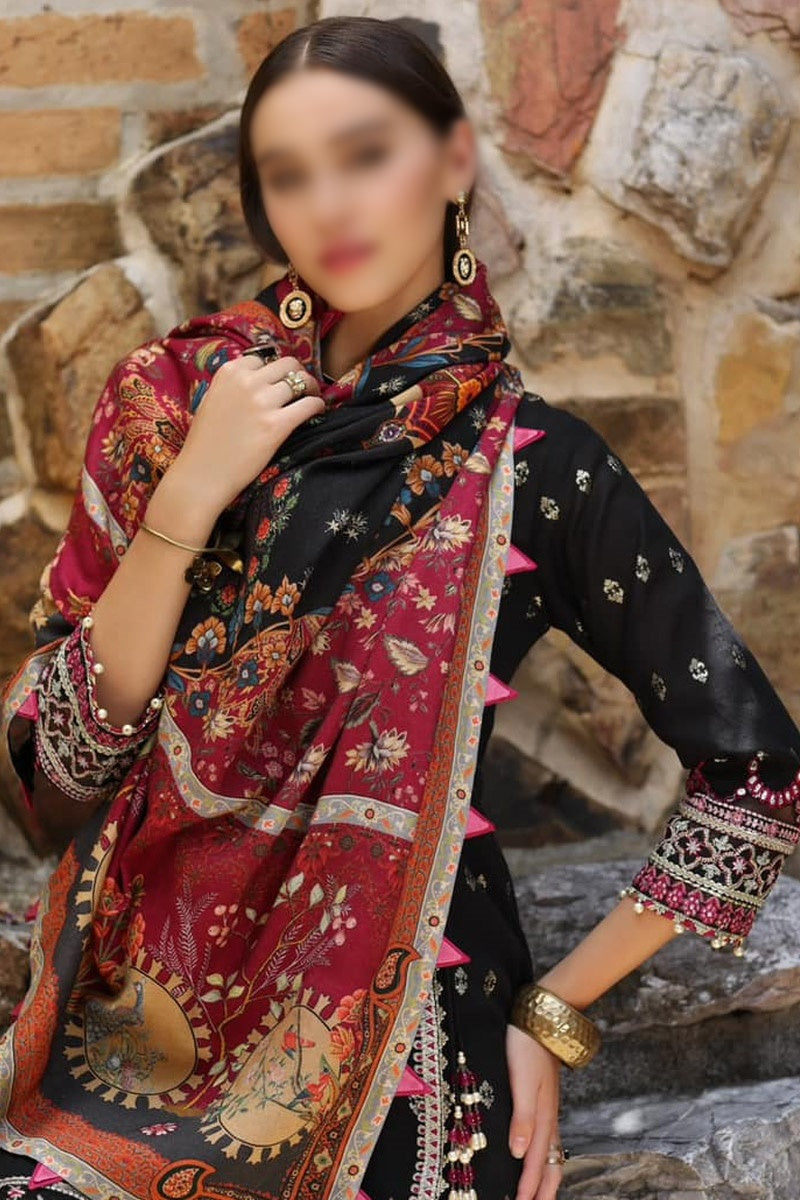 Noor By Saadia Asad Luxury Winter Shawl 2023 has been styled in the image for photography and illustrative purposes.