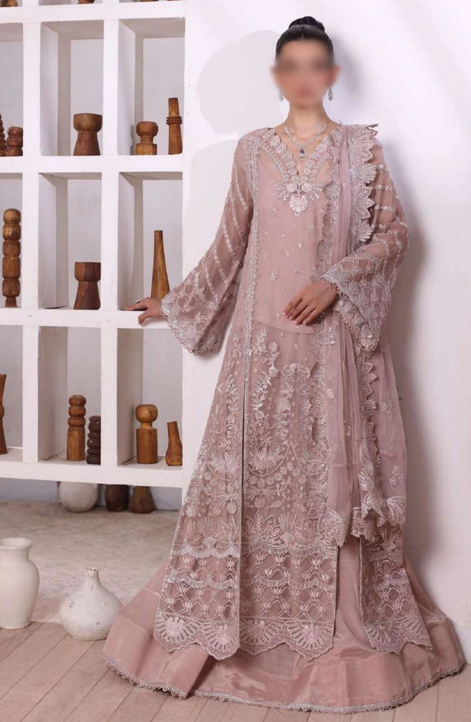The standard style comes as a long-sleeved kameez with dupatta and trouser/shalwar.
