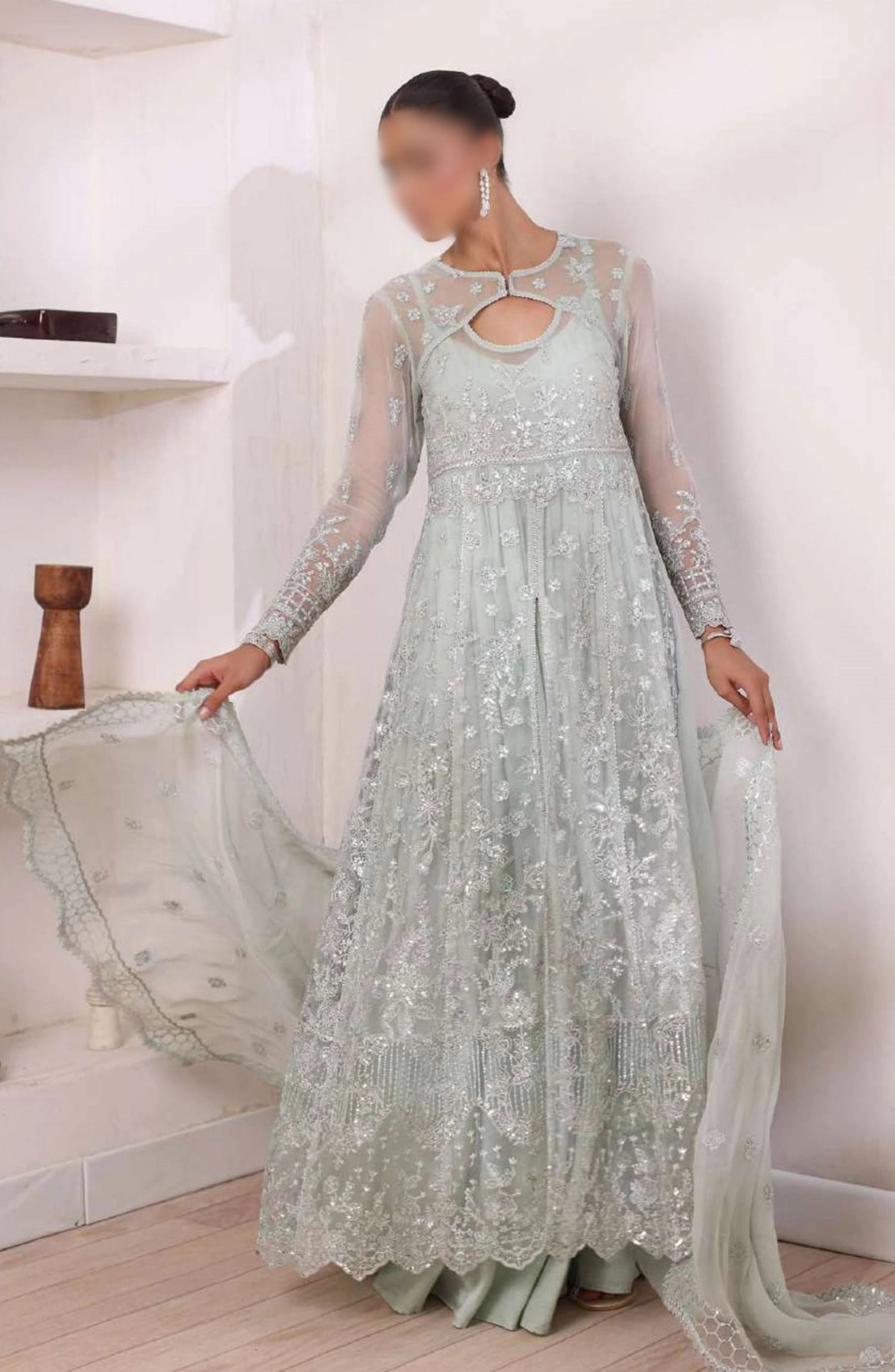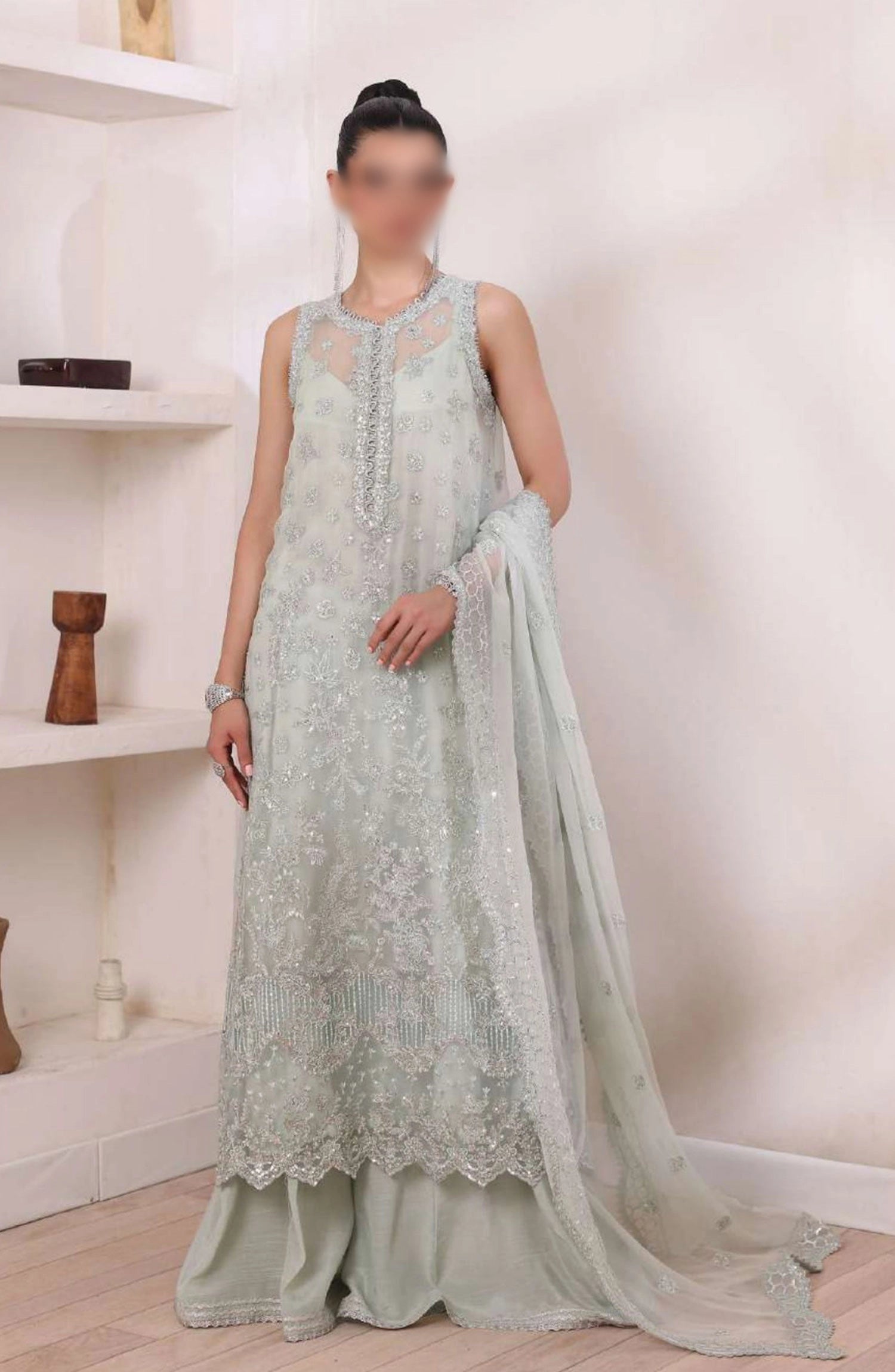 The standard style comes as a long-sleeved kameez with dupatta and trouser/shalwar.