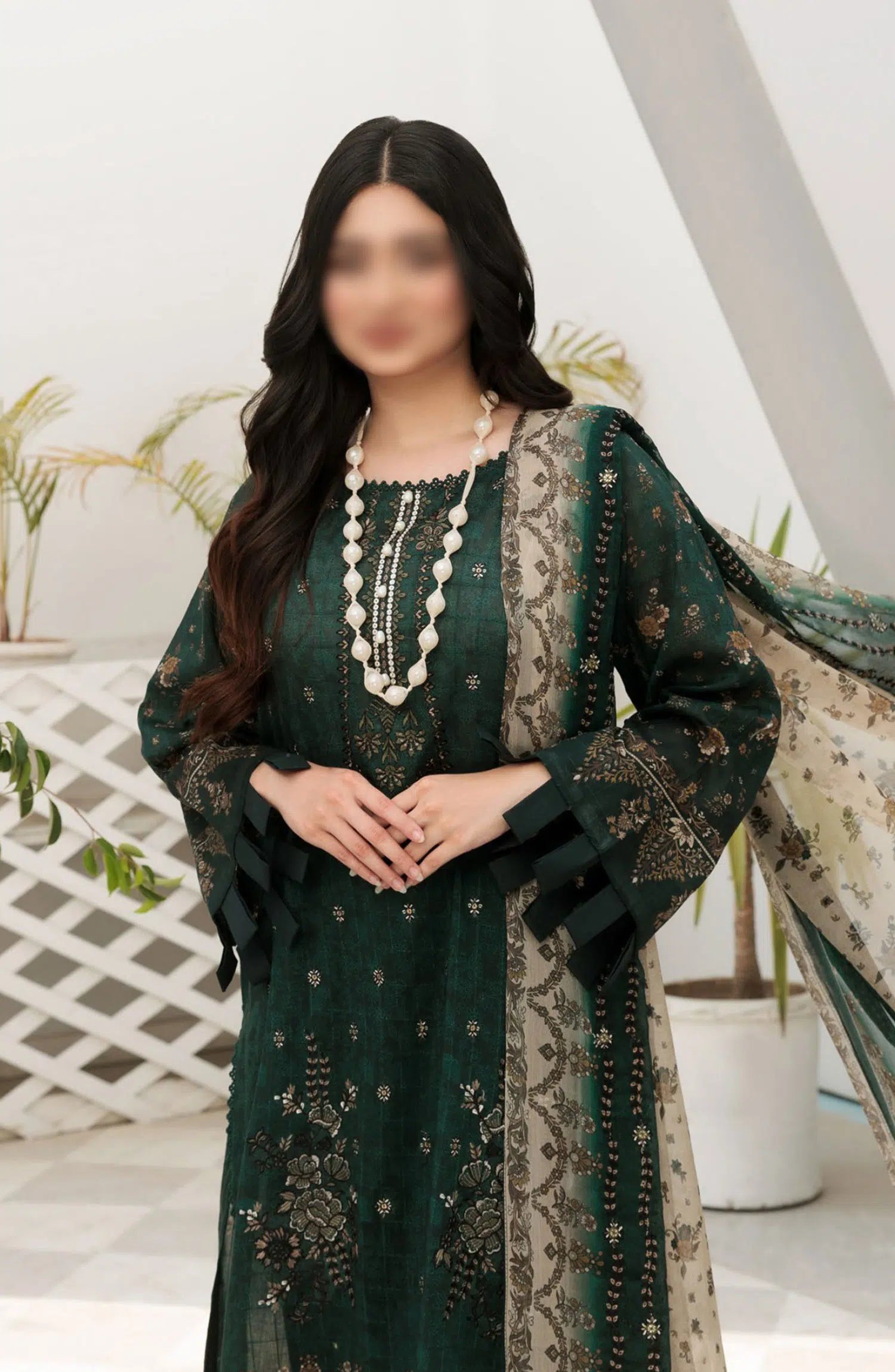 Noor E Hani Printed and Embroidered Lawn Collection Vol 43 has been styled in the image for photography and illustrative purposes.