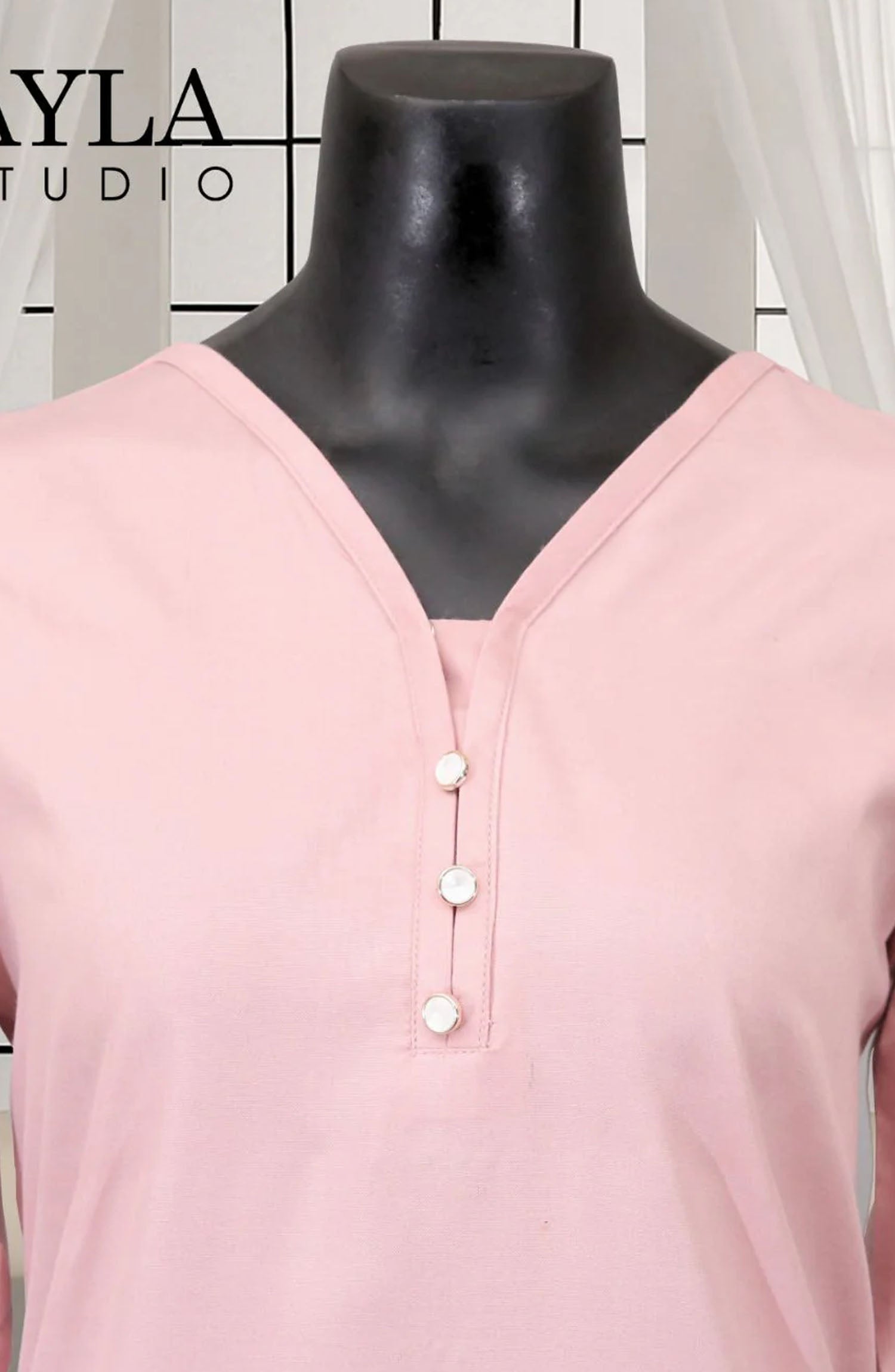 Elevate your eastern wardrobe with “GULBADAN” – a 2-piece solid embroidered suit in a graceful soft pink hue.