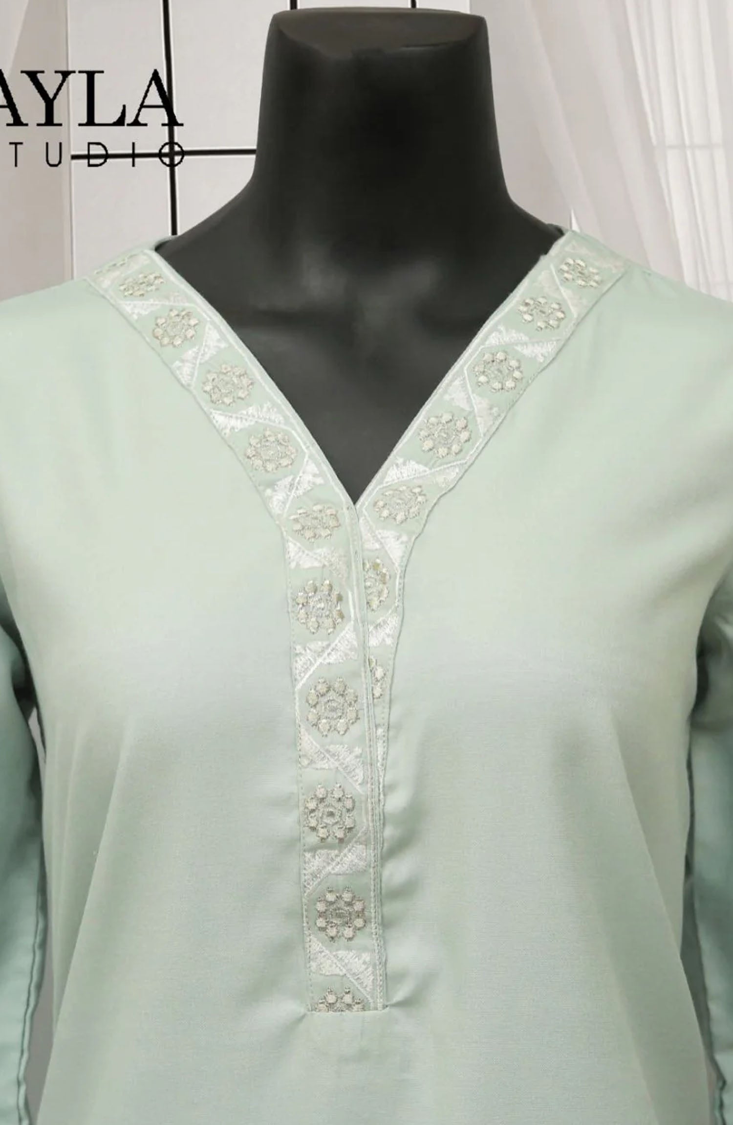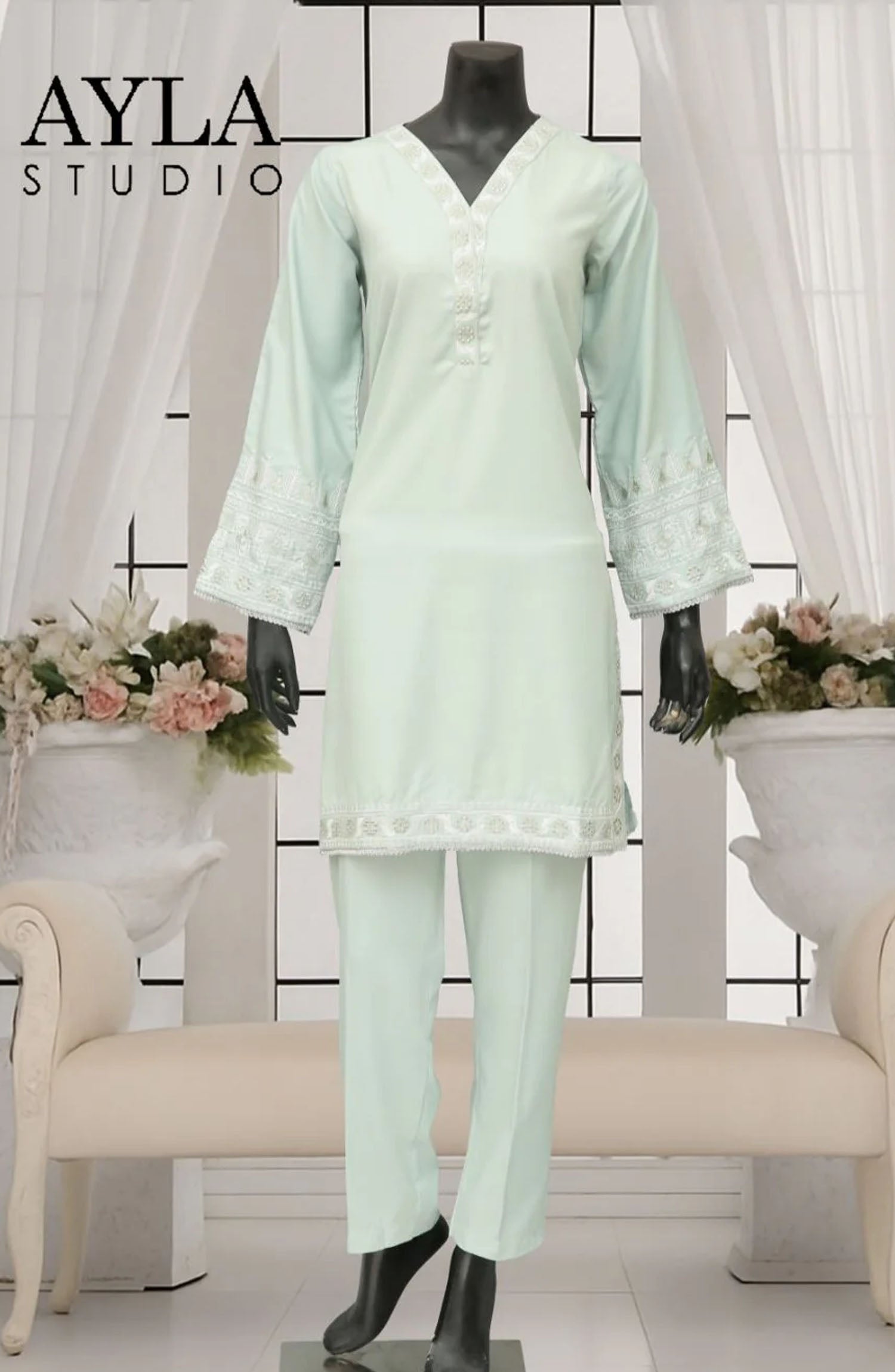 Grace meets elegance with our Hareem 2-Piece Solid Embroidery Set in a refreshing Pastel Green shade. Crafted for the modern woman who cherishes tradition, this ensemble features: