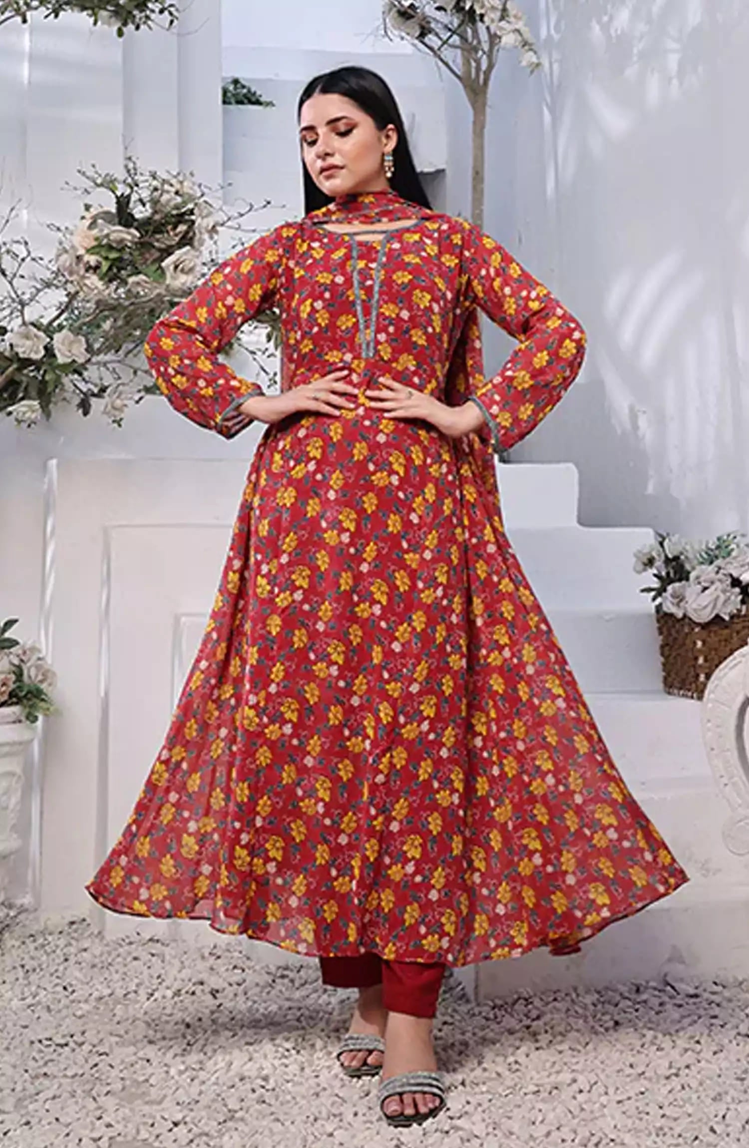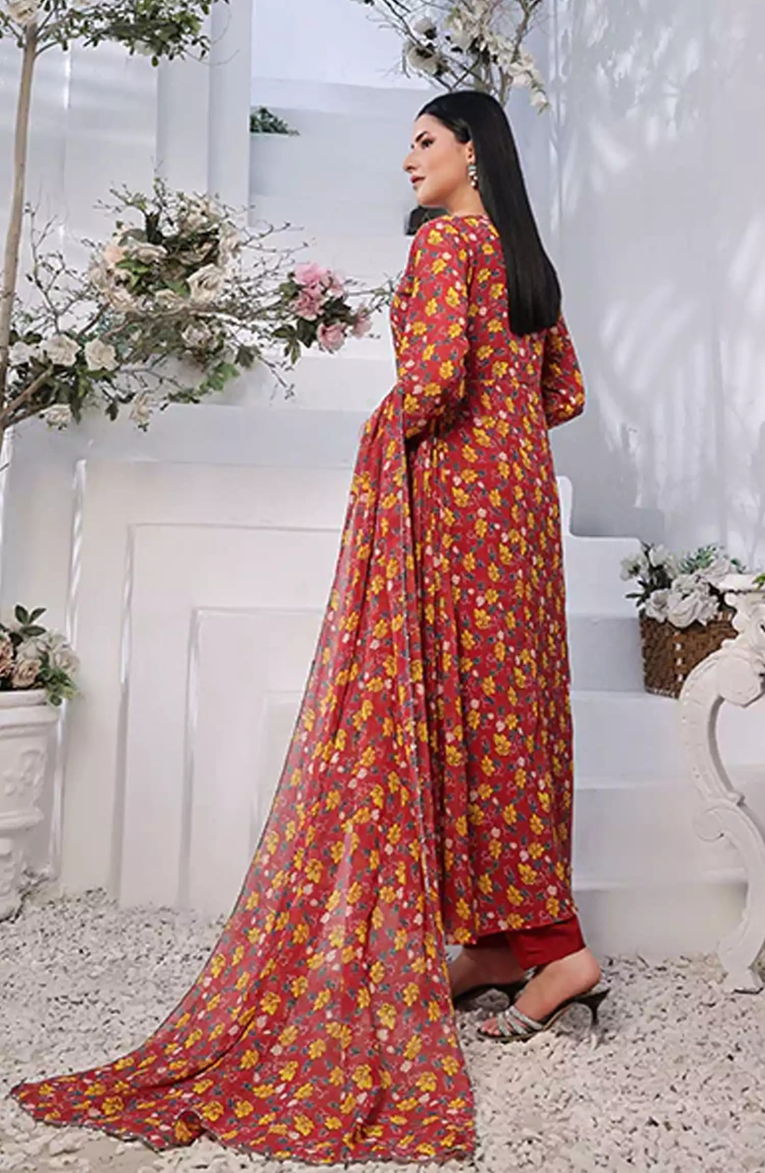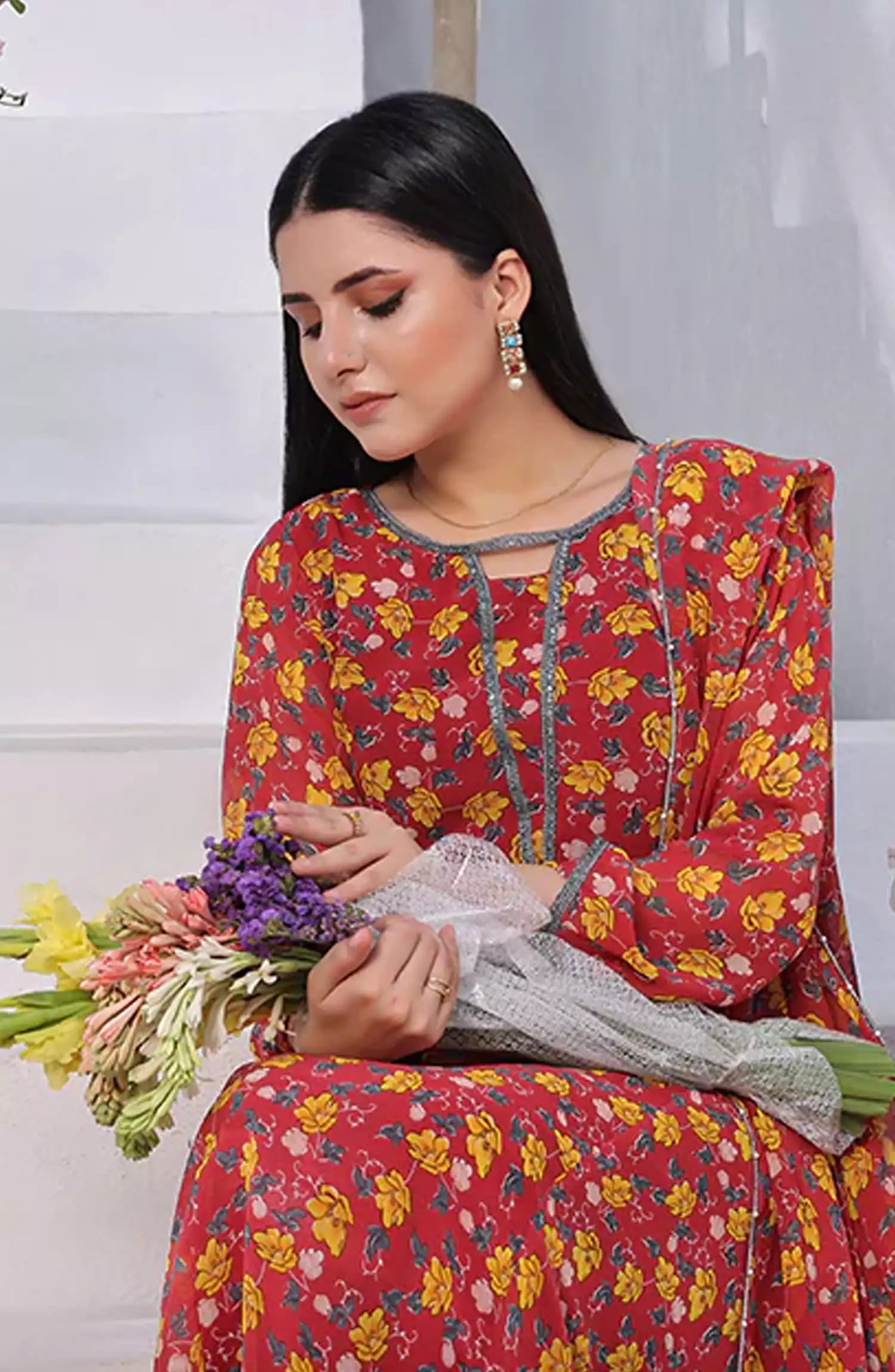 Experience the refreshing "Dandelion floweret" with this stunning neckline. The Dandelion floweret canvas on chiffon fabric creates a timeless look, enhanced by details on the neck and sleeves. Delicate chiffon dupatta adds a touch of elegance. It is paired with a crepe bottoms and an chiffon dupatta.
