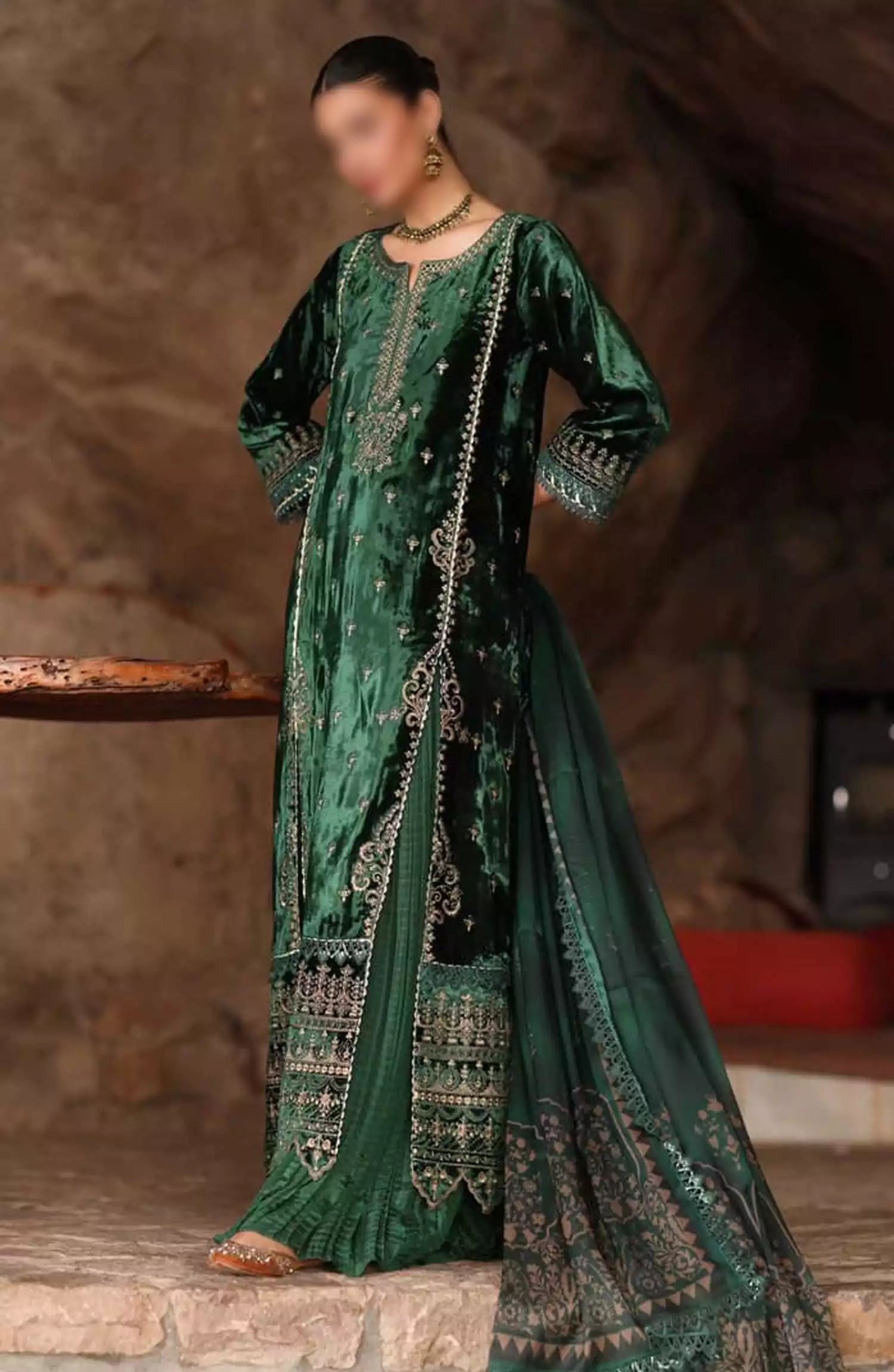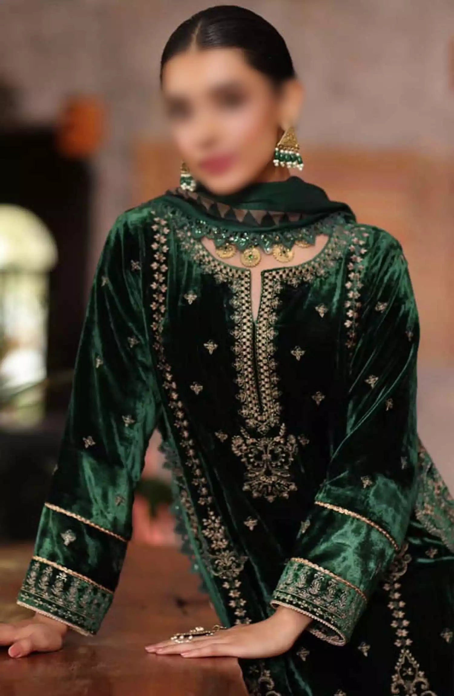 The standard style comes as a long-sleeved kameez with dupatta and trouser/shawlar.