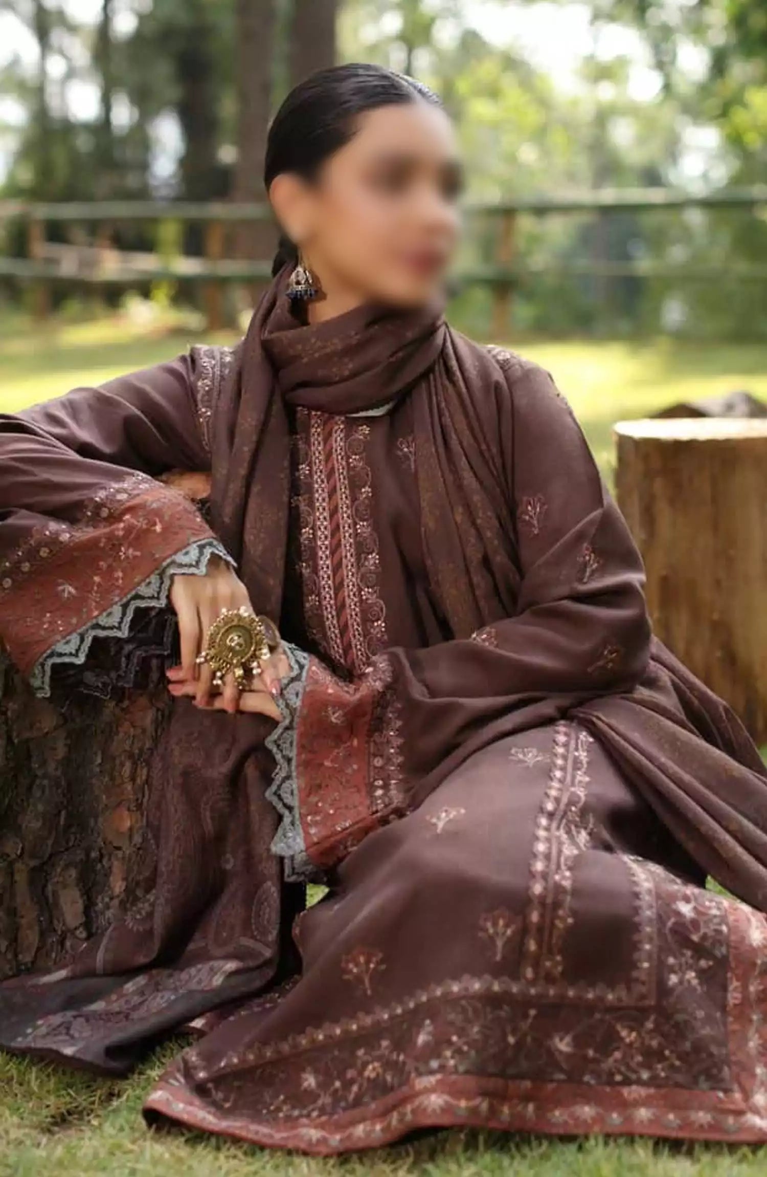 Noor Suzaanikari Winter Shawl Collection By Saadia Asad has been styled in the image for photography and illustrative purposes.