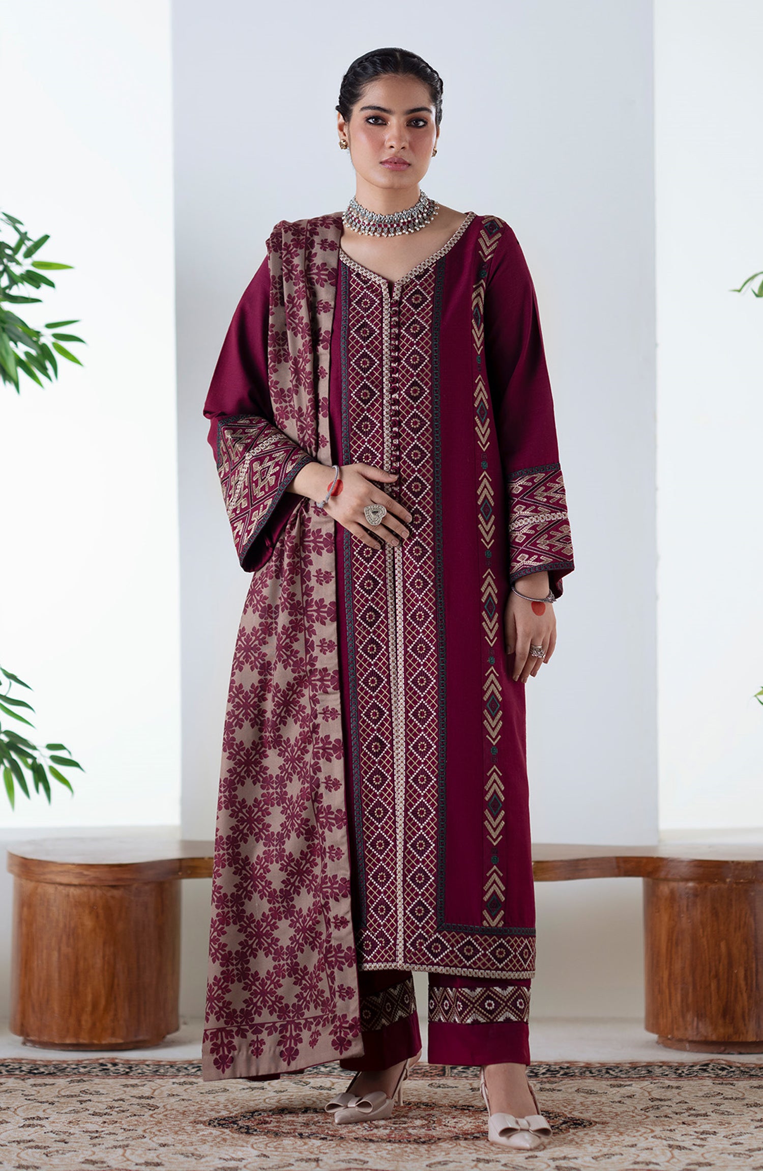 Embroidered Front, Back Neck Patti (Khaddar) 1.25 M