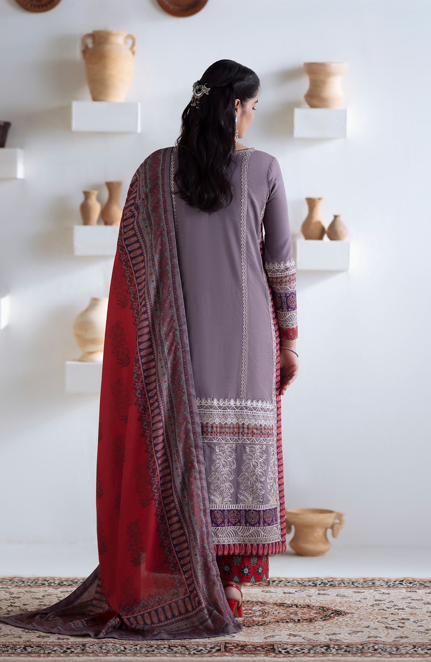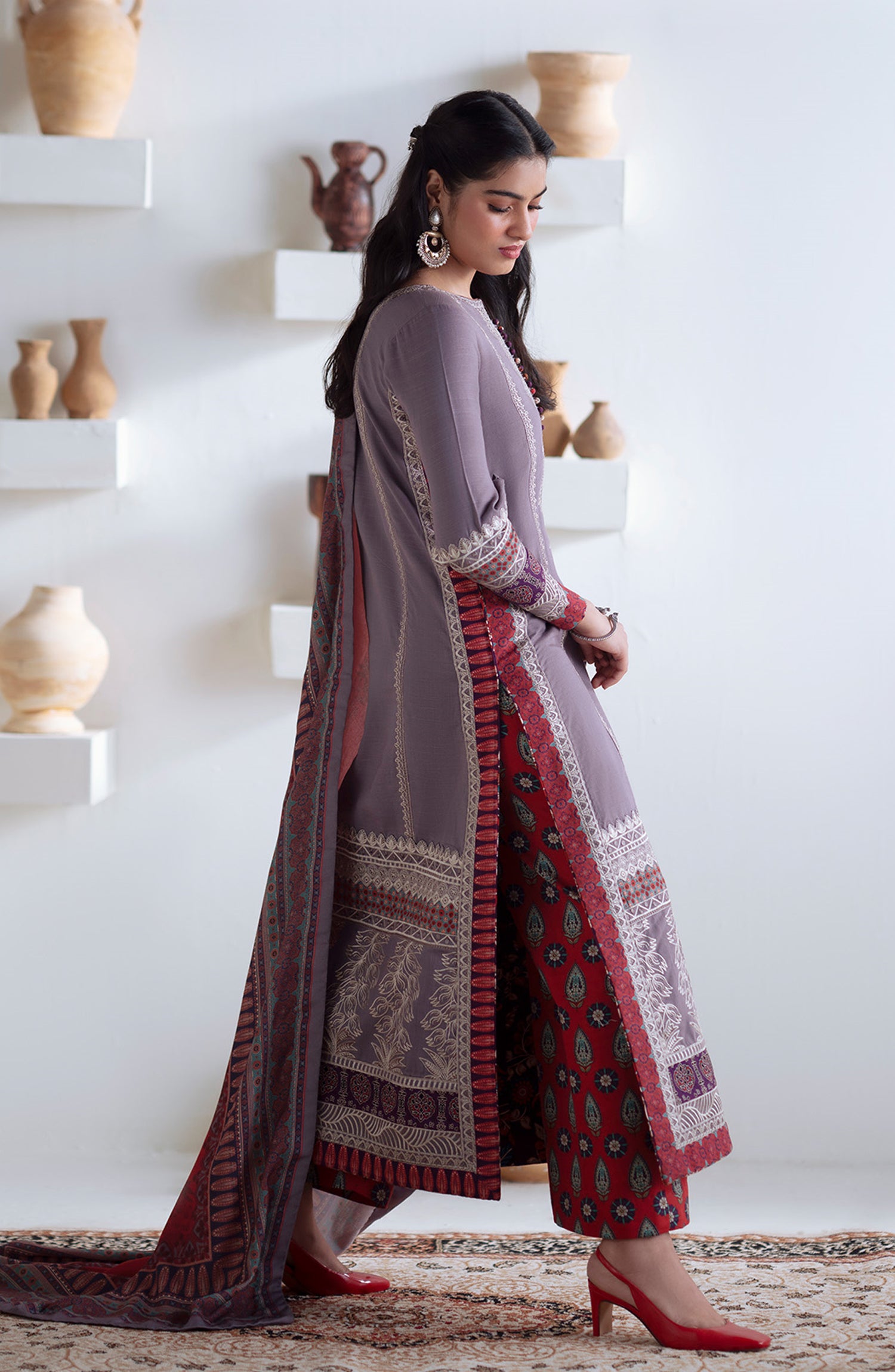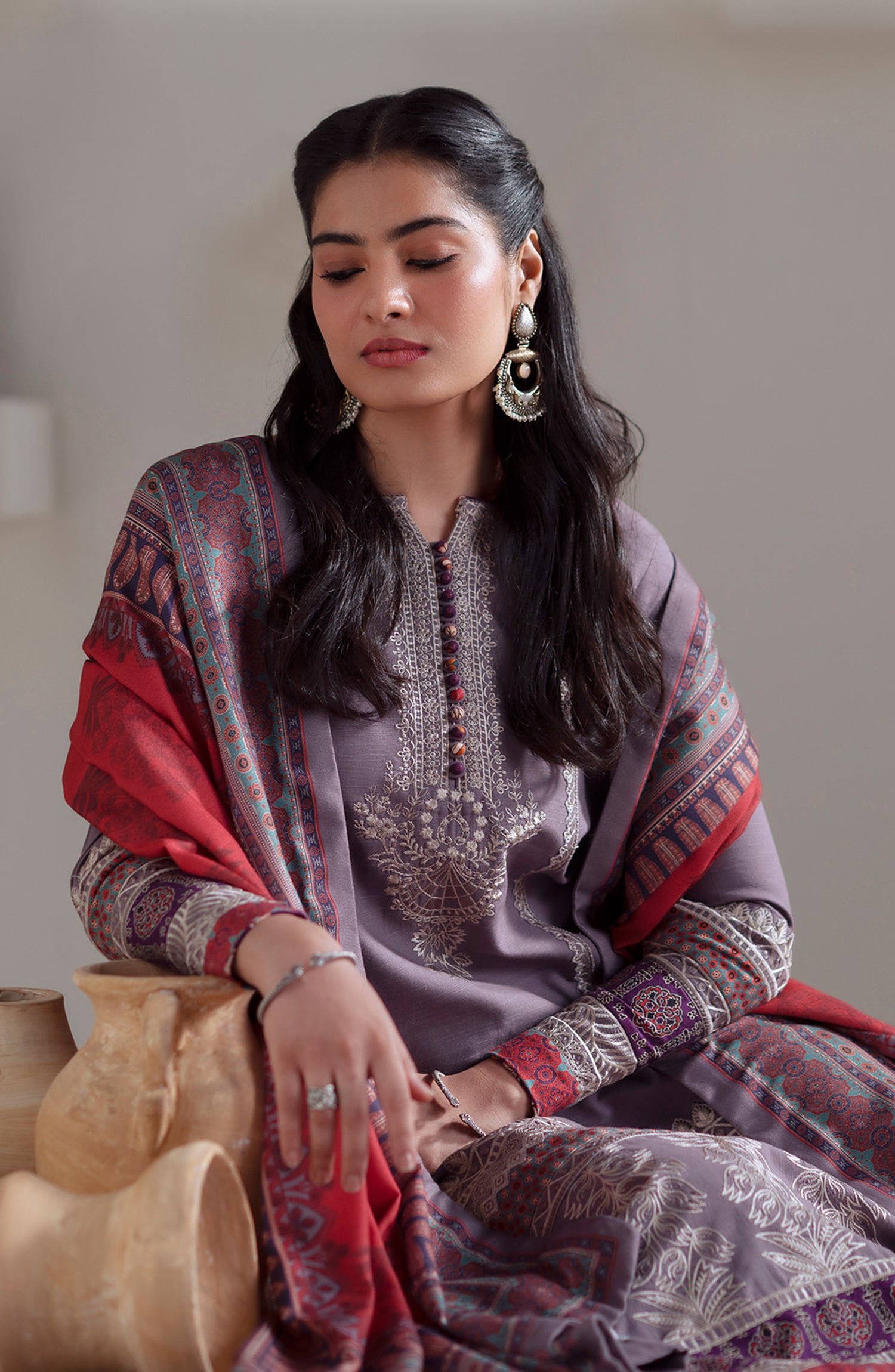 Printed Back, Vent, Sleeves Patti/Purple (Khaddar) 4.30 M