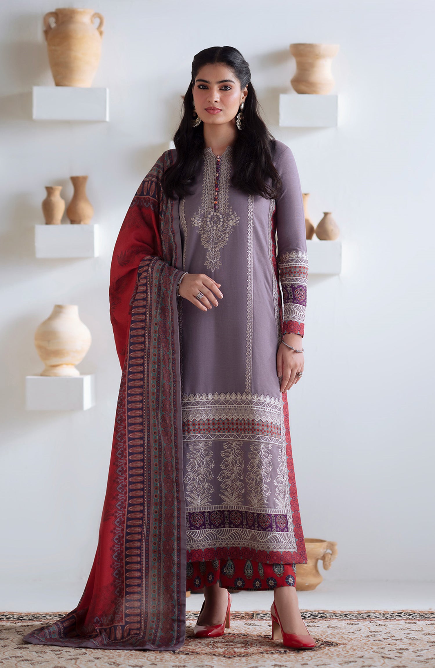 Printed Front, Back, Sleeves Patti/Purple (Khaddar) 2.50 M