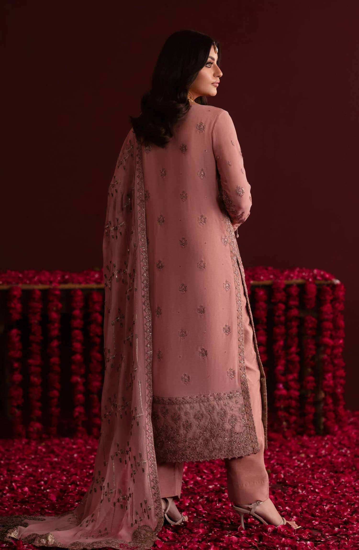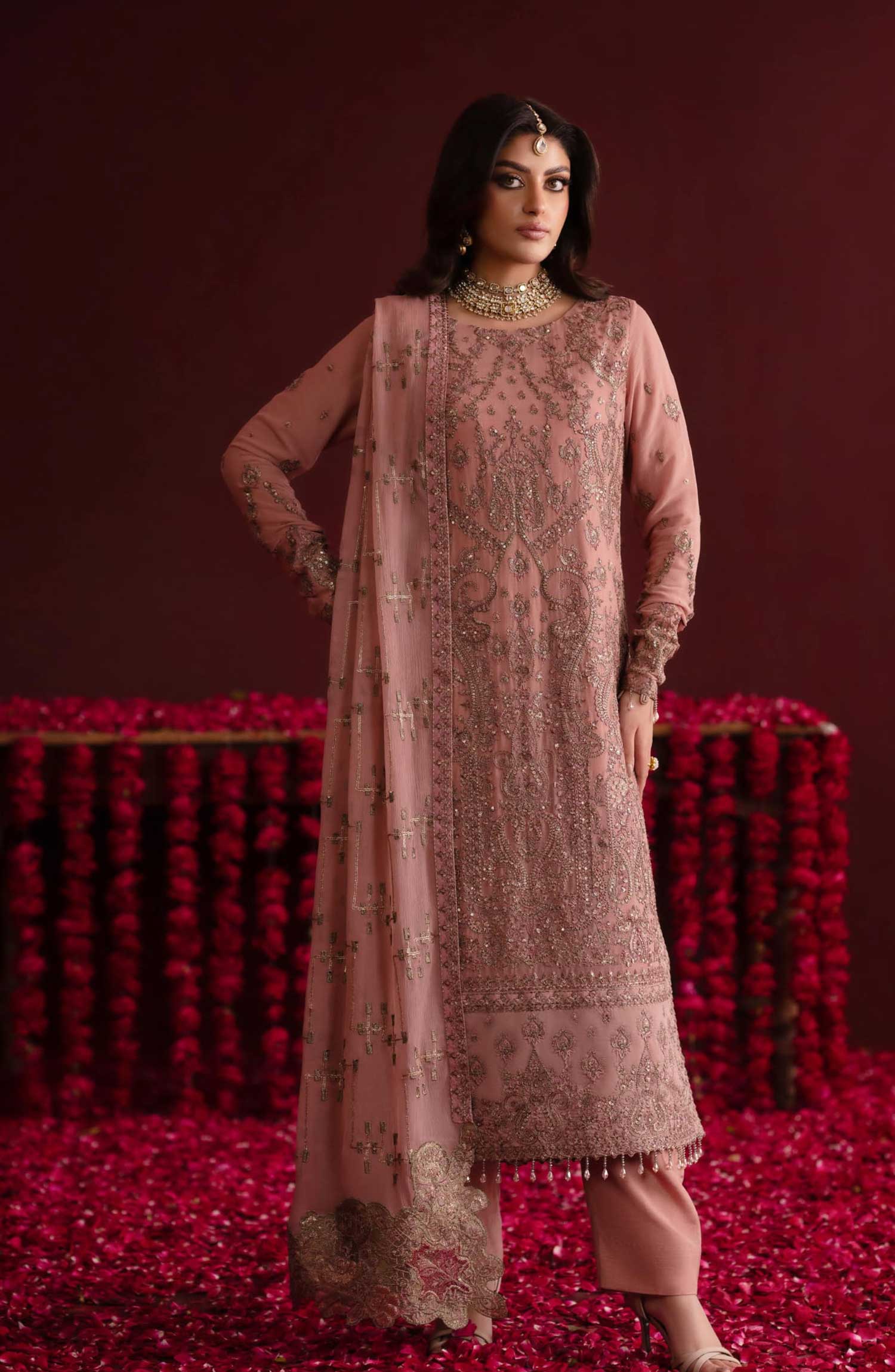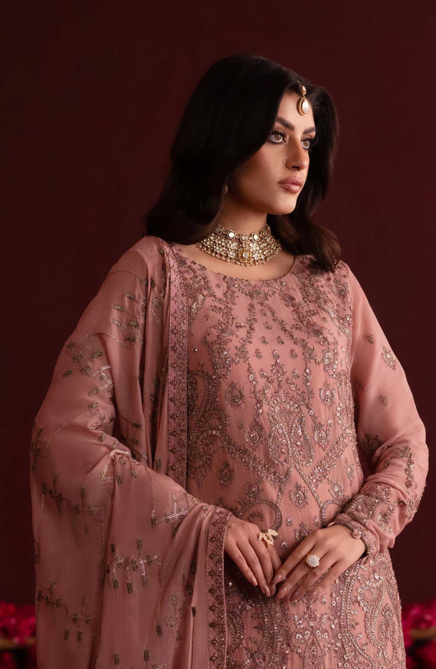 Emaan Adeel Nooresha Unstitched Formals 2025 has been styled in the image for photography and illustrative purposes.