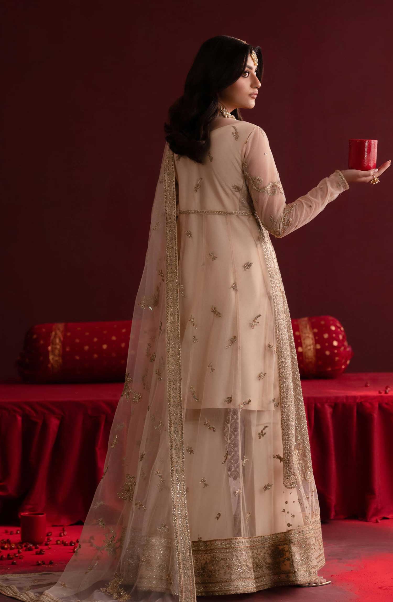 Emaan Adeel Nooresha Unstitched Formals 2025 has been styled in the image for photography and illustrative purposes.