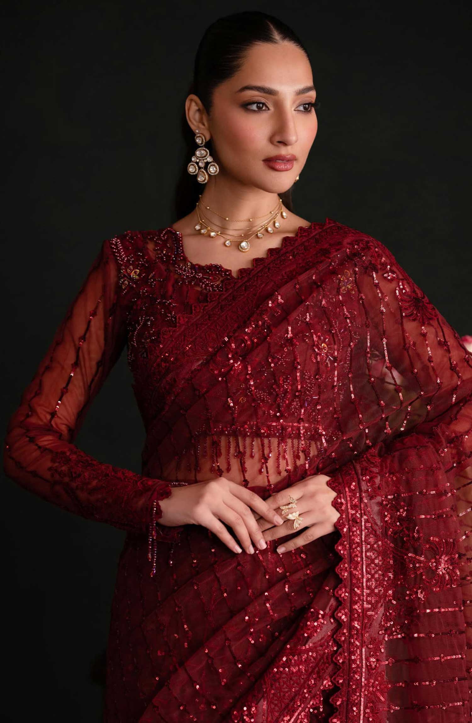 Emaan Adeel Nooresha Unstitched Formals 2025 has been styled in the image for photography and illustrative purposes.