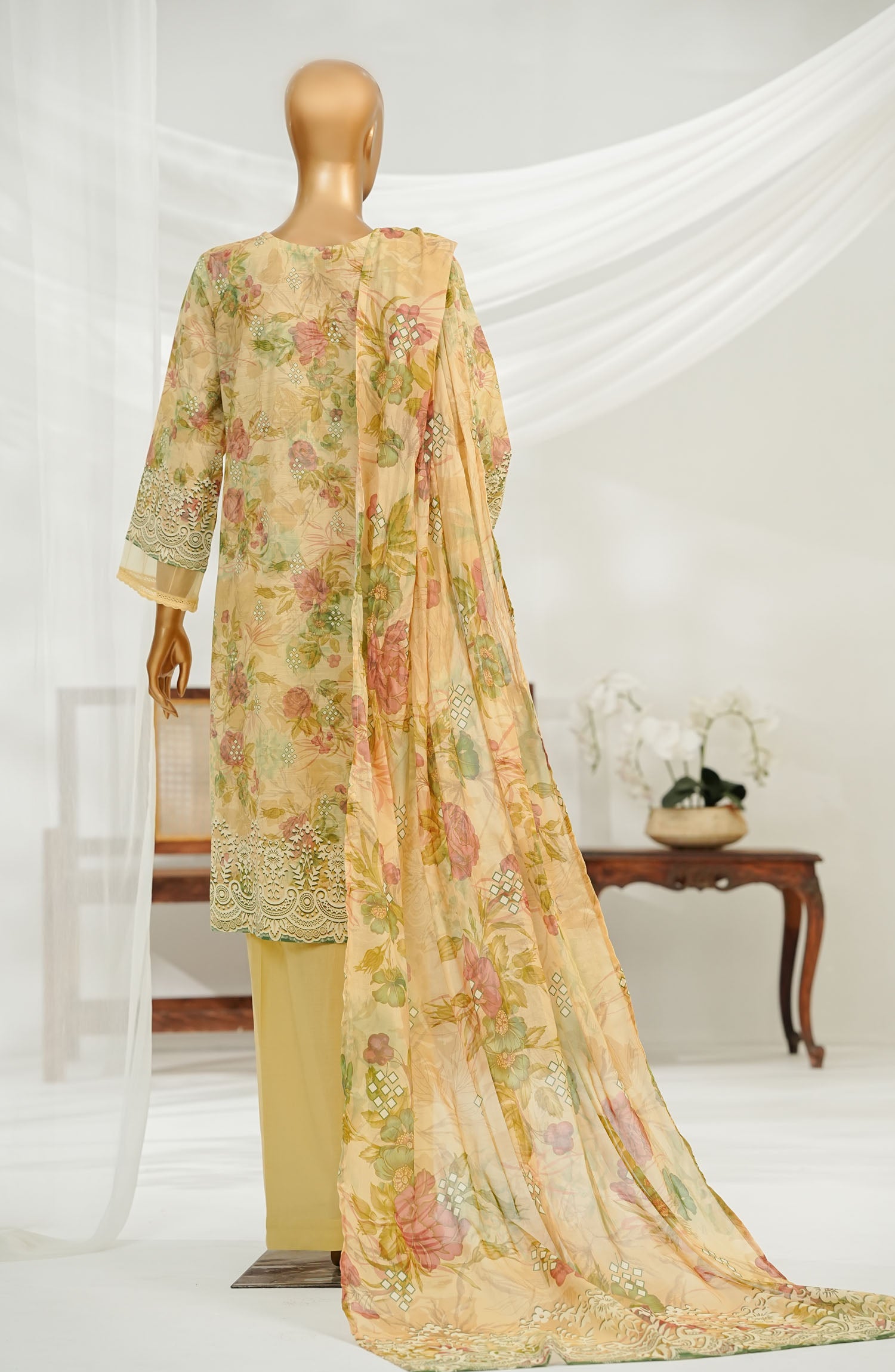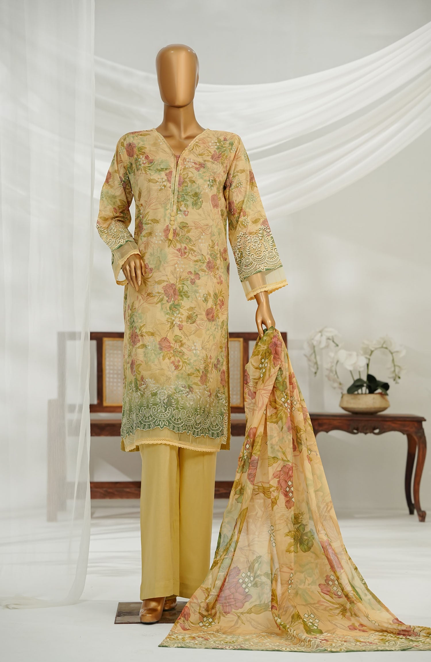 Digital Print and Embroidered Lawn 3 Piece Stitch Suit with Embellishments