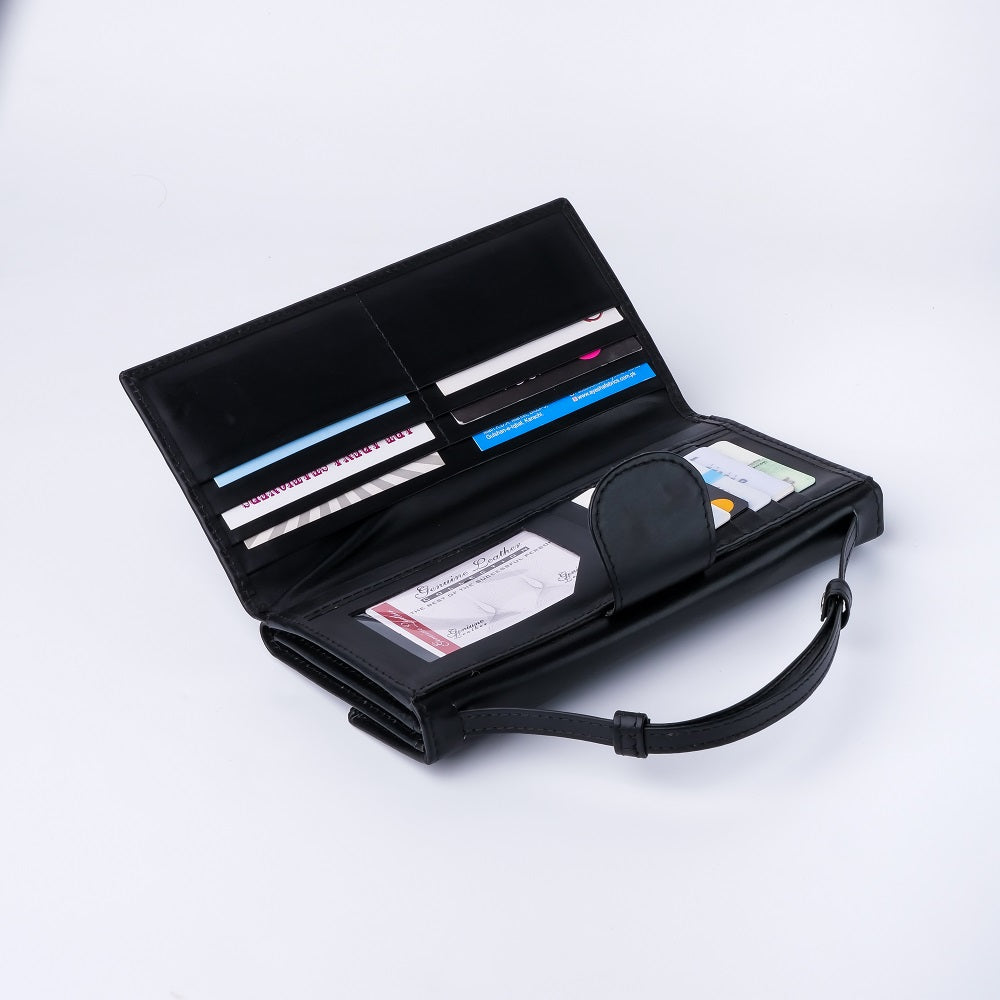 tand out from the crowd with our Nova-Womens Handle Leather Clutch Wallet. Featuring an eye-catching design with stylish adjustable handle strap to carry and double side magnetic and zipper closure