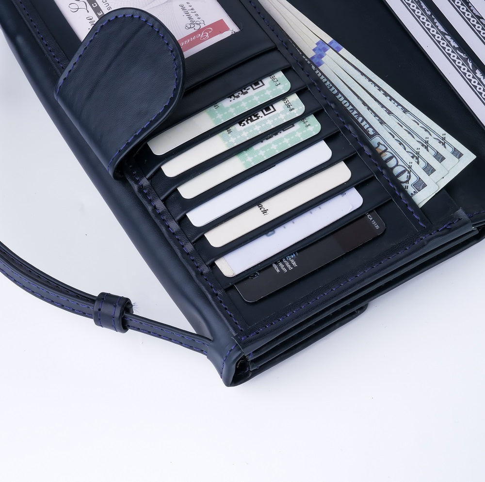 tand out from the crowd with our Nova-Womens Handle Leather Clutch Wallet. Featuring an eye-catching design with stylish adjustable handle strap to carry and double side magnetic and zipper closure