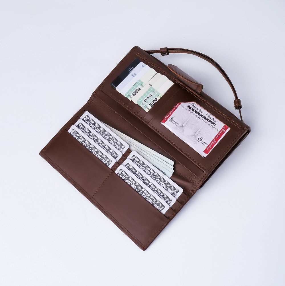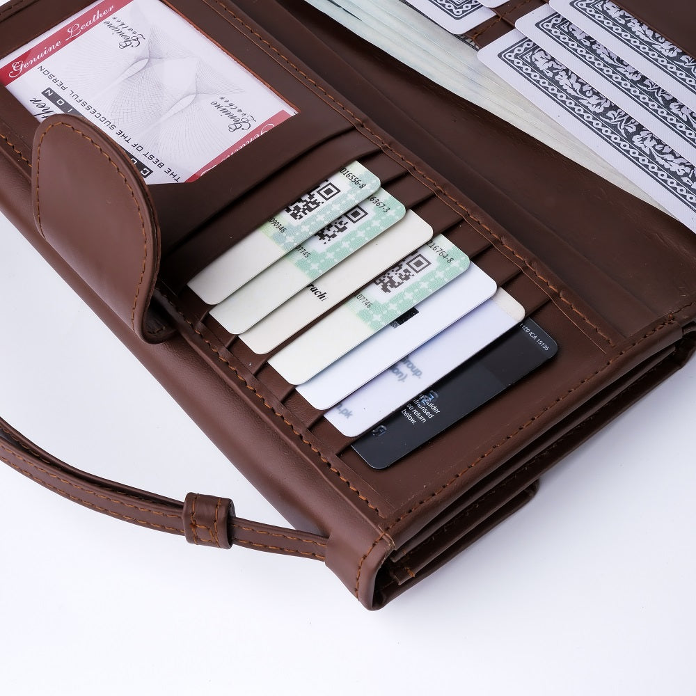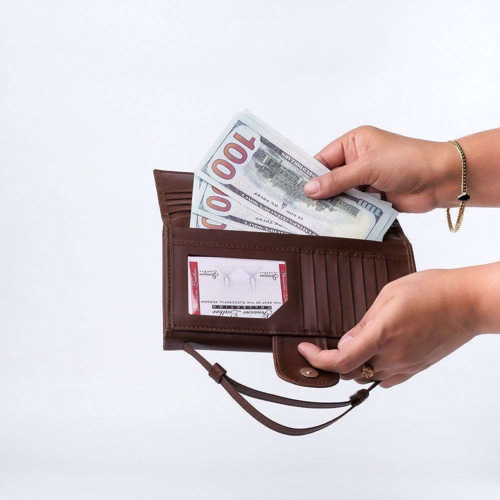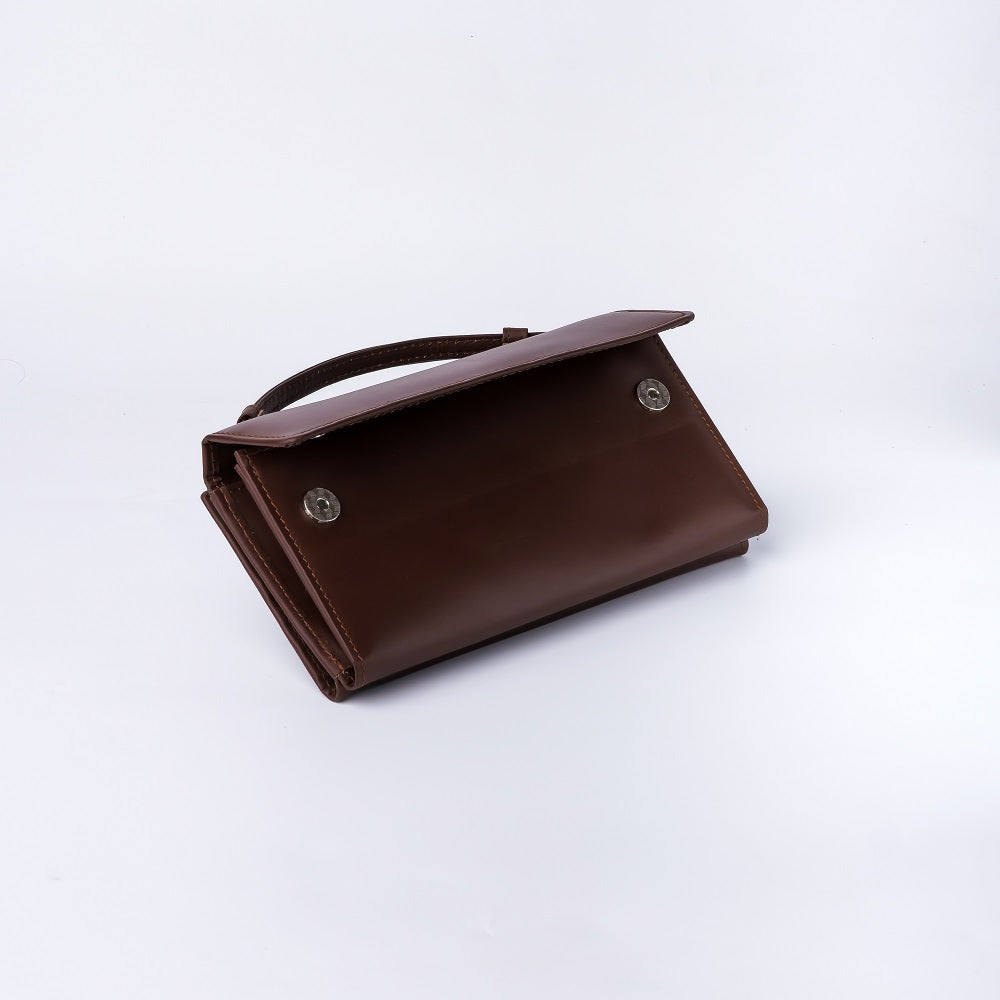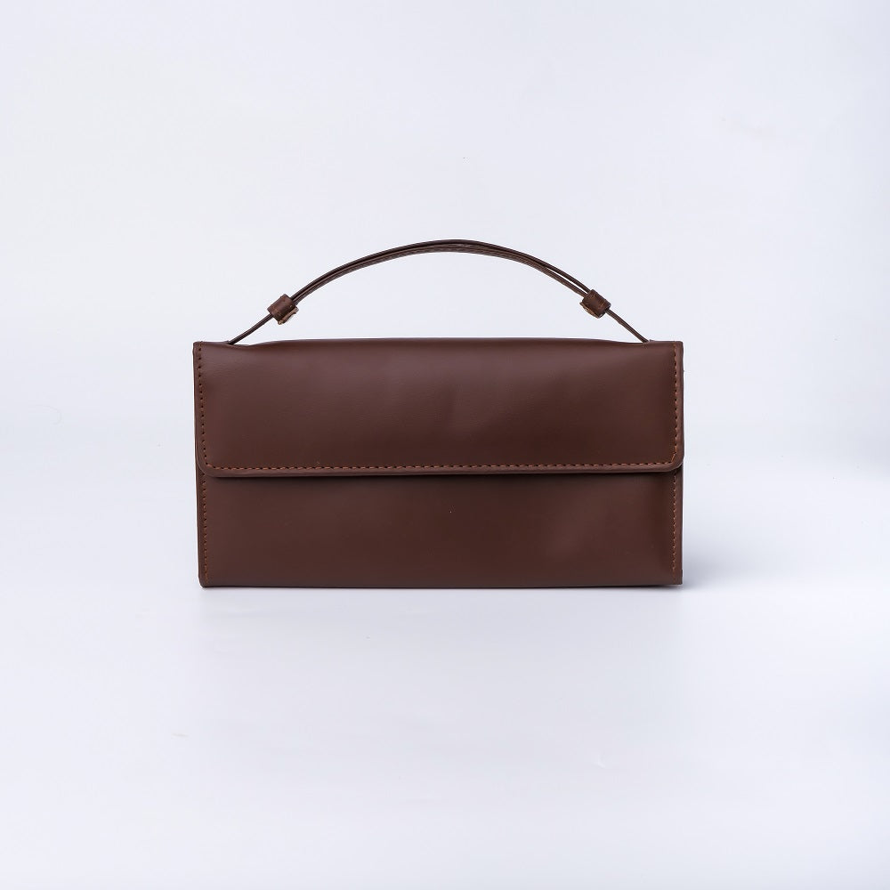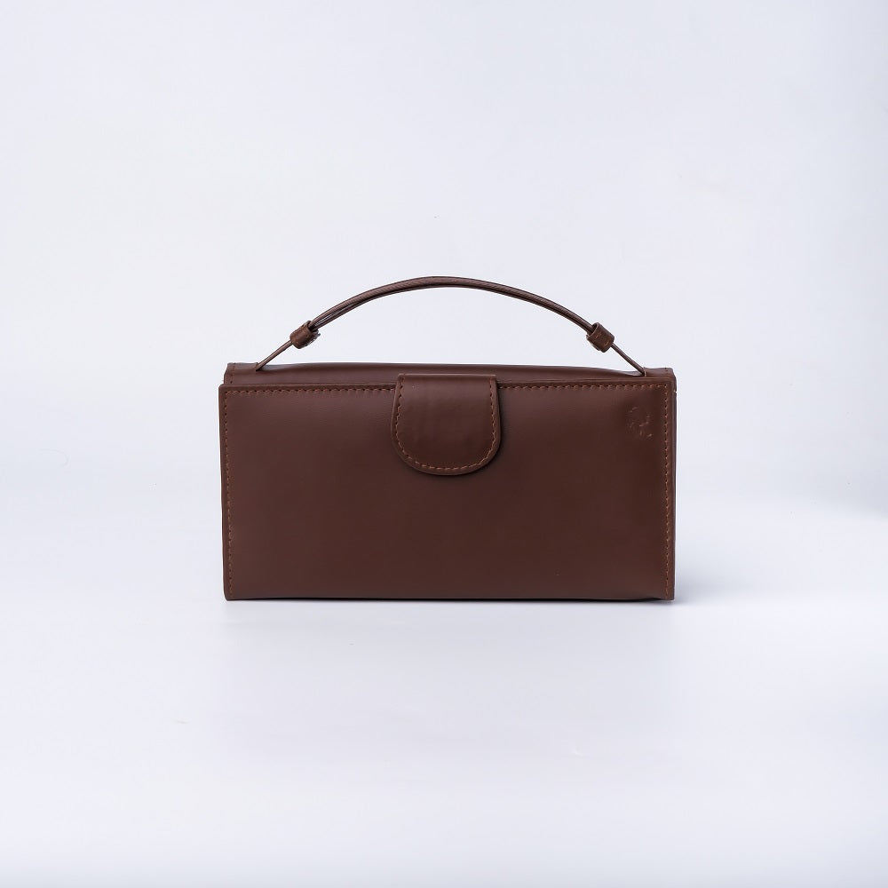 Home Nova Womens Handle Leather Clutch Wallet Brown