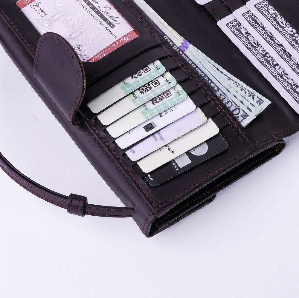 tand out from the crowd with our Nova-Womens Handle Leather Clutch Wallet. Featuring an eye-catching design with stylish adjustable handle strap to carry and double side magnetic and zipper closure