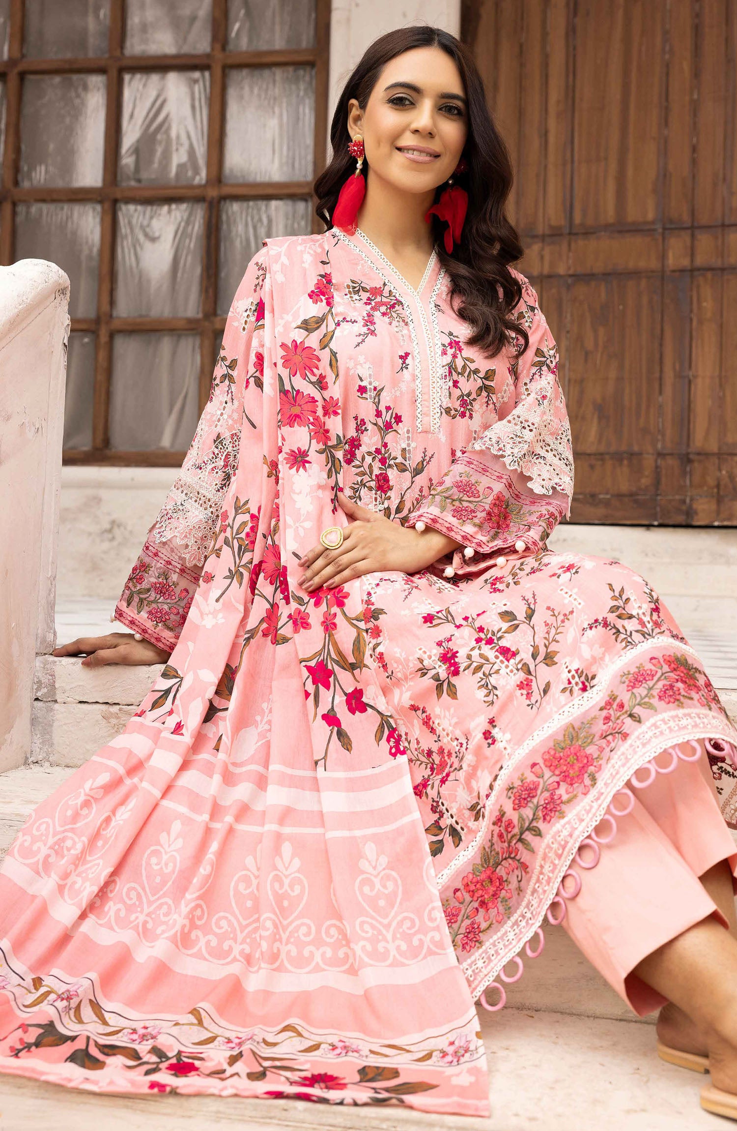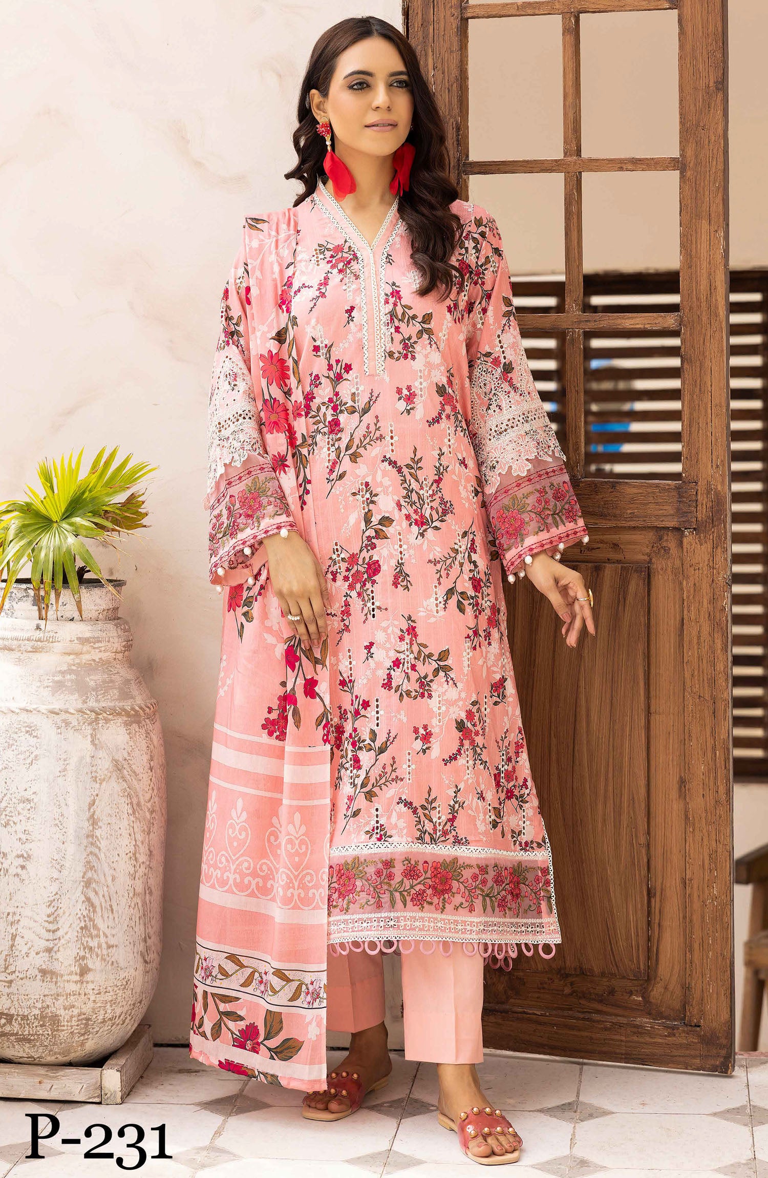 Home NUR Embroidered Lawn Unstitched 3 Piece Suit - P-231 - NUR25MP - Peach - Summer Collection