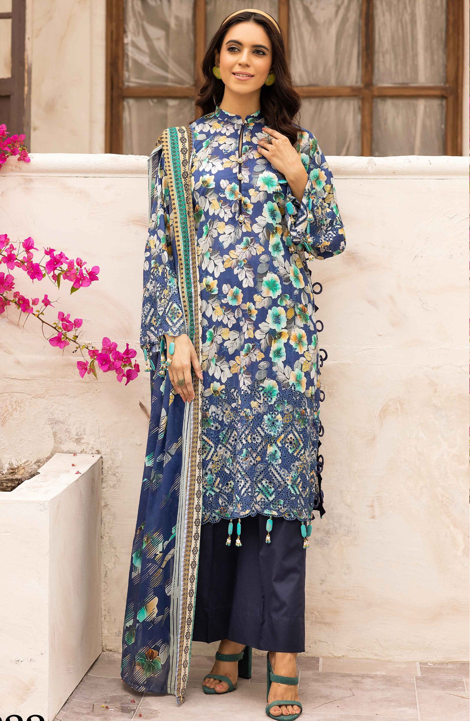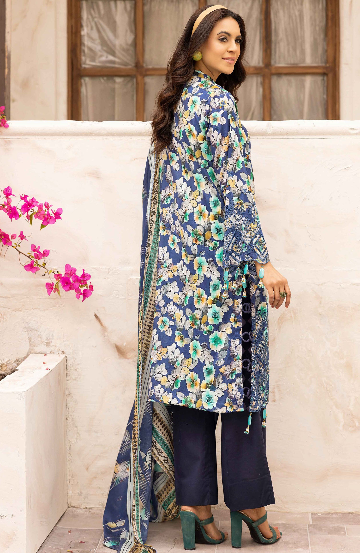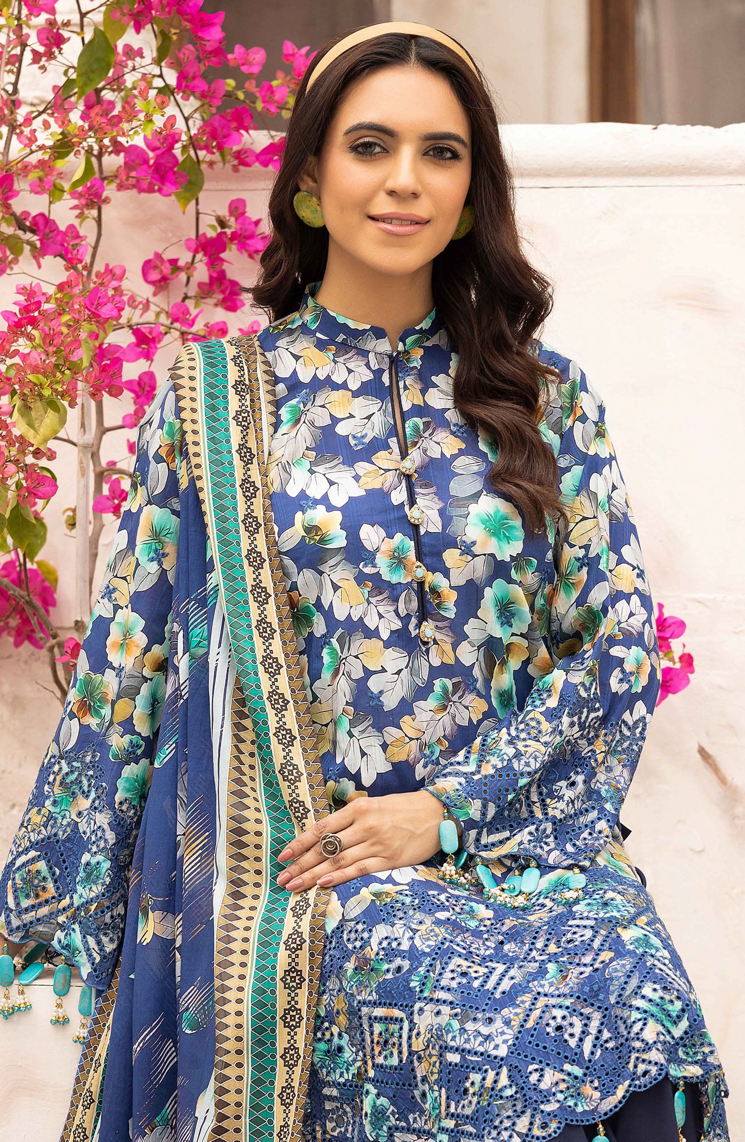 Home NUR Embroidered Lawn Unstitched 3 Piece Suit - P-232 - NUR25MP - Blue - Summer Collection