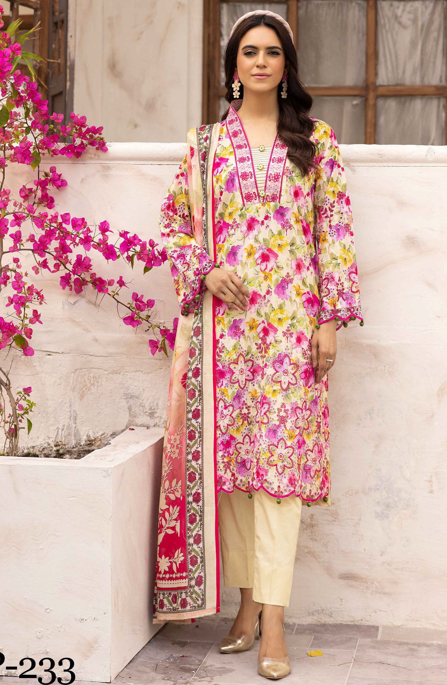 The standard style comes as a long-sleeved kameez with dupatta and trouser/shawlar.