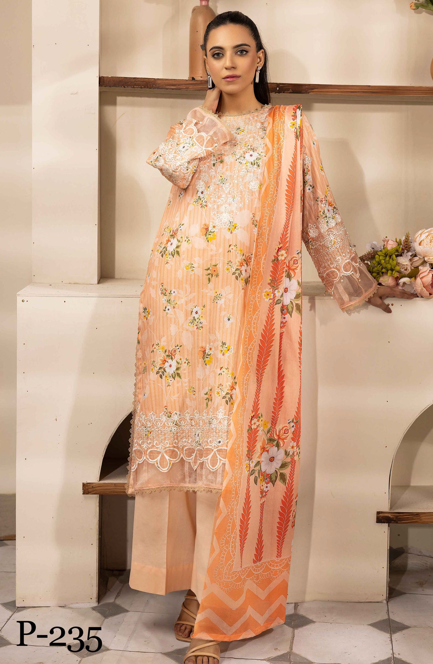 The standard style comes as a long-sleeved kameez with dupatta and trouser/shawlar.
