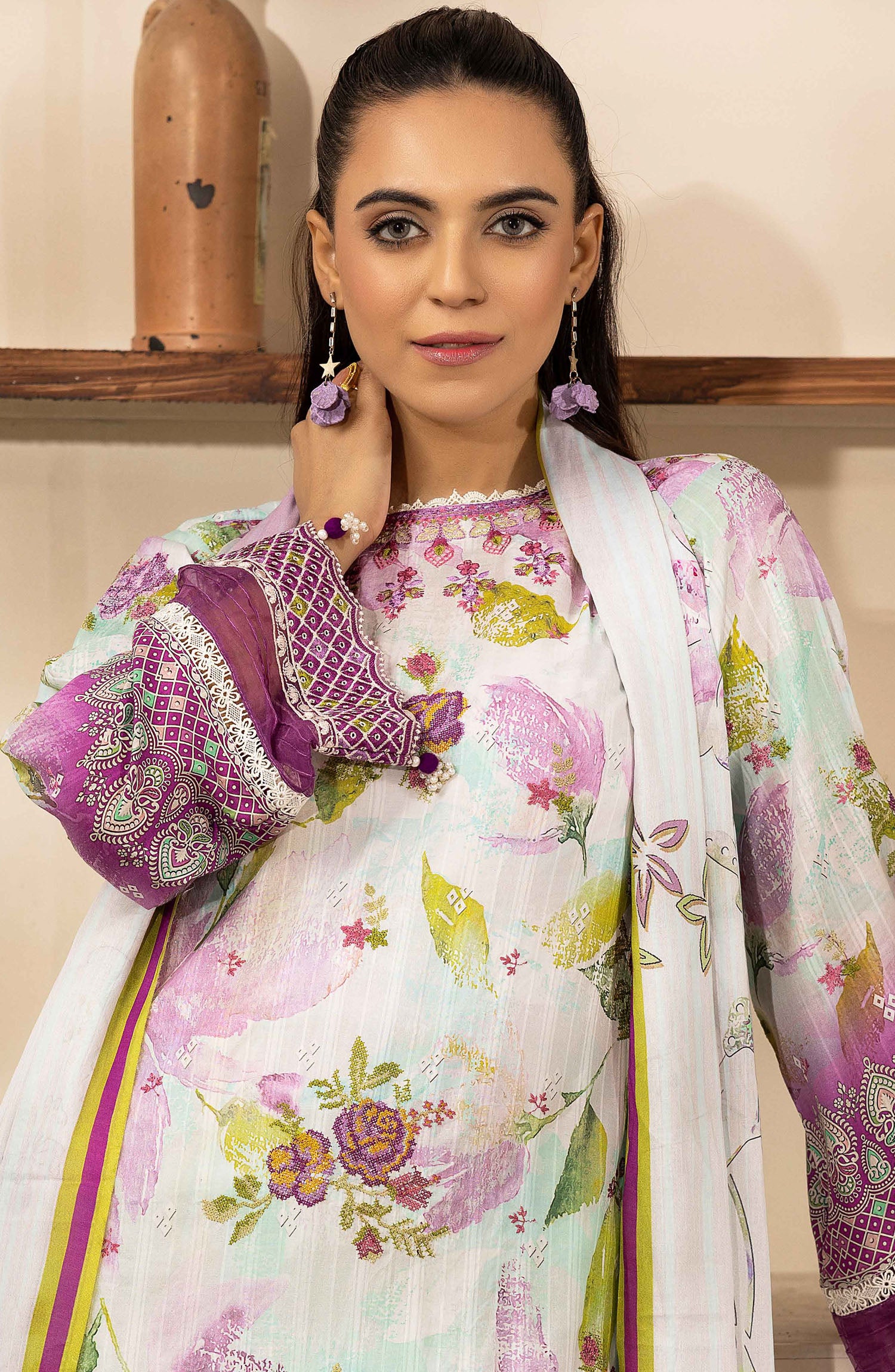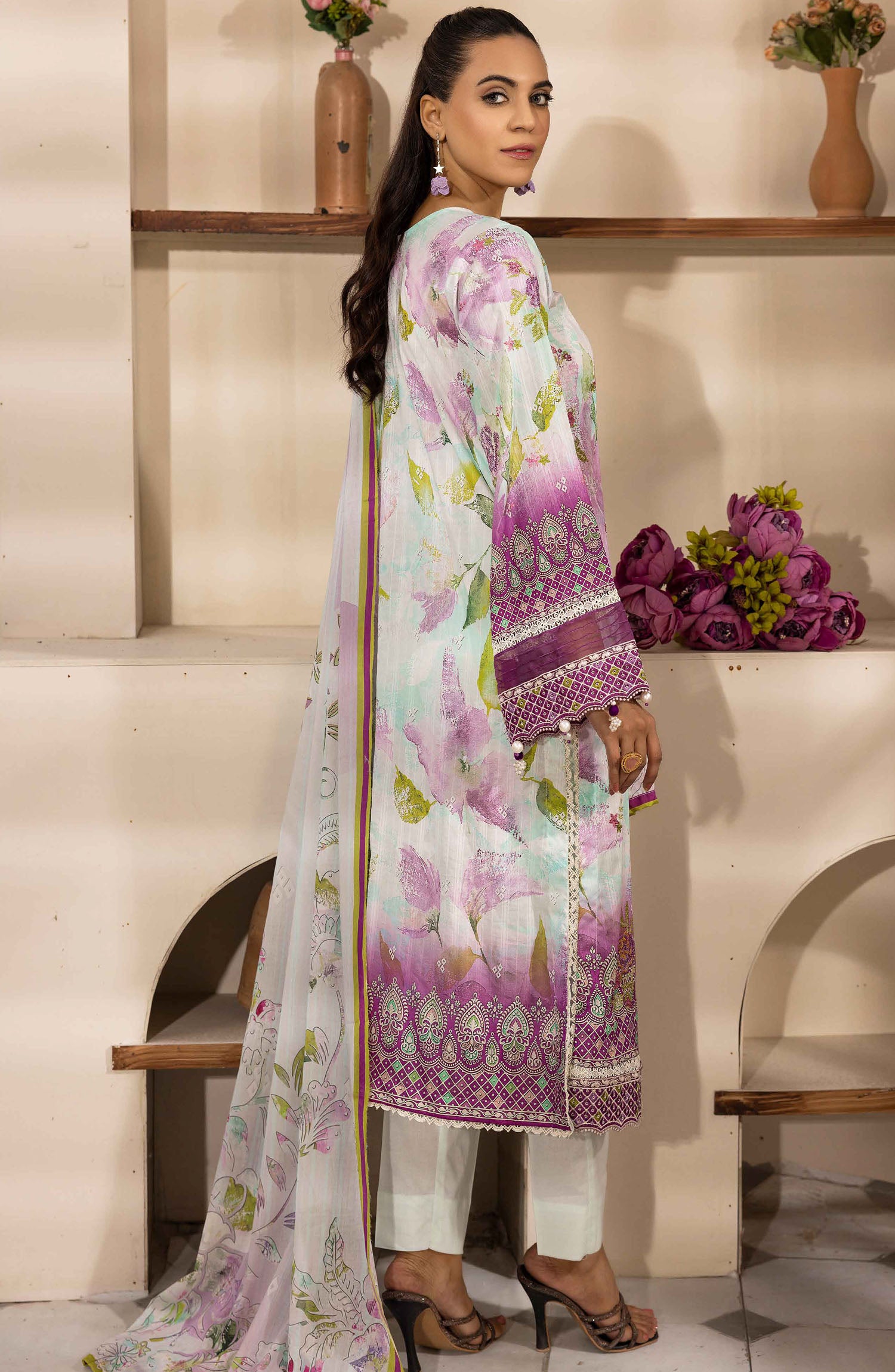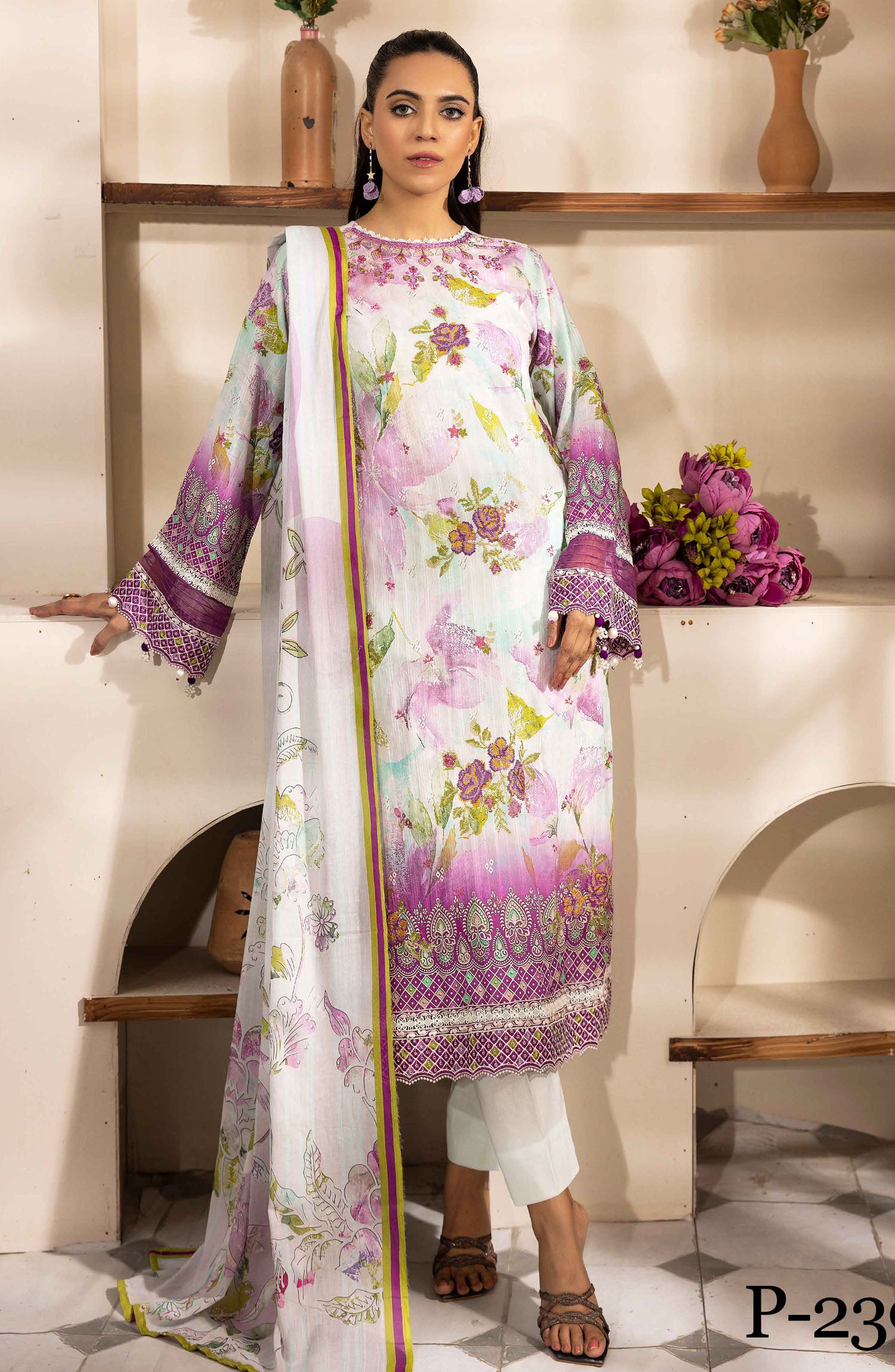 Home NUR Embroidered Lawn Unstitched 3 Piece Suit - P-239 - NUR25MP - White - Summer Collection