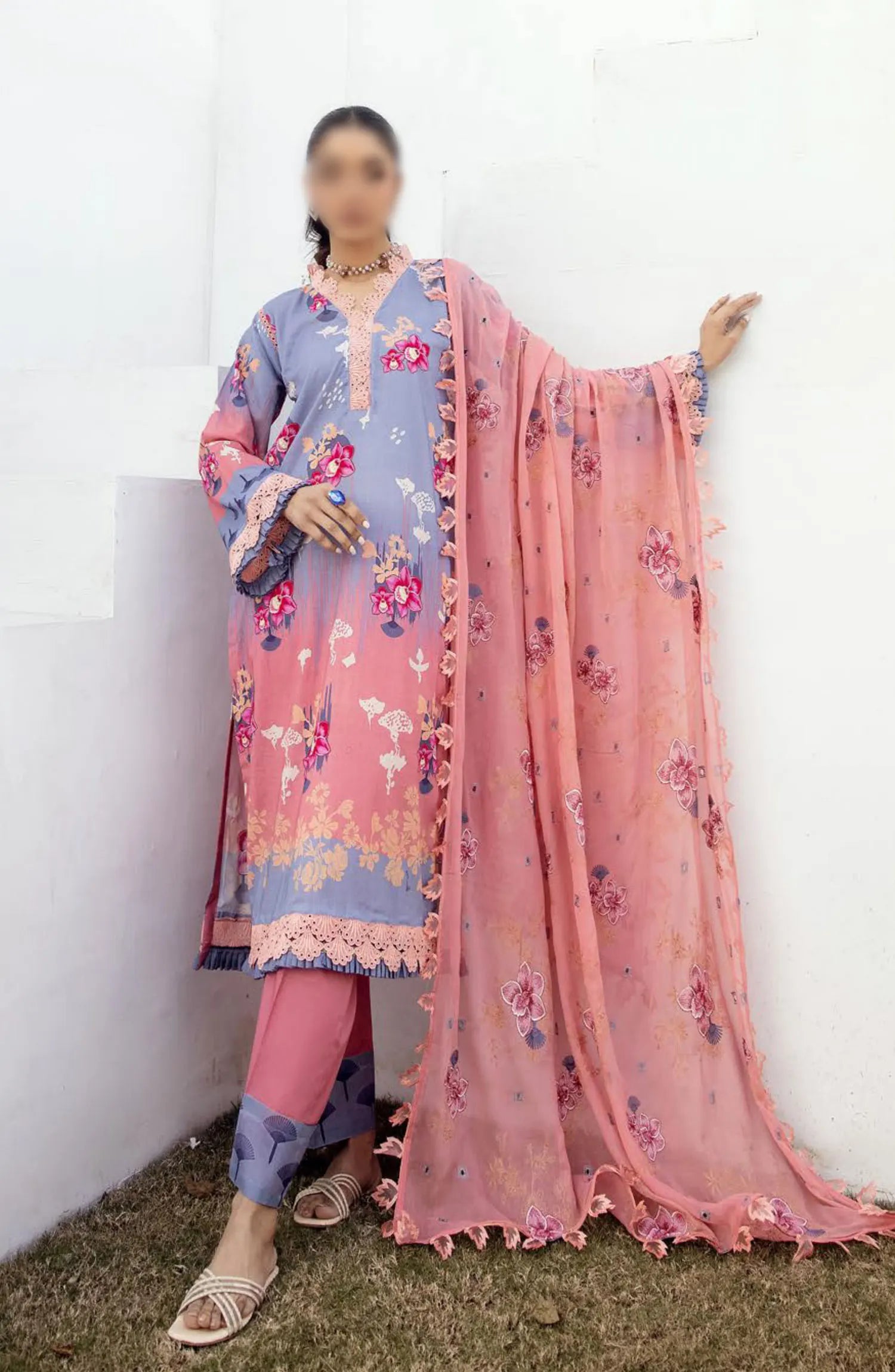 NUR Milan Rut Embroidered and Printed Lawn Collection 2024 has been styled in the image for photography and illustrative purposes.
