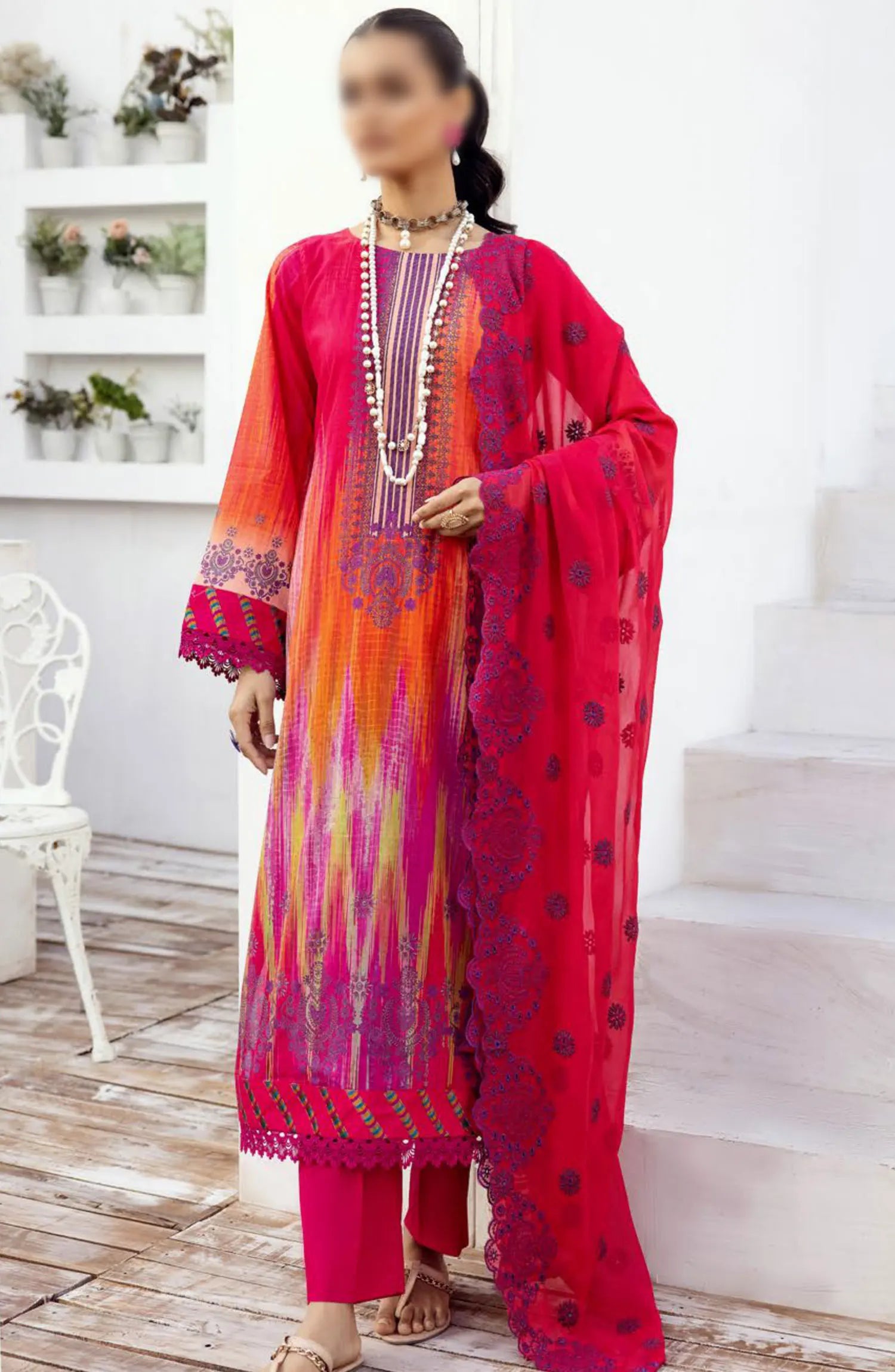 NUR Milan Rut Embroidered and Printed Lawn Collection 2024 has been styled in the image for photography and illustrative purposes.