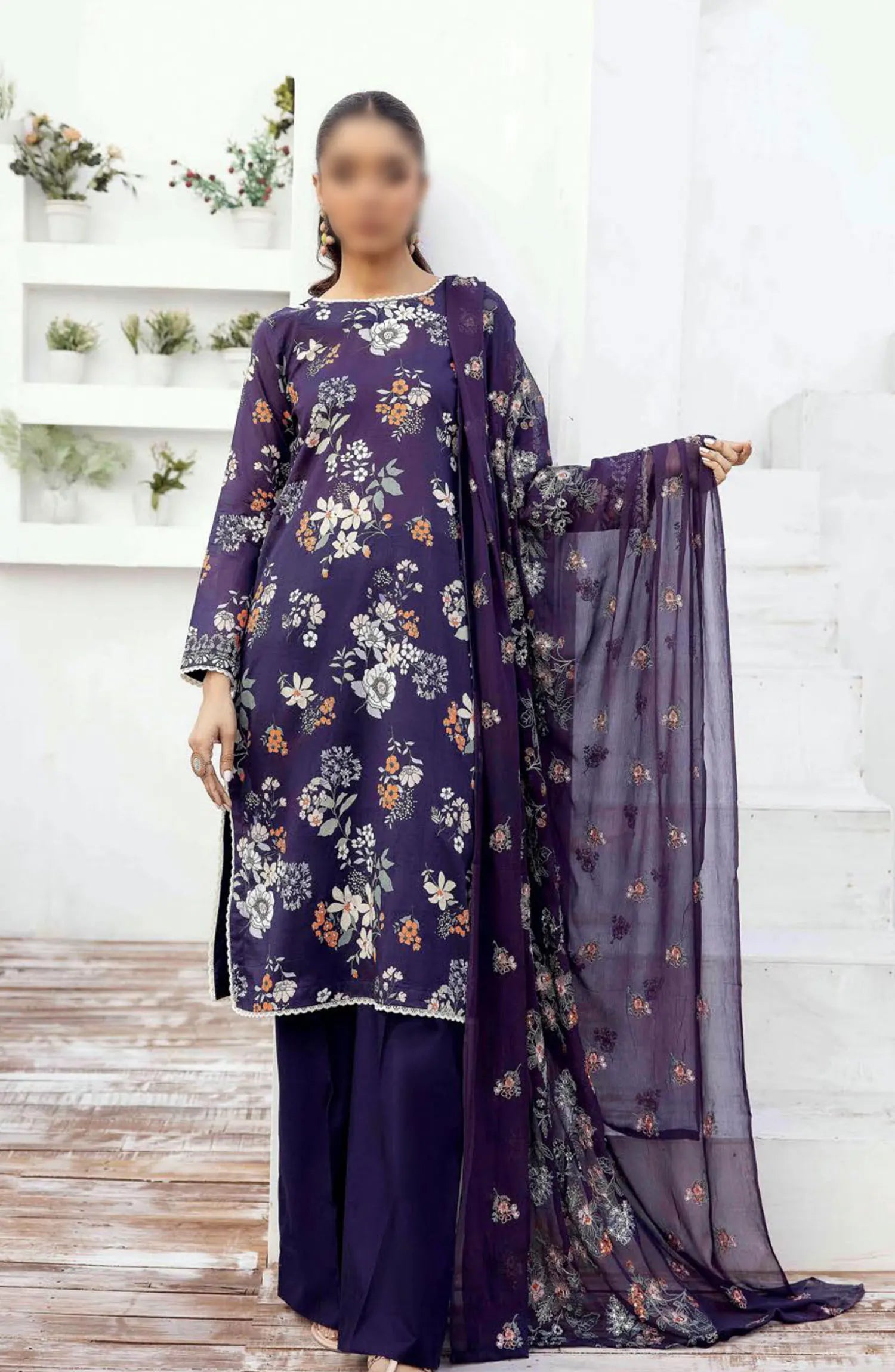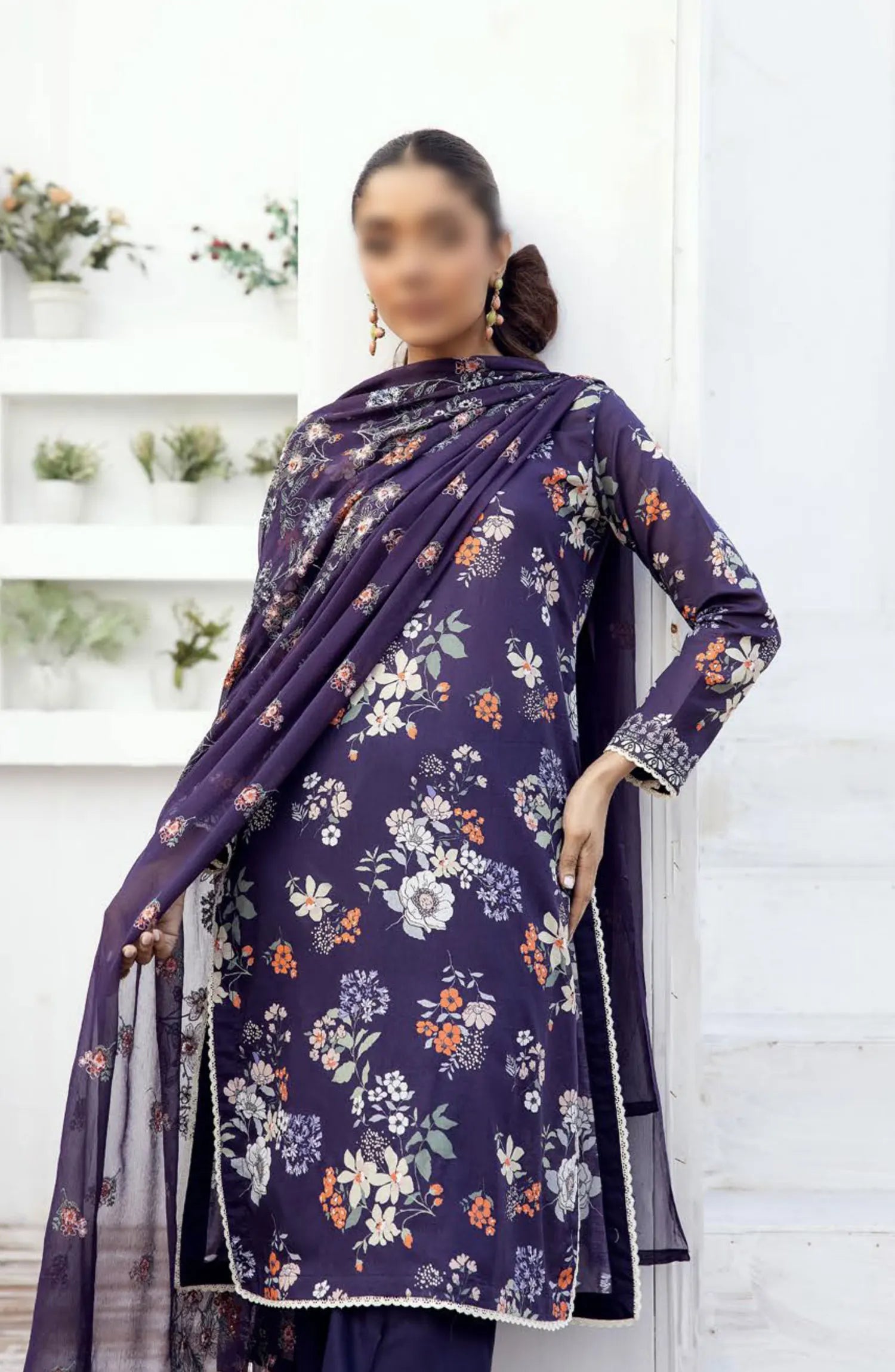 Lamisah by Lavish Premium Afsana Embroidered Chiffon Unstitched 3 Piece Suit - D-06 Lilac Reverie - LP25AFS - Purple - Luxury Collection