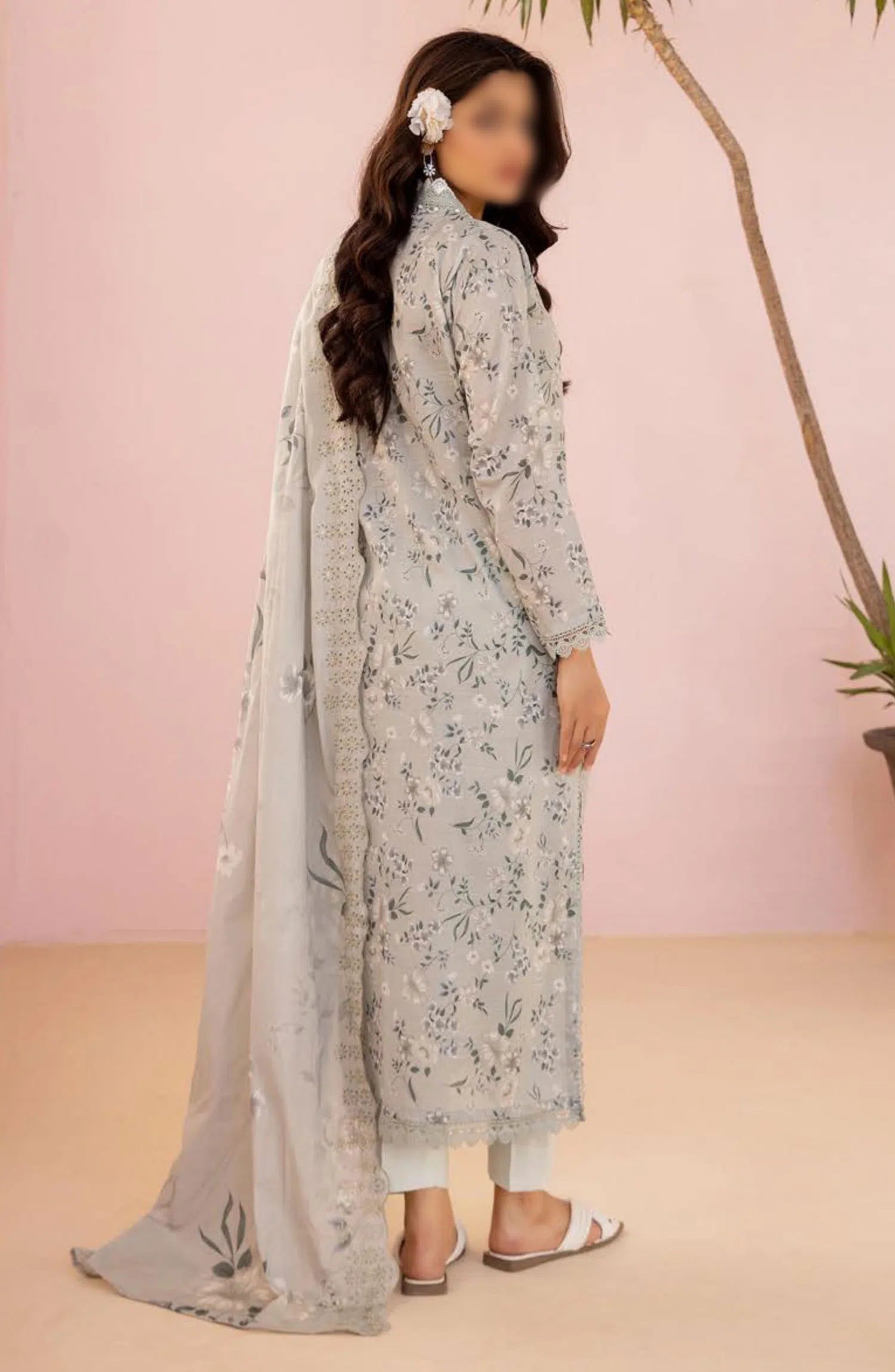 NUR Pastels Printed Embroidered Lawn Collection has been styled in the image for photography and illustrative purposes.