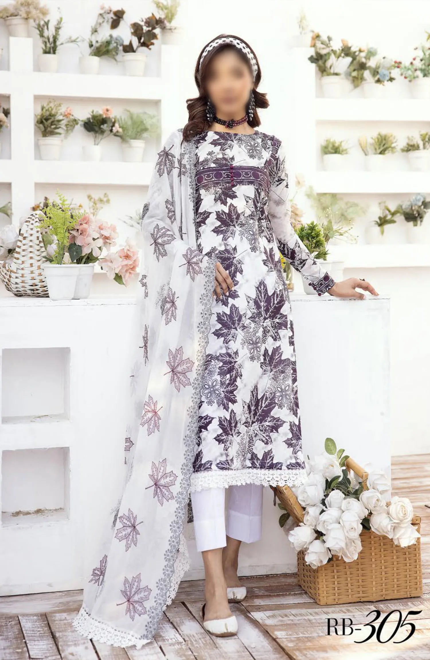 NUR Rang Barang Embroidered and Printed Lawn Collection 2024 has been styled in the image for photography and illustrative purposes.