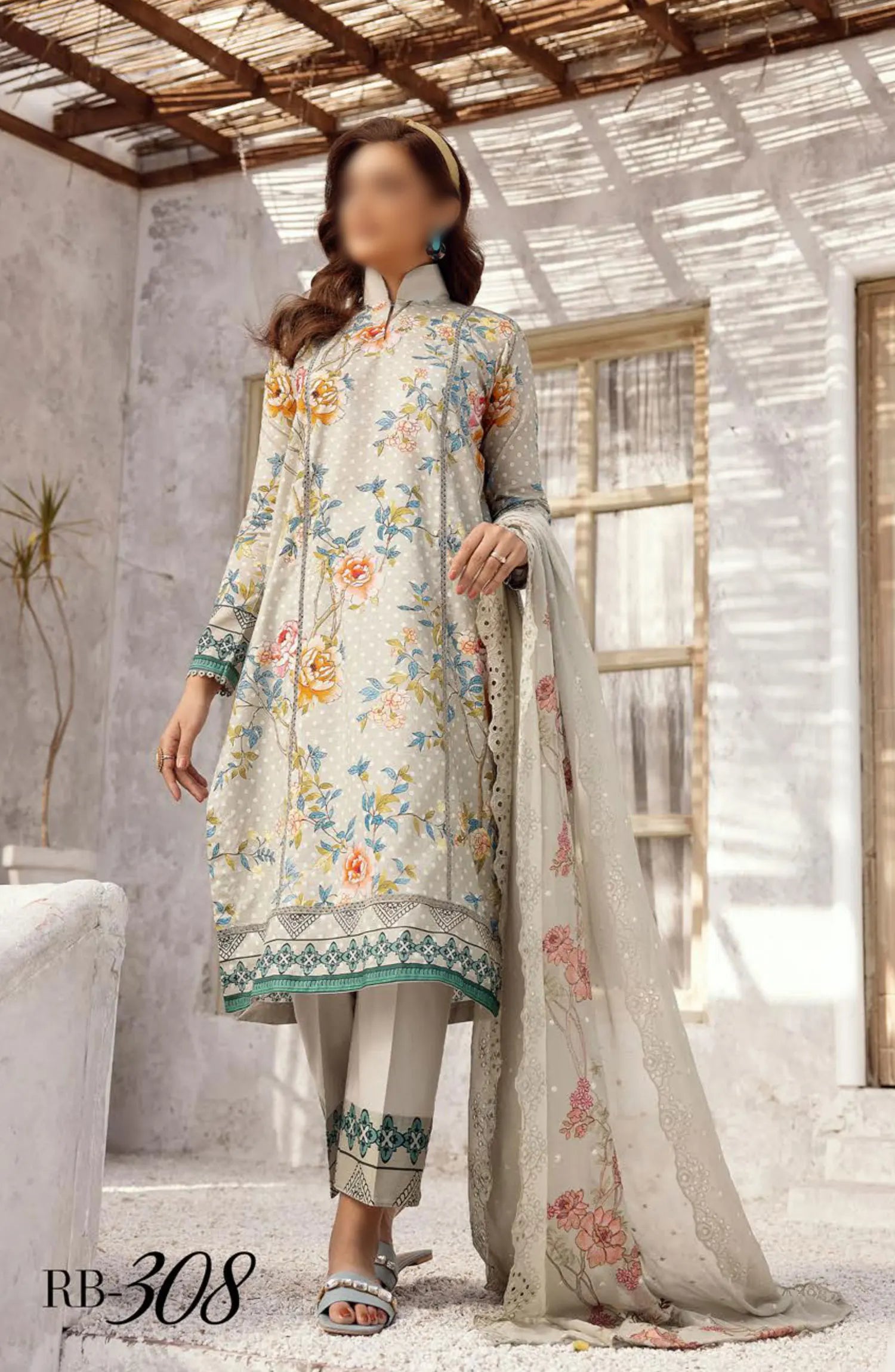 NUR Rang Barang Embroidered and Printed Lawn Collection 2024 has been styled in the image for photography and illustrative purposes.