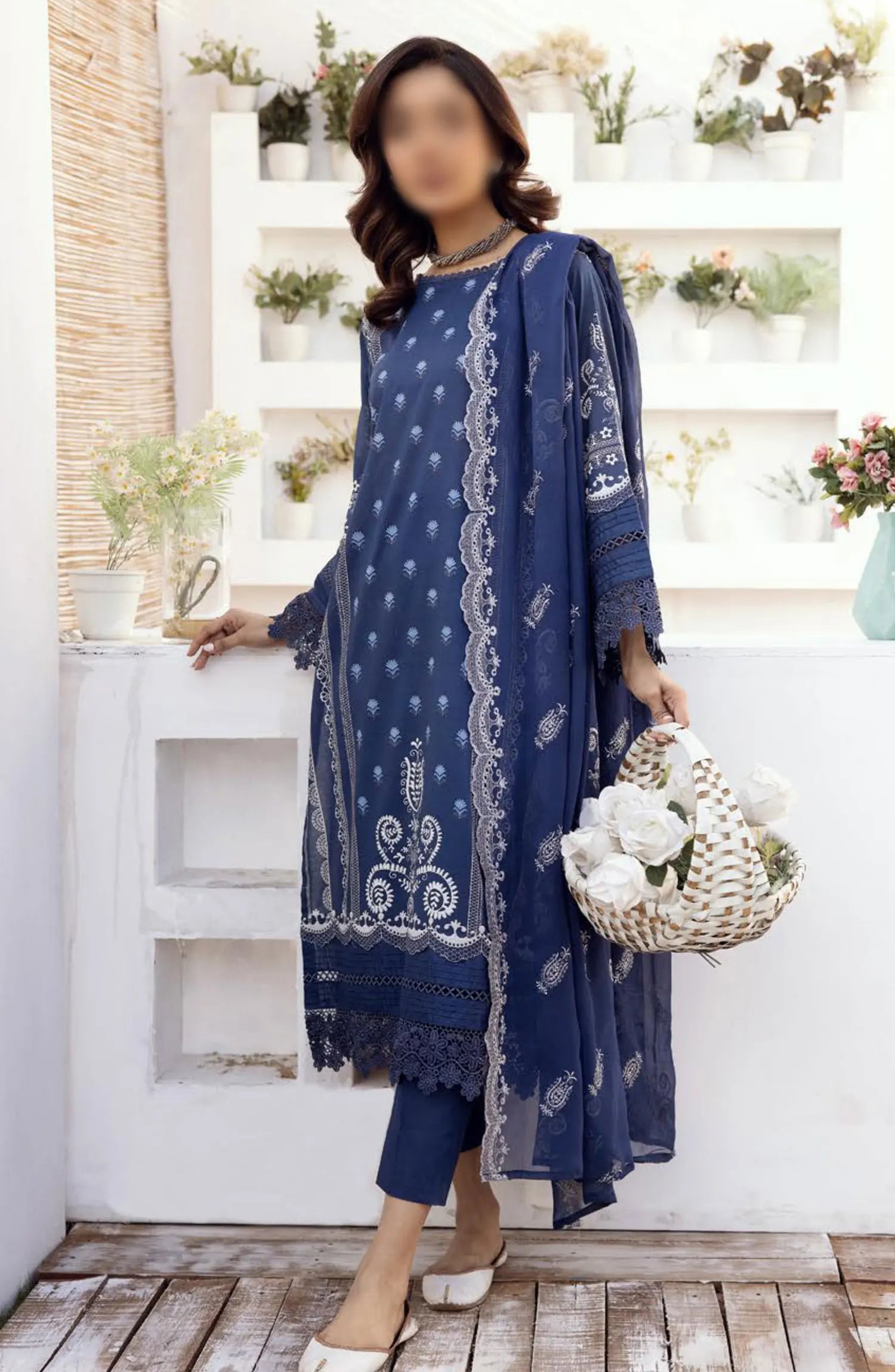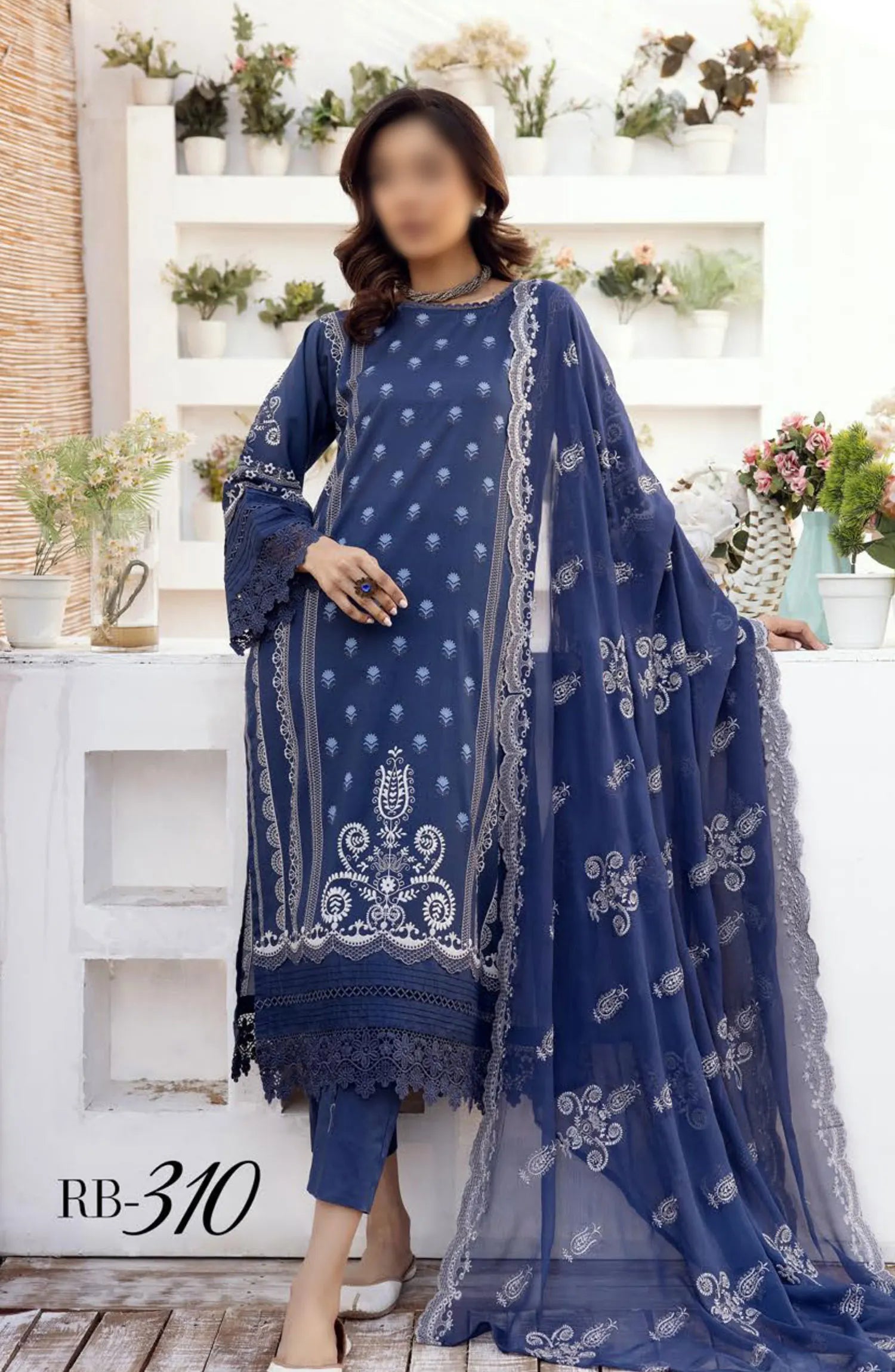 NUR Rang Barang Embroidered and Printed Lawn Collection 2024 has been styled in the image for photography and illustrative purposes.