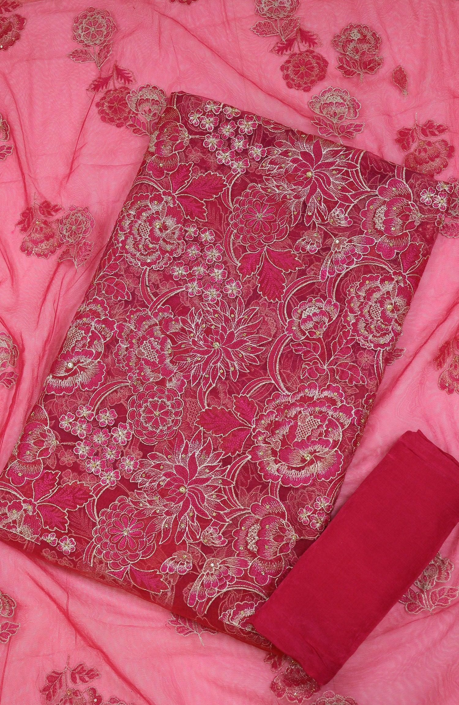Home Nura by Amna Khadija Embroidered Net Unstitched 3 Piece Suit - D-03 - AM25NFC - Pink - Summer Collection