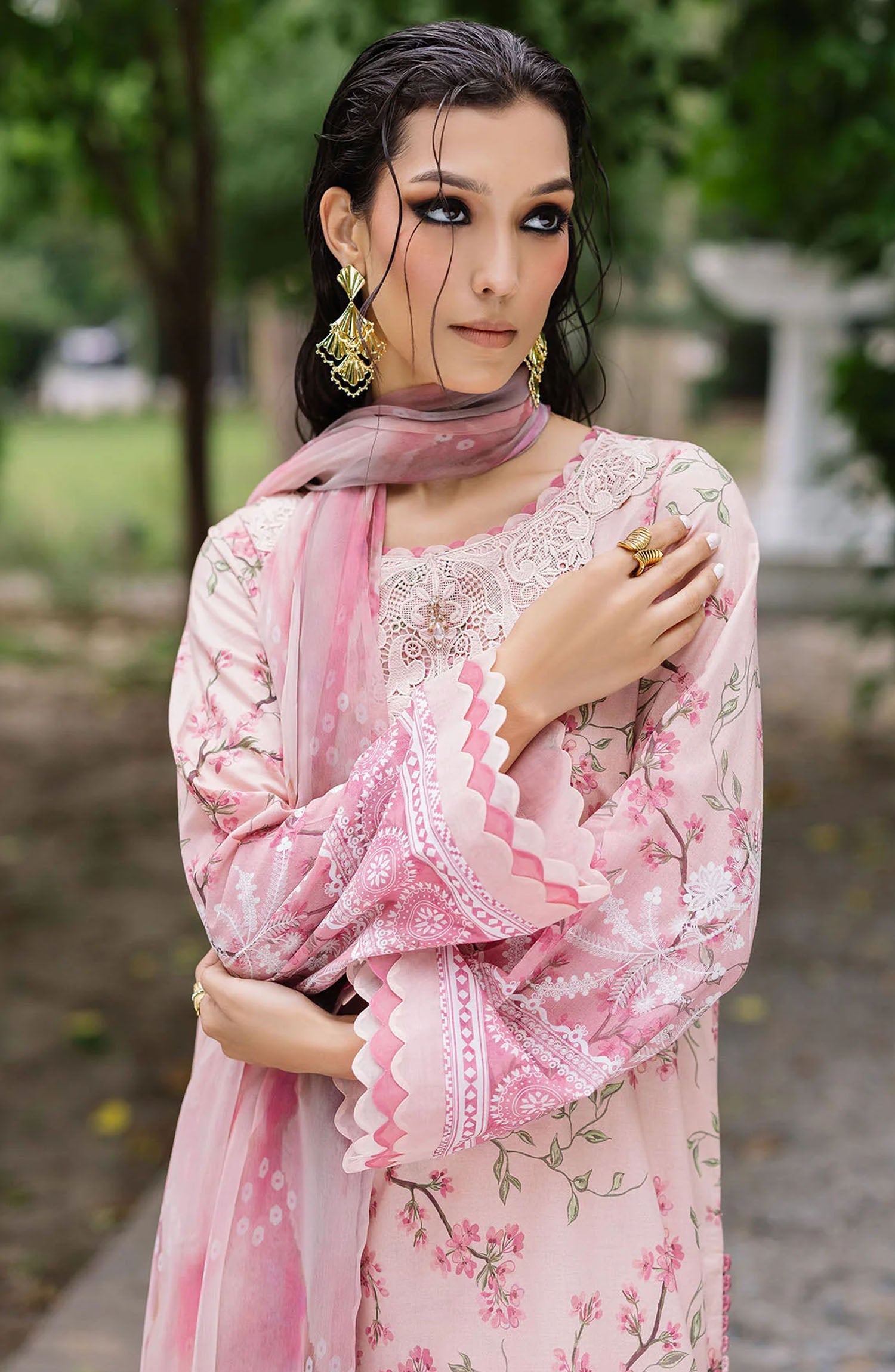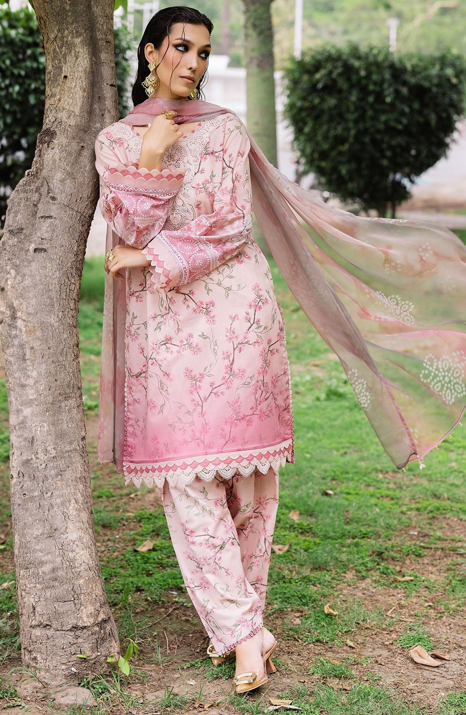 Printed Lawn Shirt With Chikankari Lace Neckline