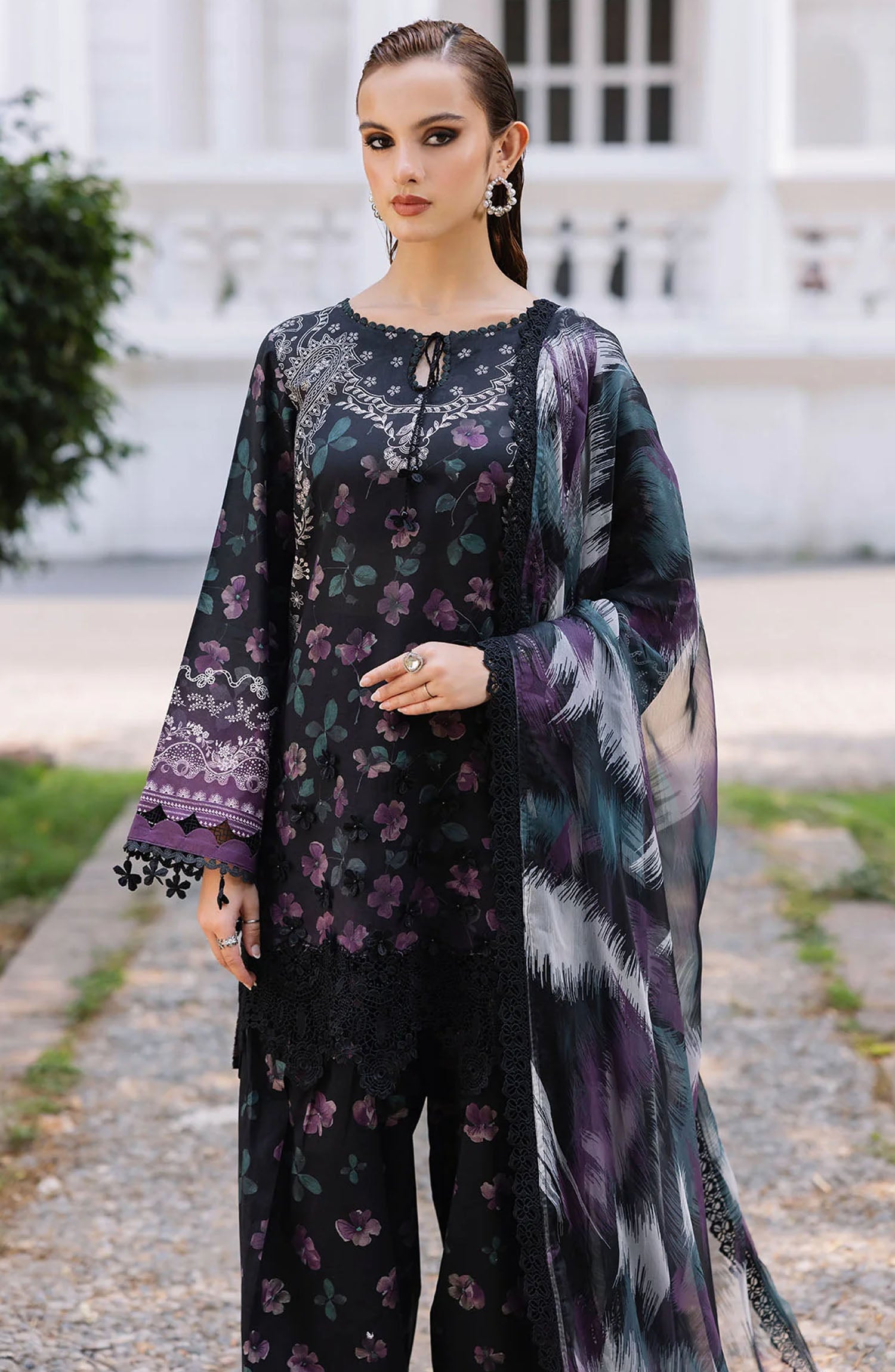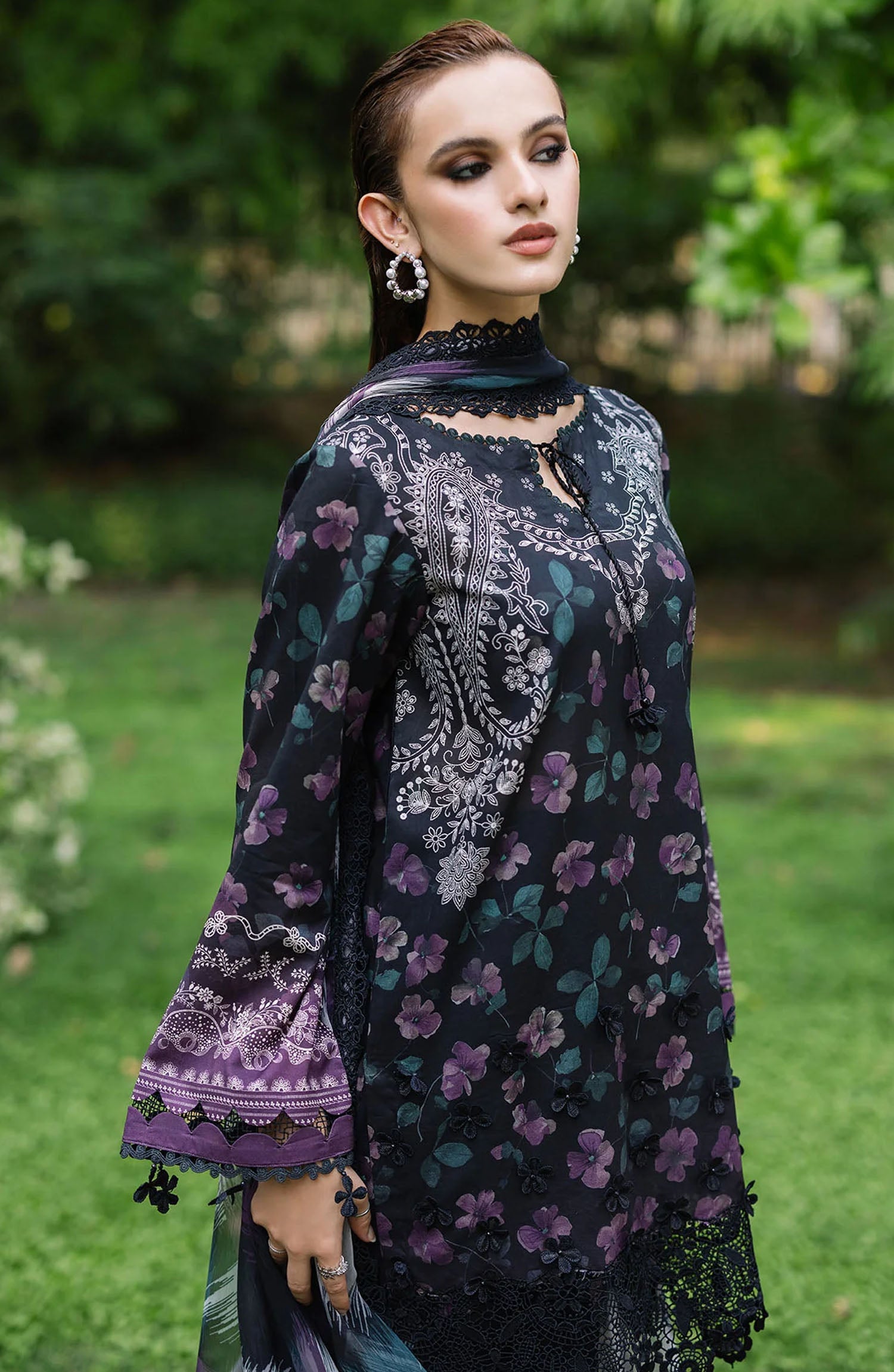 Printed Lawn Shirt With Chikankari Lace Border
