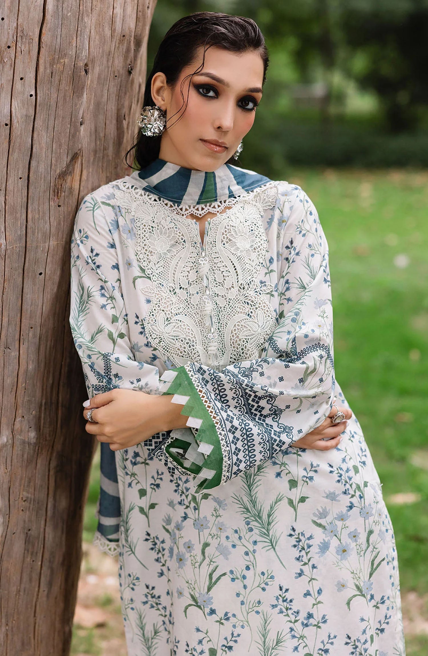 Printed Lawn Shirt With Chikankari Lace Neckline