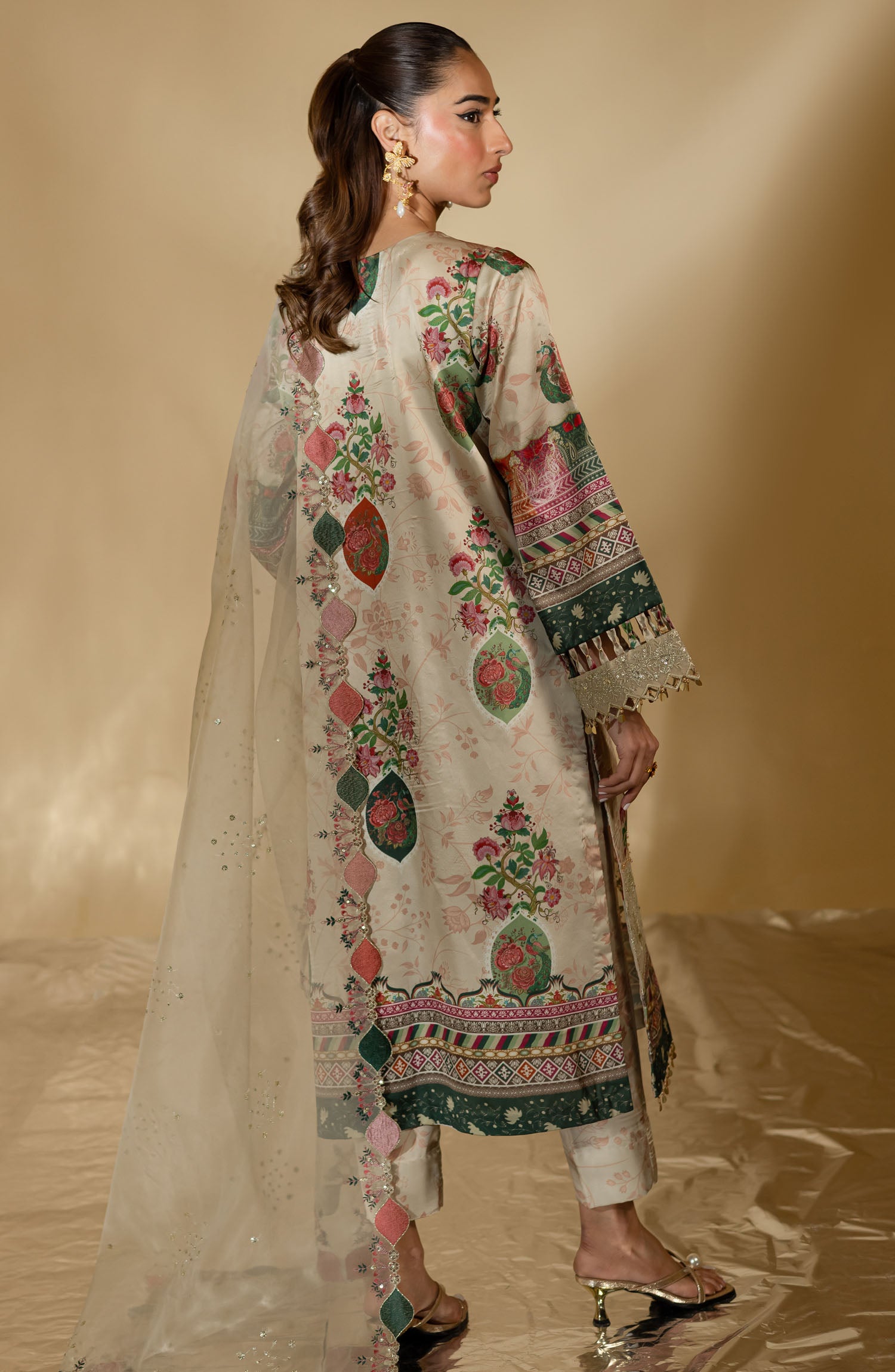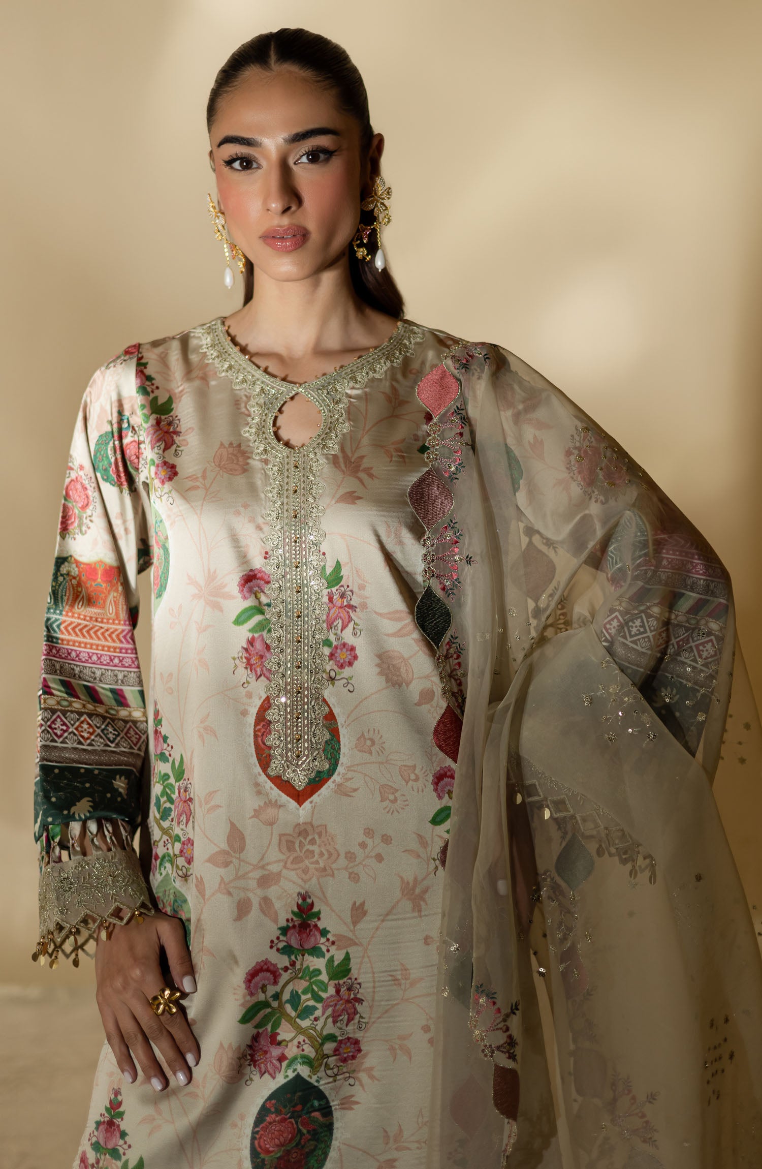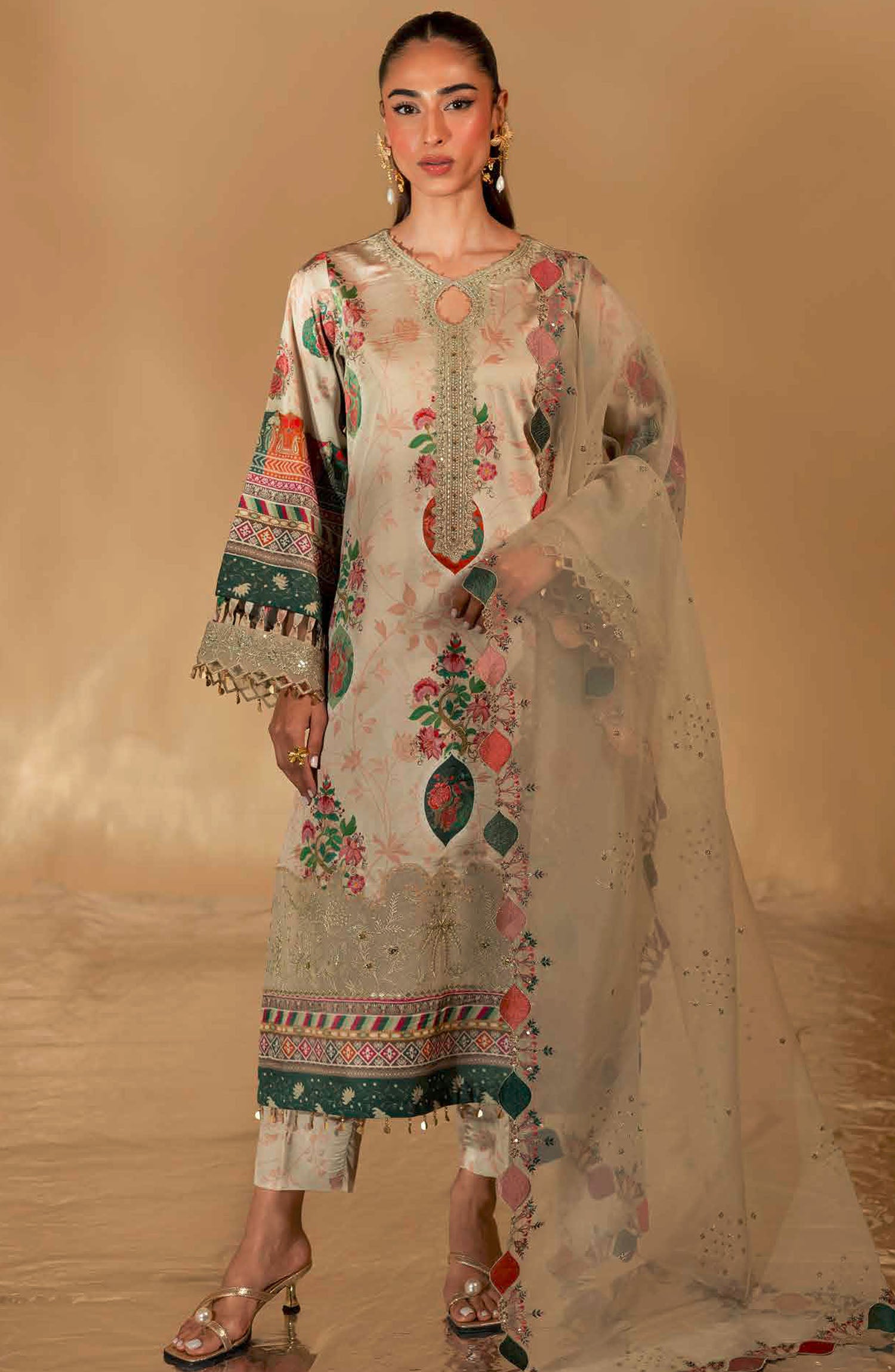 Nureh Embroidered Silk Unstitched 3 Piece Suit - Beige - S-20 - NU25TSE - Festive Collection