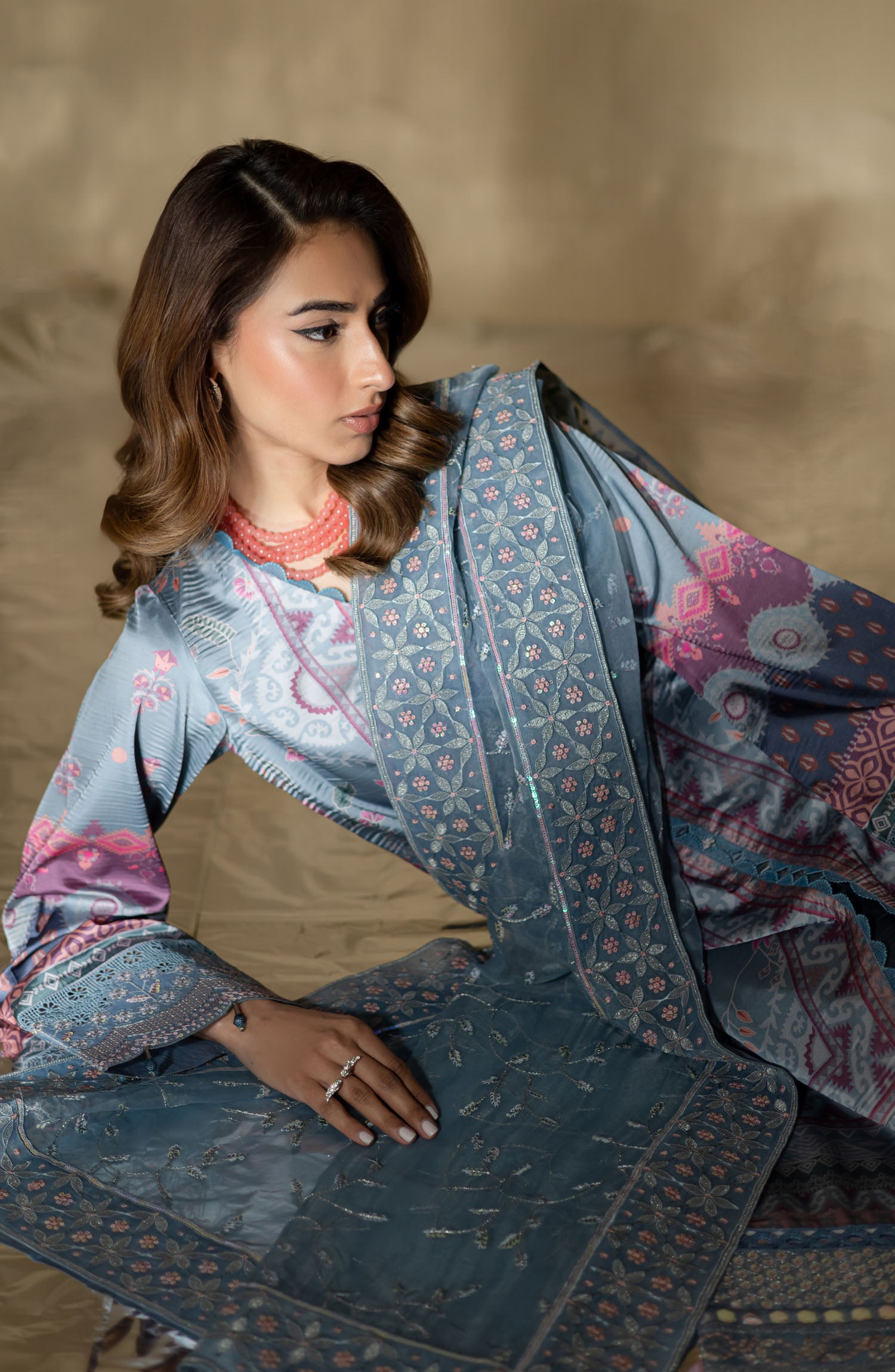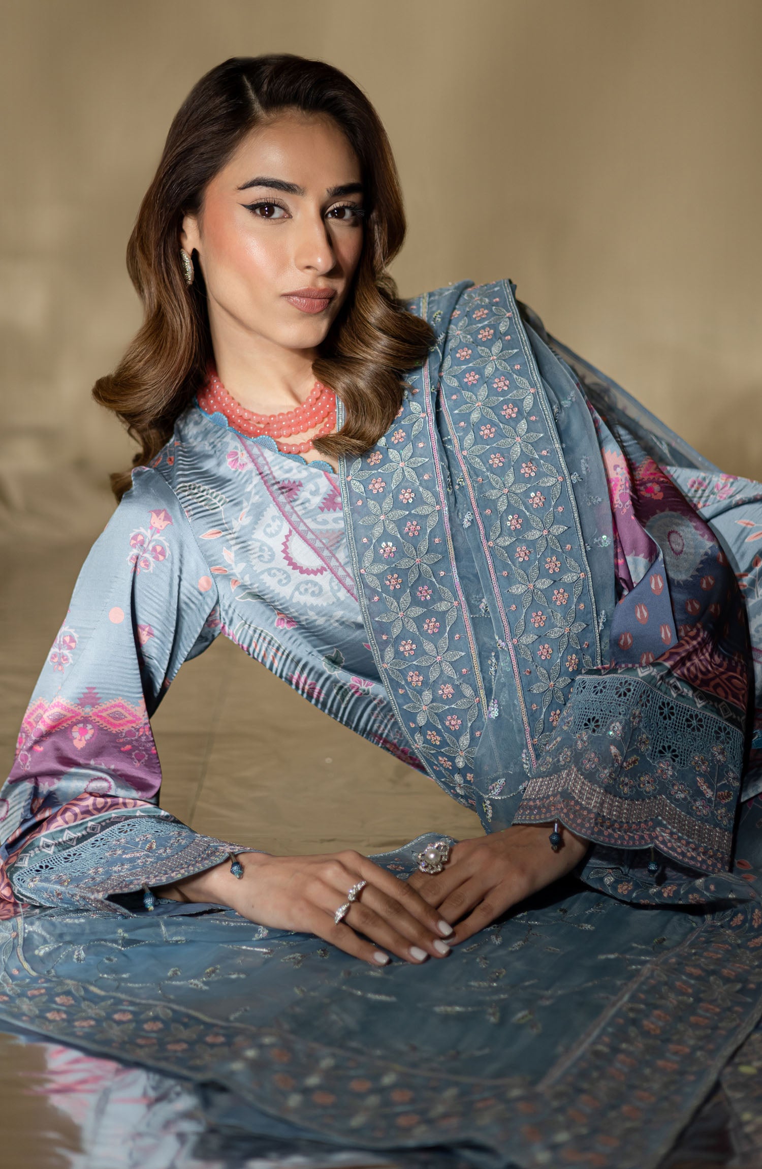 The standard style comes as a long-sleeved kameez with dupatta and trouser/shawlar.