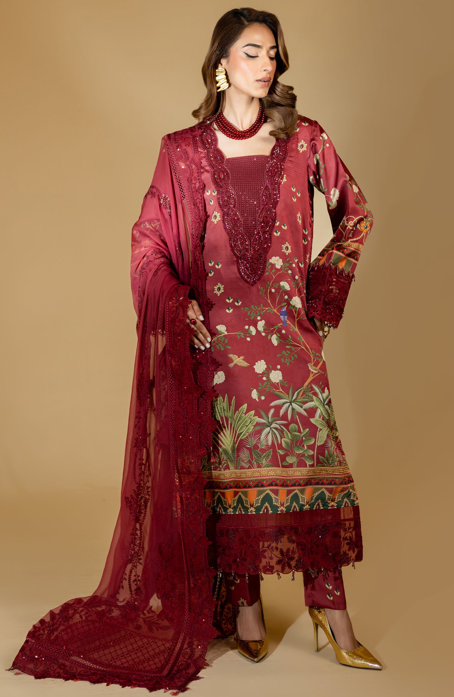 The standard style comes as a long-sleeved kameez with dupatta and trouser/shawlar.