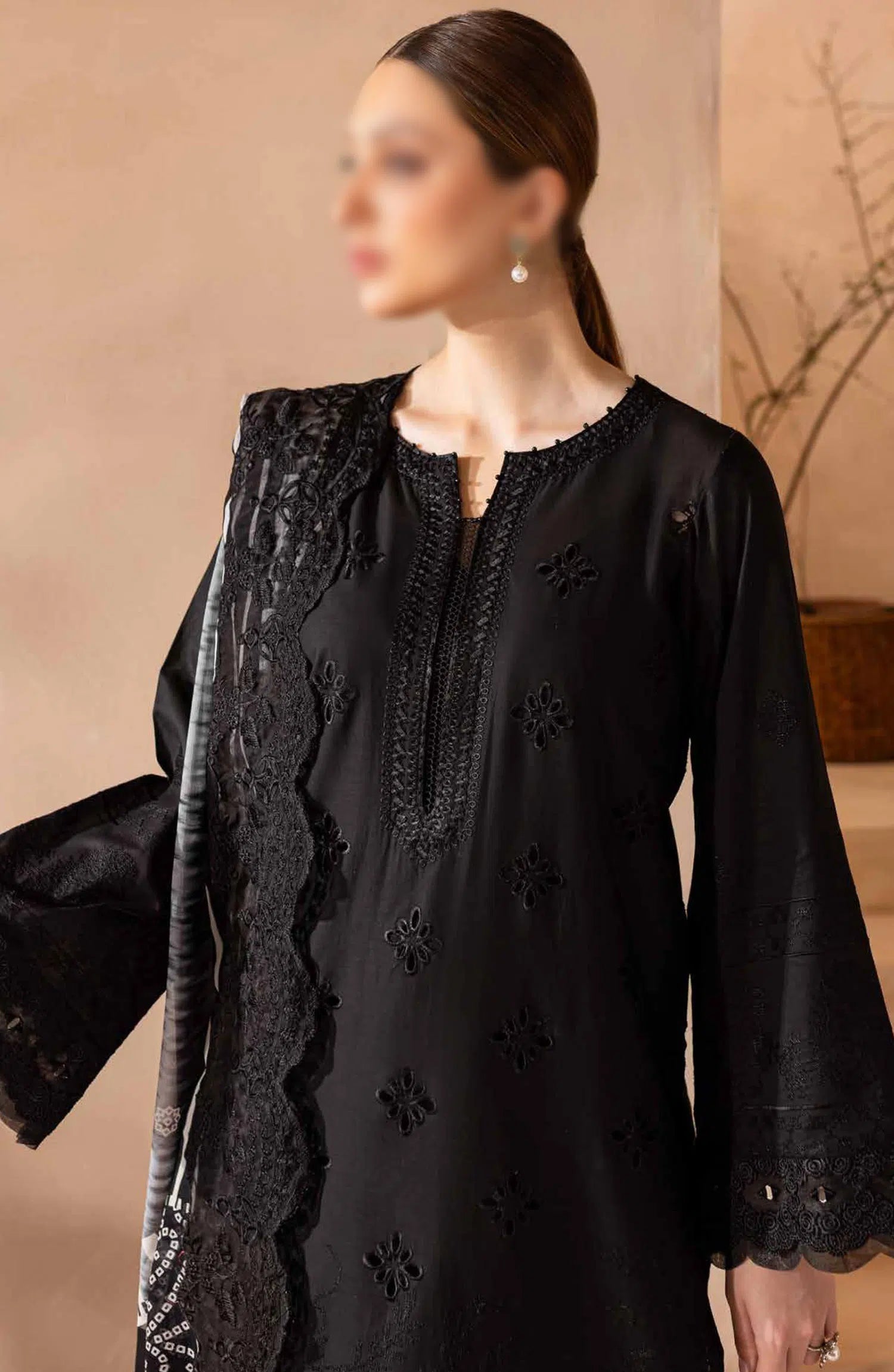 Nureh Koyal Embroidered Unstitched Monochrome Collection has been styled in the image for photography and illustrative purposes.