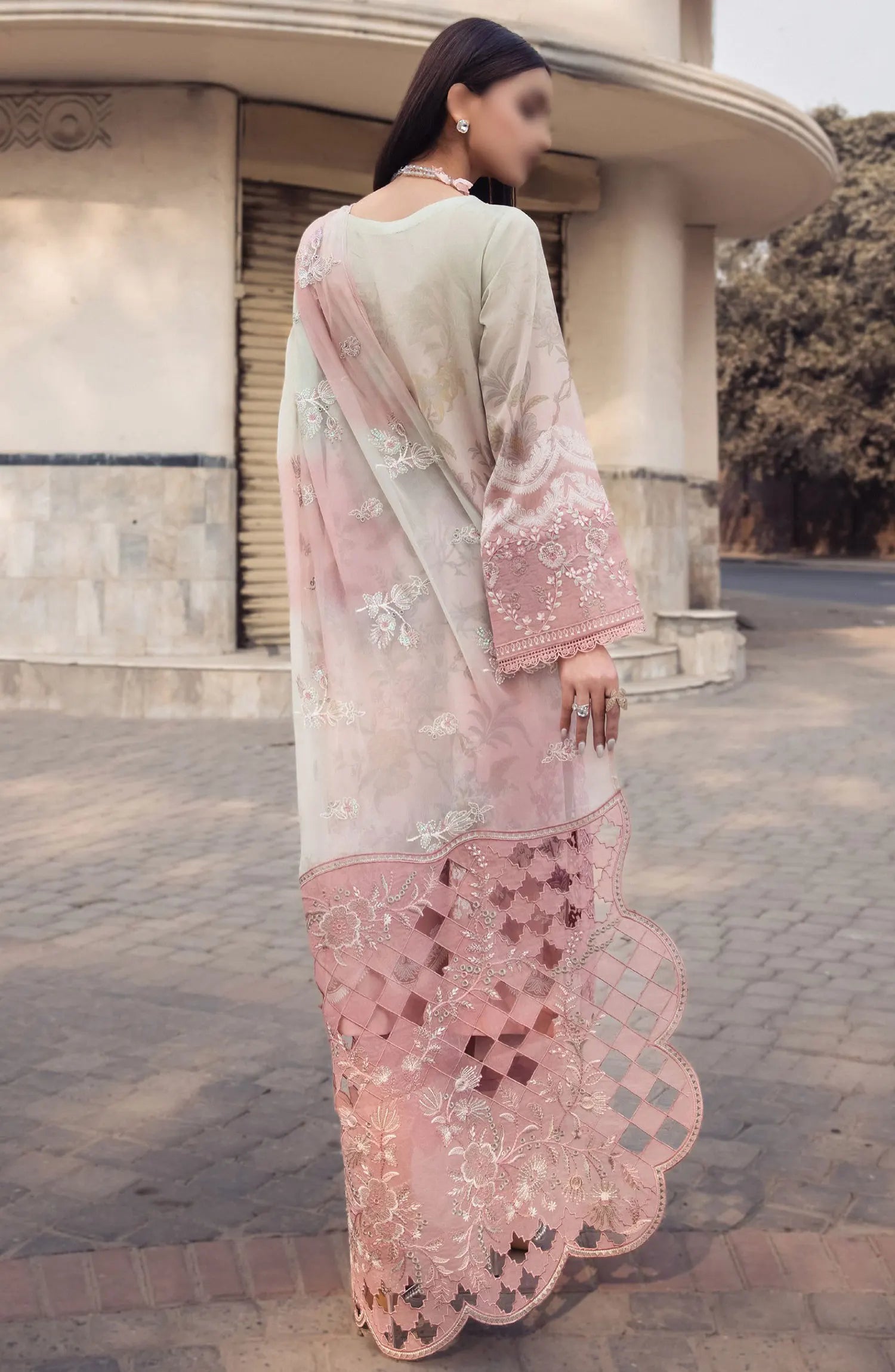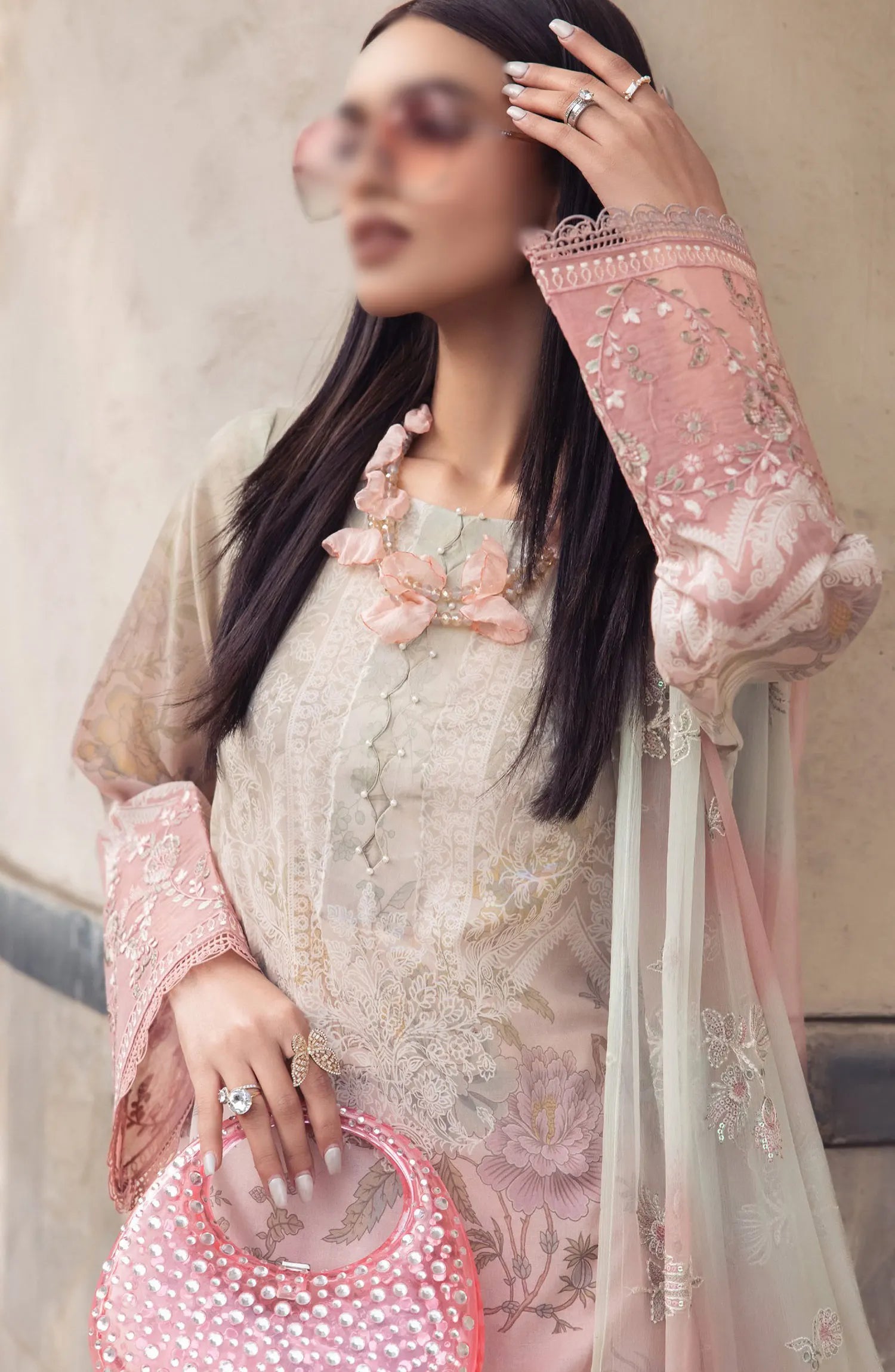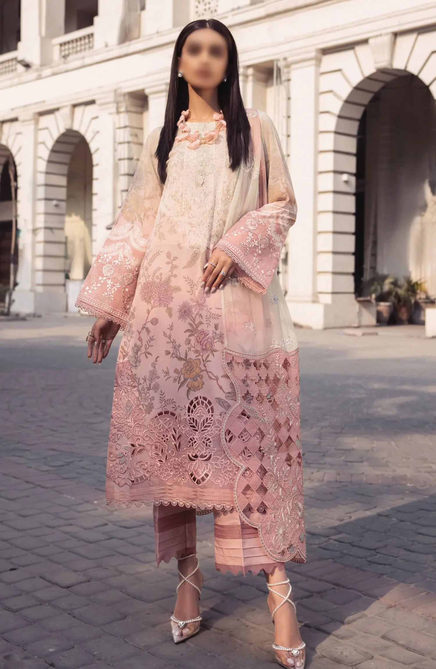 Nureh Maya Swiss Voile Embroidered Collection 2024 has been styled in the image for photography and illustrative purposes.