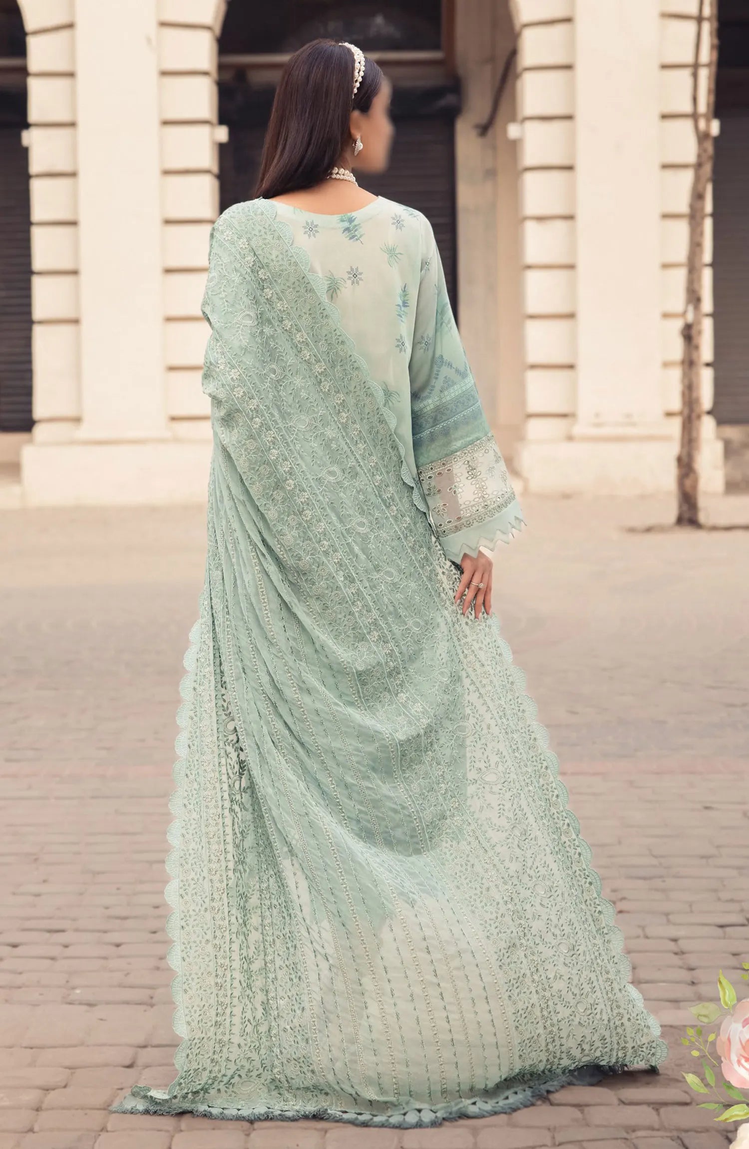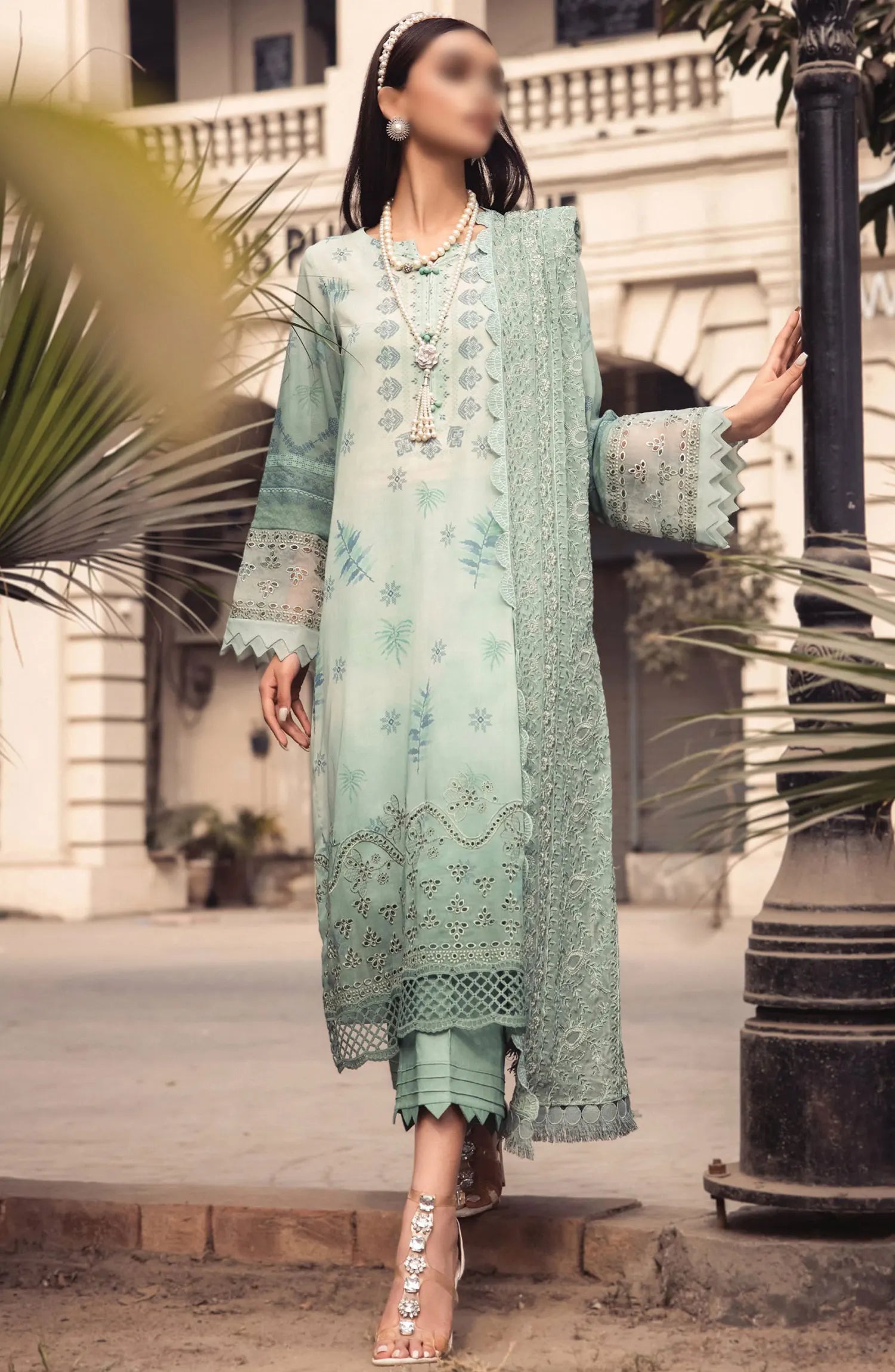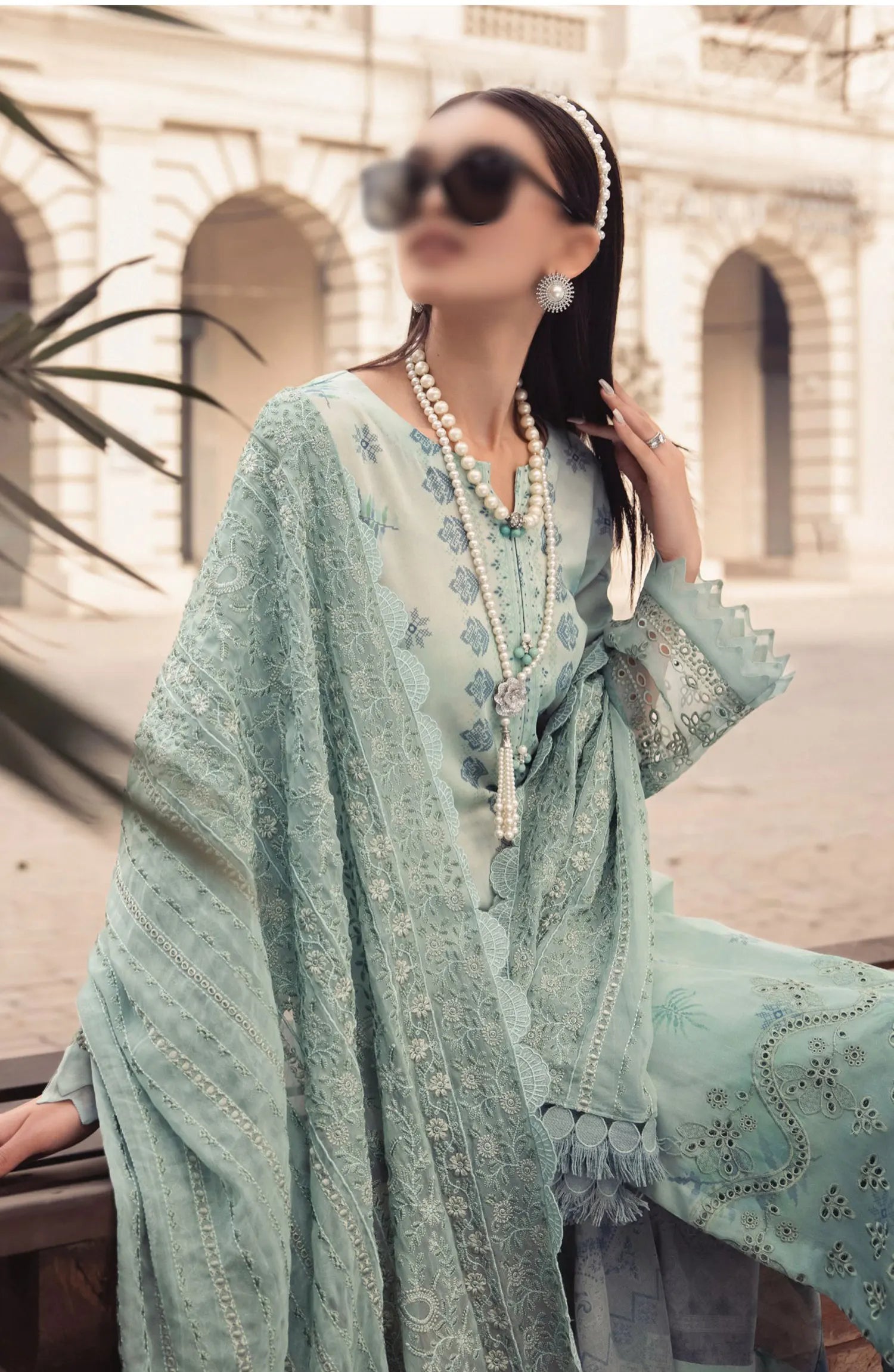 Nureh Maya Swiss Voile Embroidered Collection 2024 has been styled in the image for photography and illustrative purposes.
