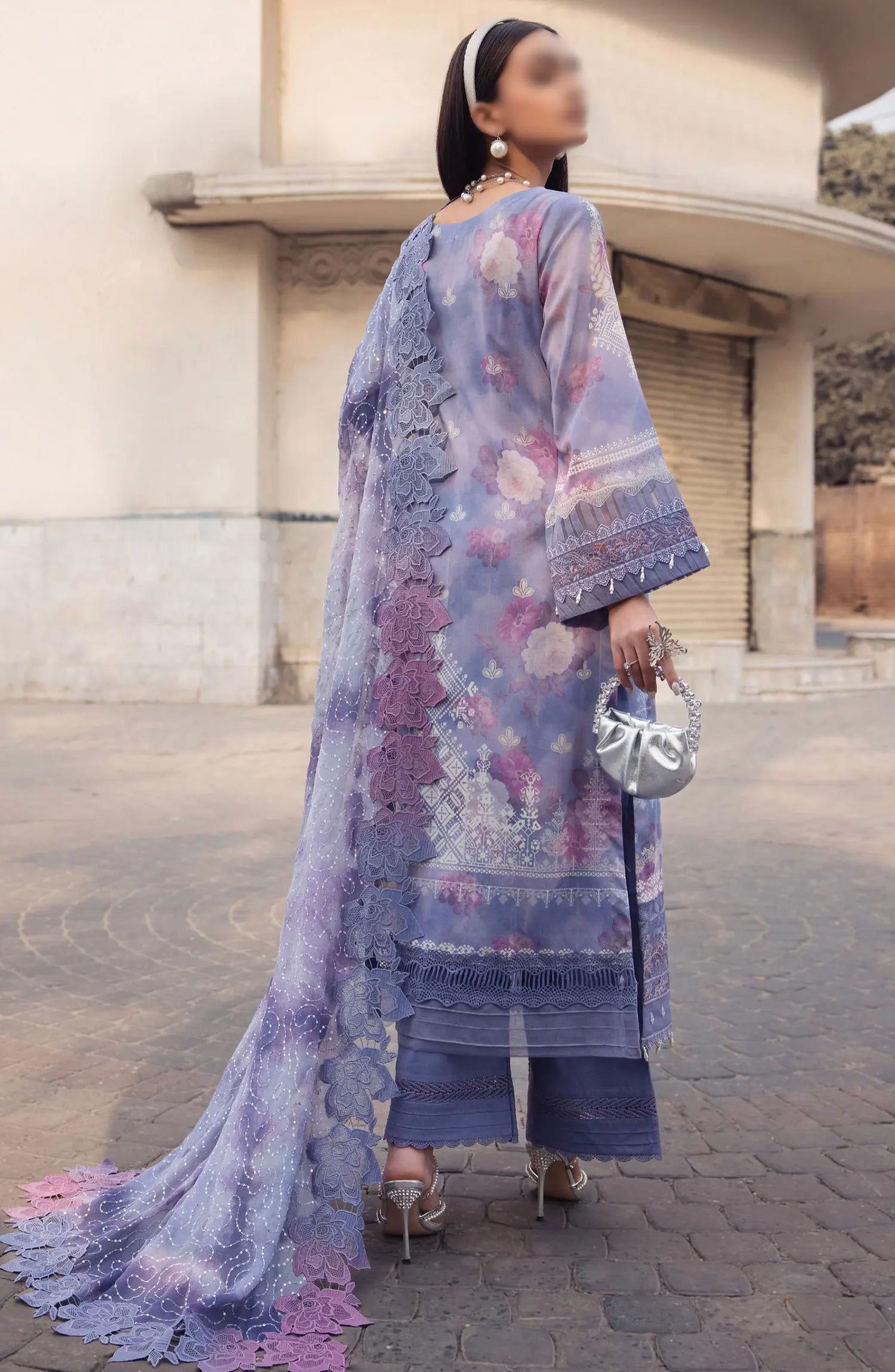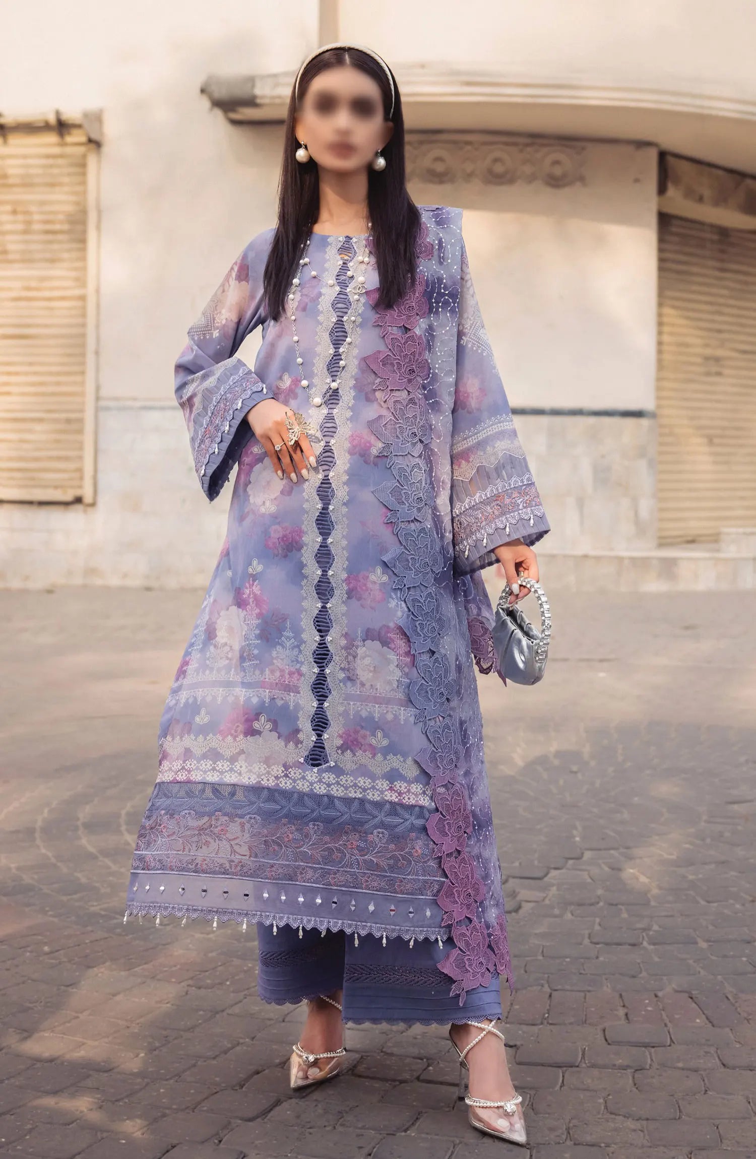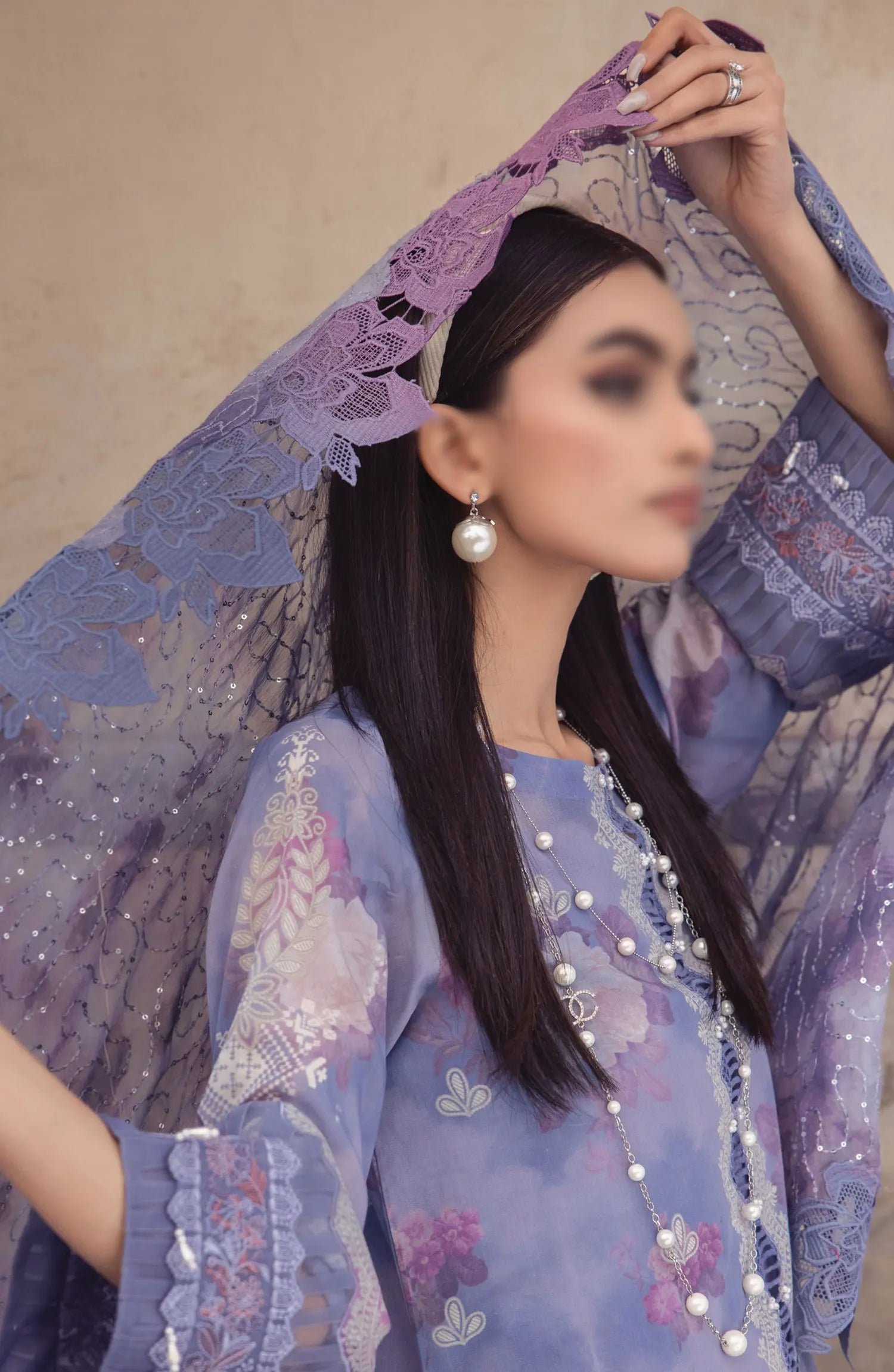 Nureh Maya Swiss Voile Embroidered Collection 2024 has been styled in the image for photography and illustrative purposes.