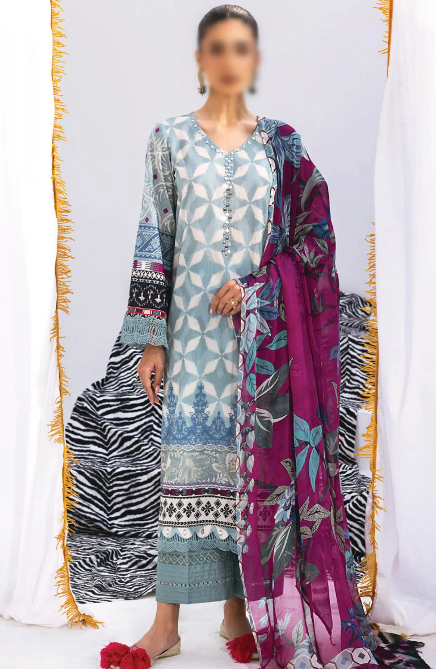 Nureh N-Girls Unstitched Premium Printed Lawn Collection has been styled in the image for photography and illustrative purposes.
