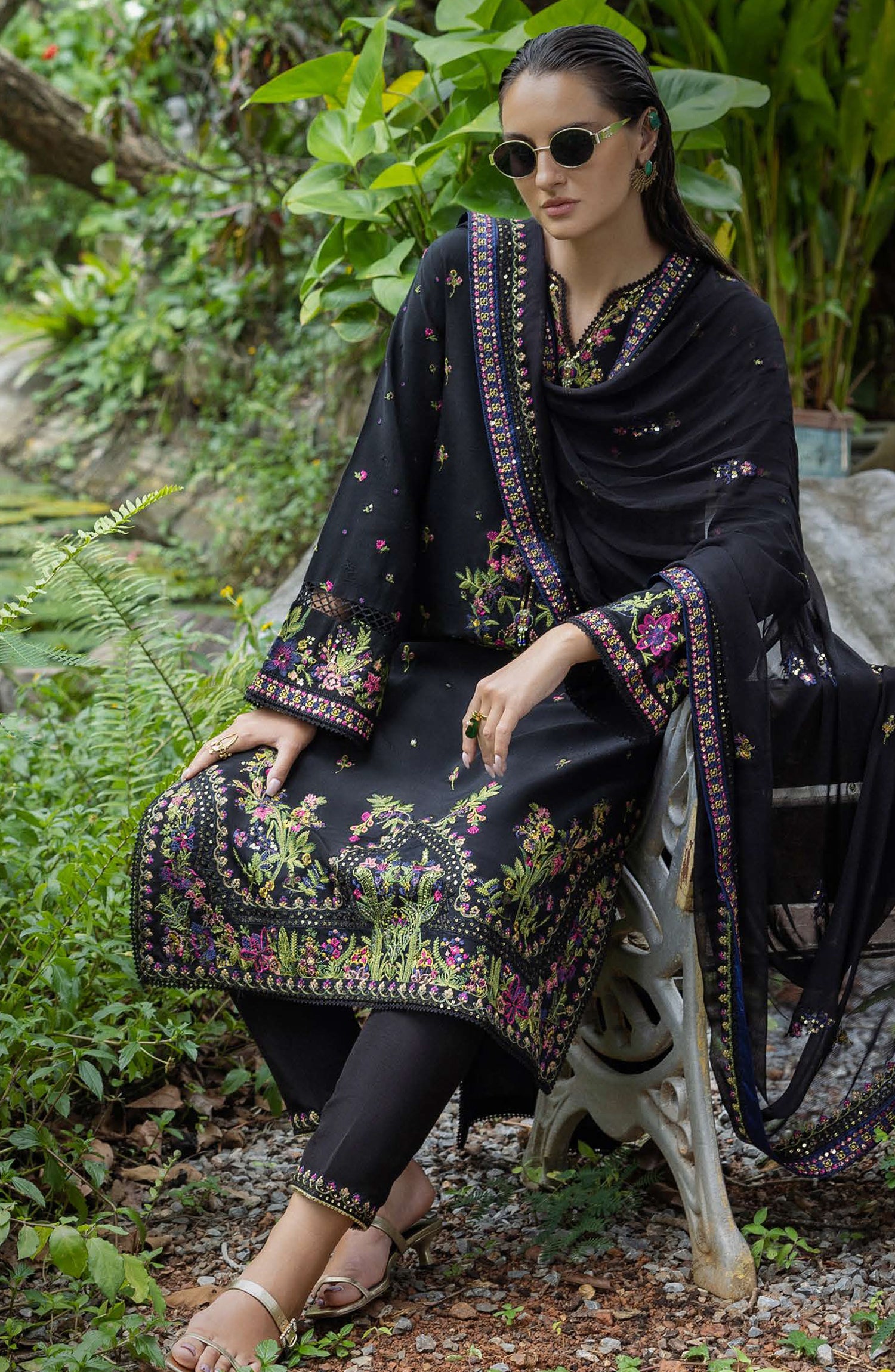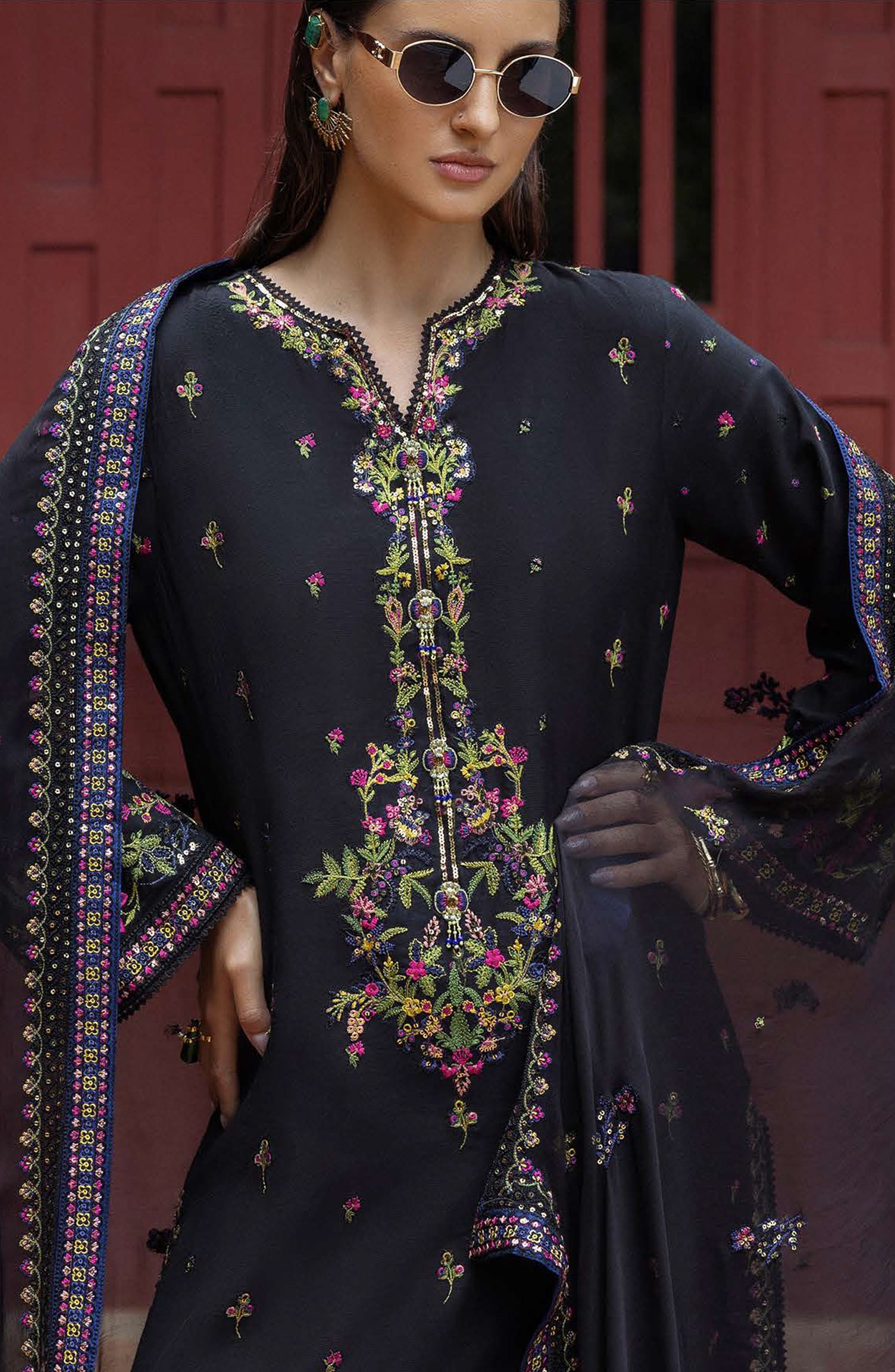 • Embroidered, sequined chiffon dupatta