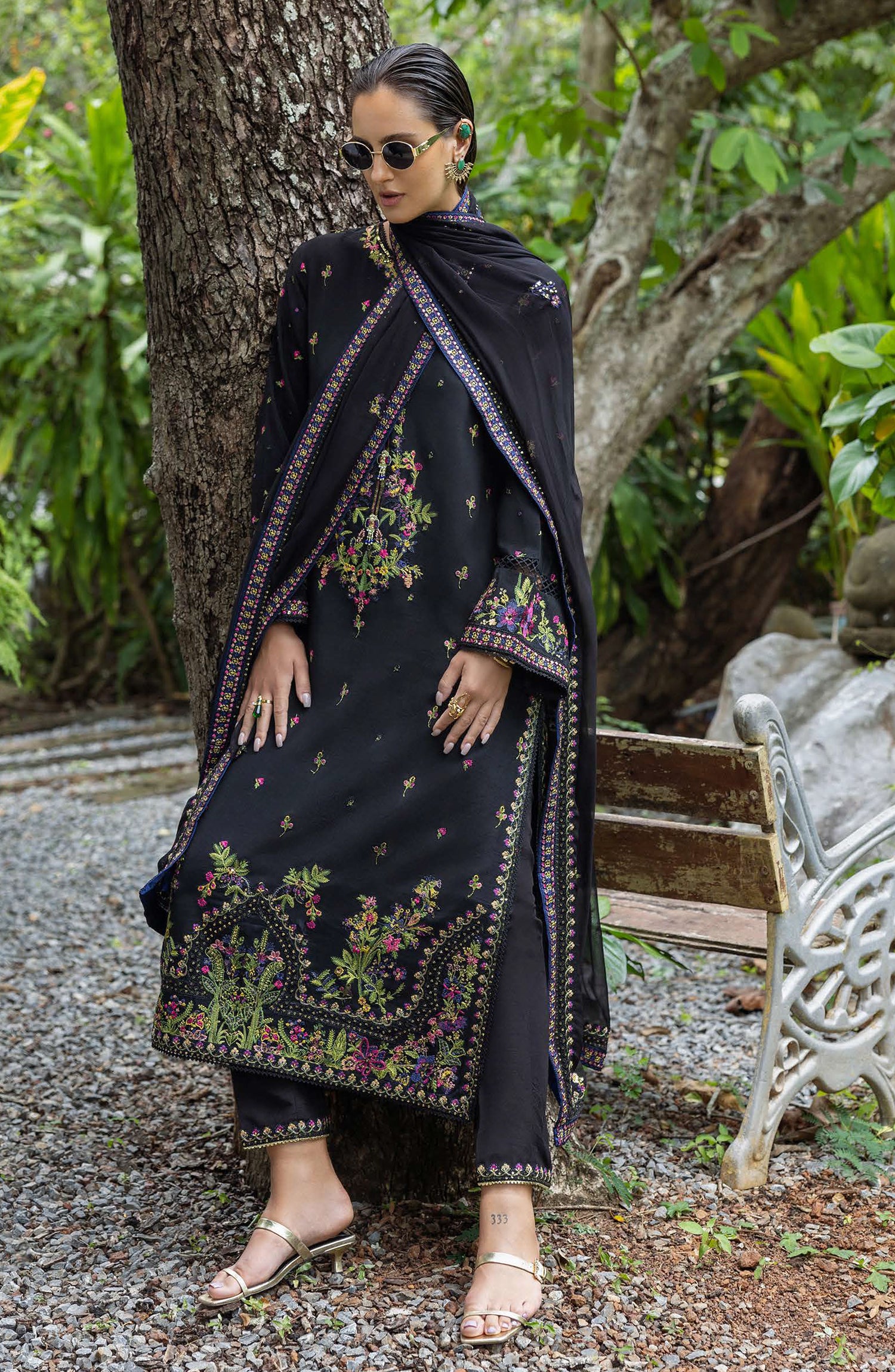 • Embroidered, sequined 4 side dupatta border (silk)