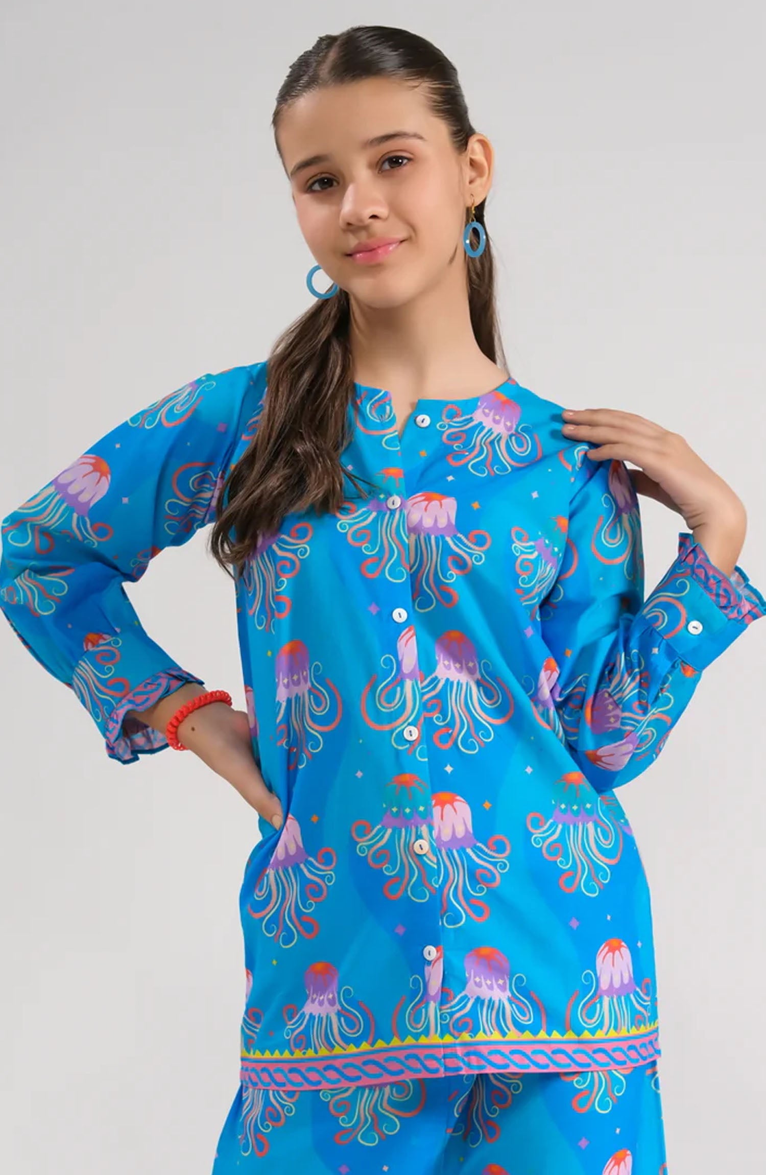 Rua by Casual Lite Embroidered Premium Linen Stitched 3 Piece Suit - D-07 Teal Mirage - CL25RU - Teal - Winter Collection